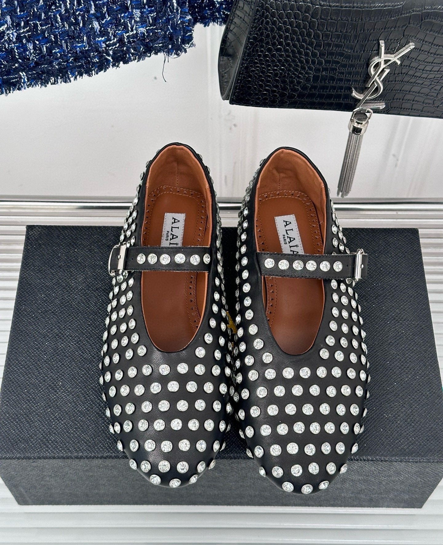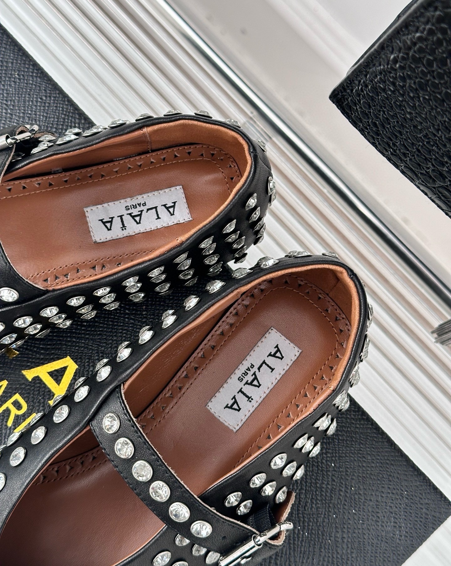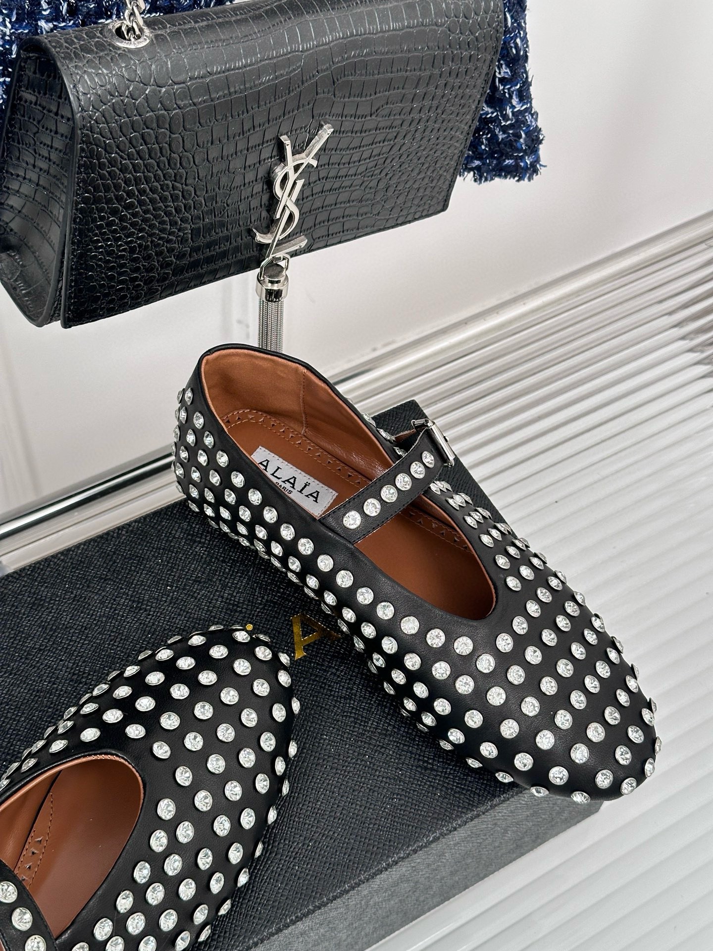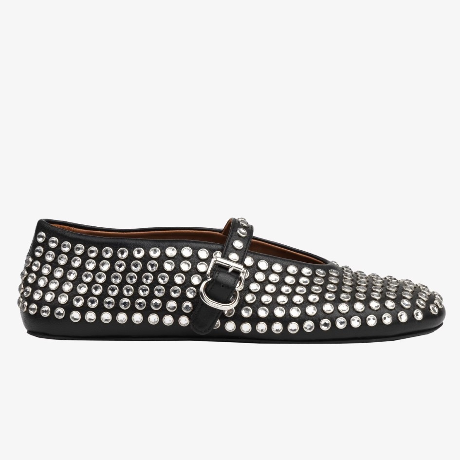 Alaia Ballet Flats in Black Lambskin with Strass