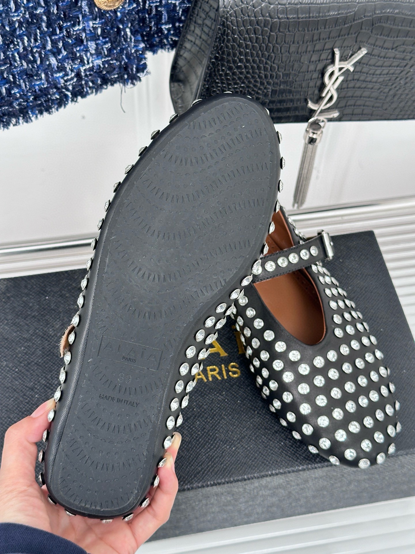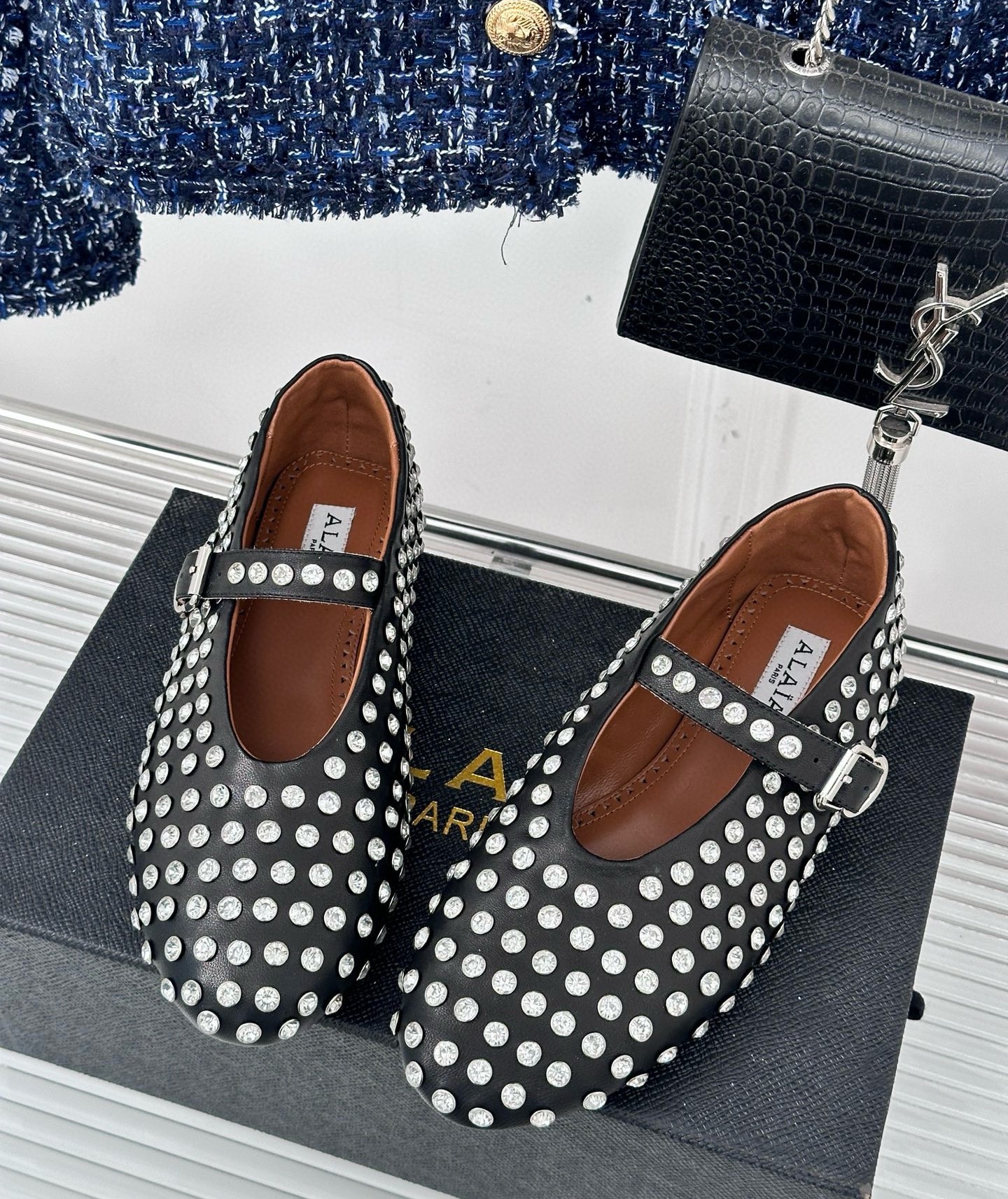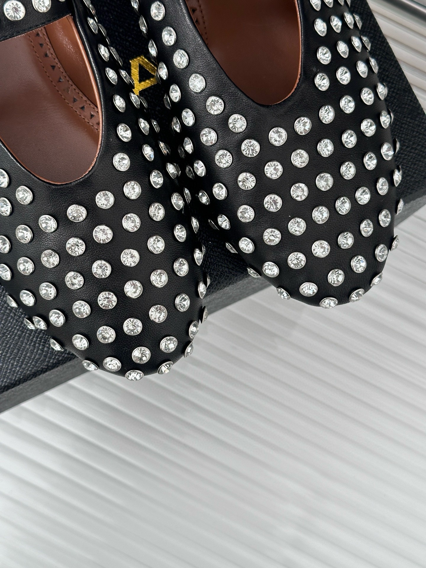 Alaia Ballet Flats in Black Lambskin with Strass