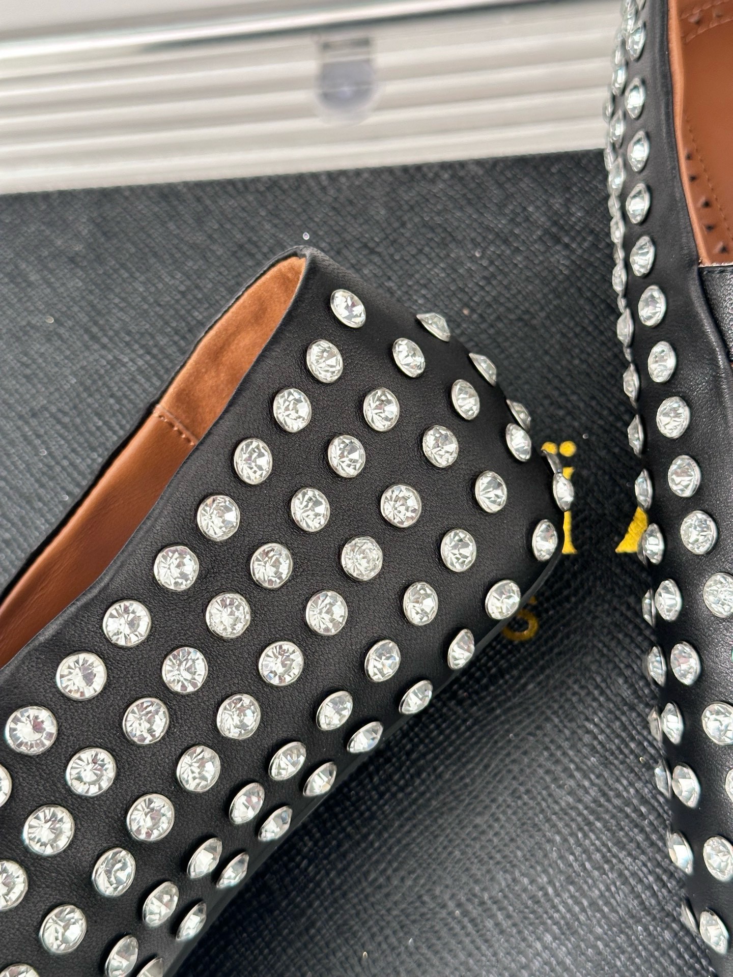 Alaïa’s ballet flats are covered in bezel-set crystals that are faceted to sparkle from every angle. They’ve been made from lambskin and have exaggerated round toes and a buckle-fastening strap to secure the arch. Keep them in focus with high hemlines.