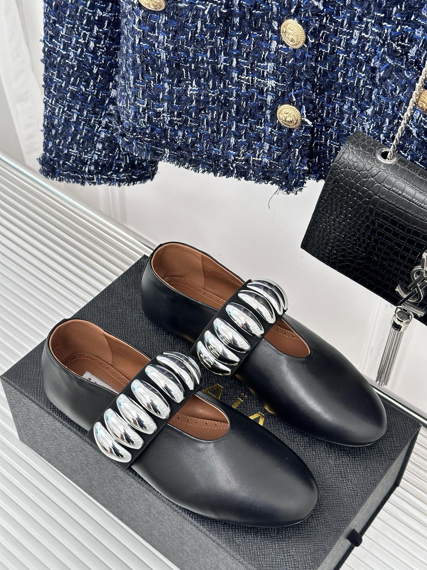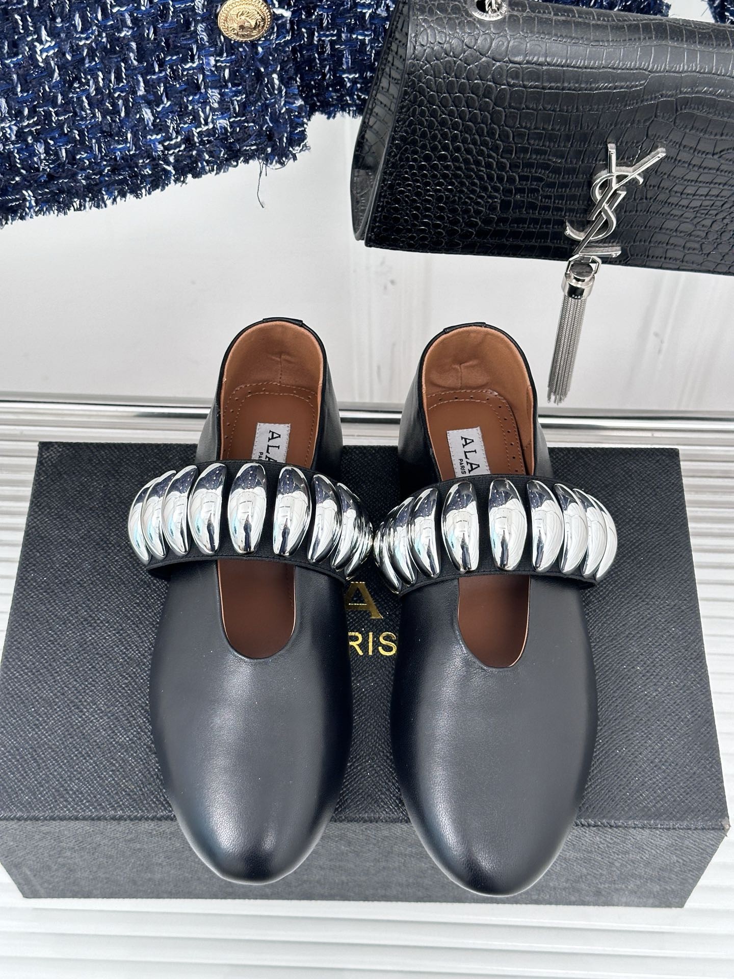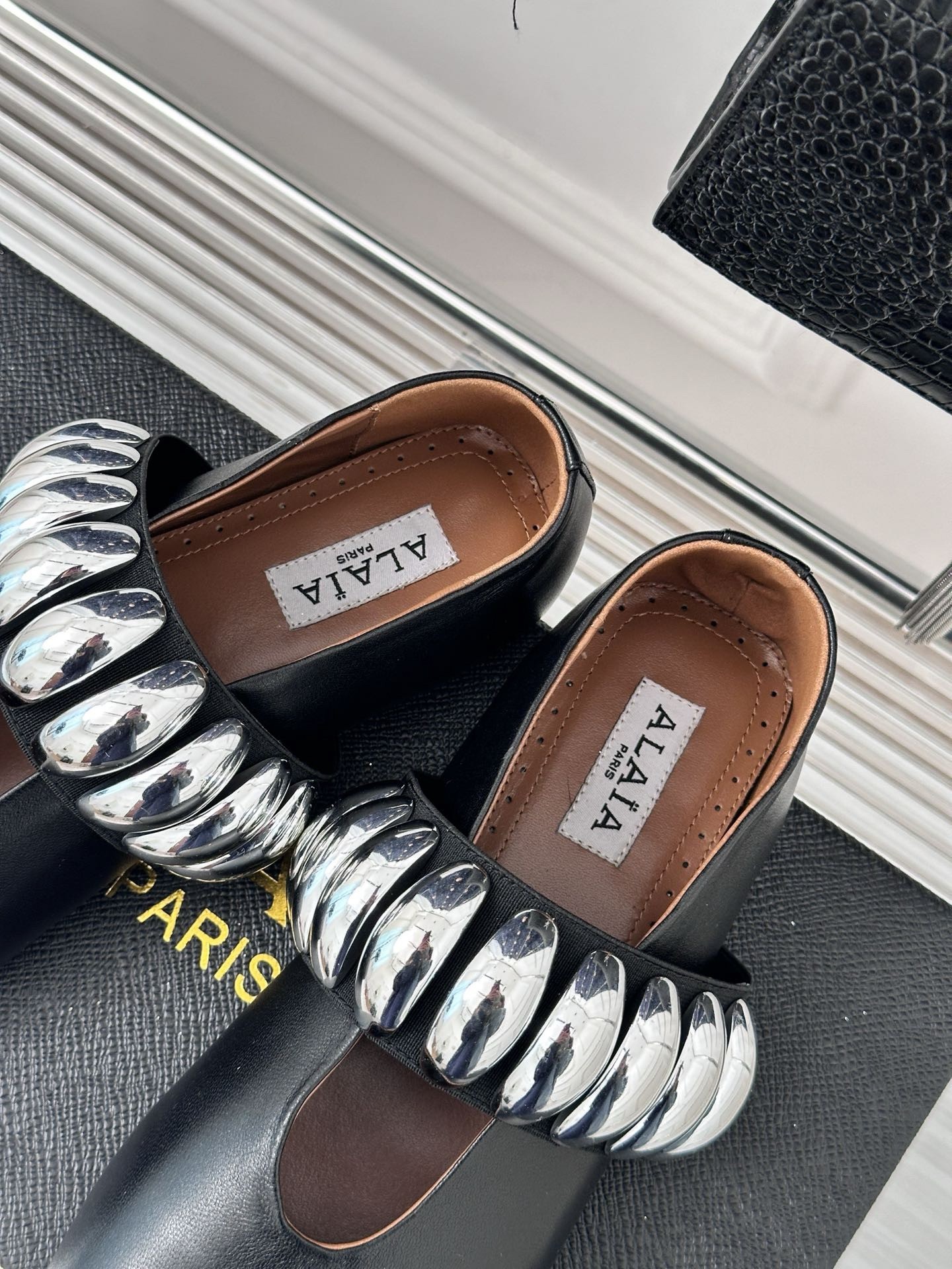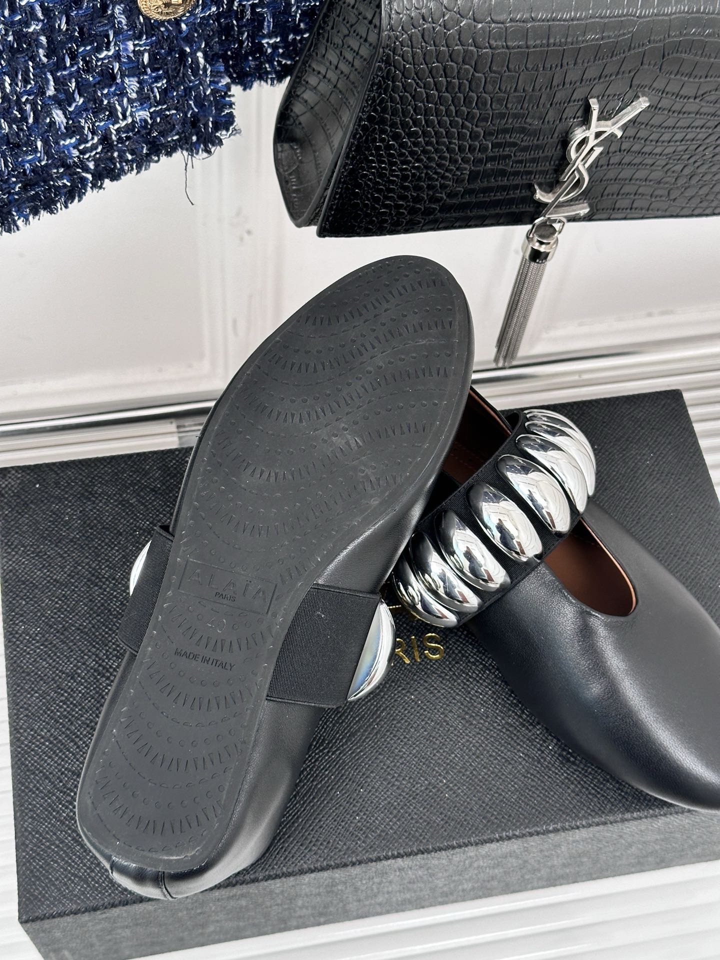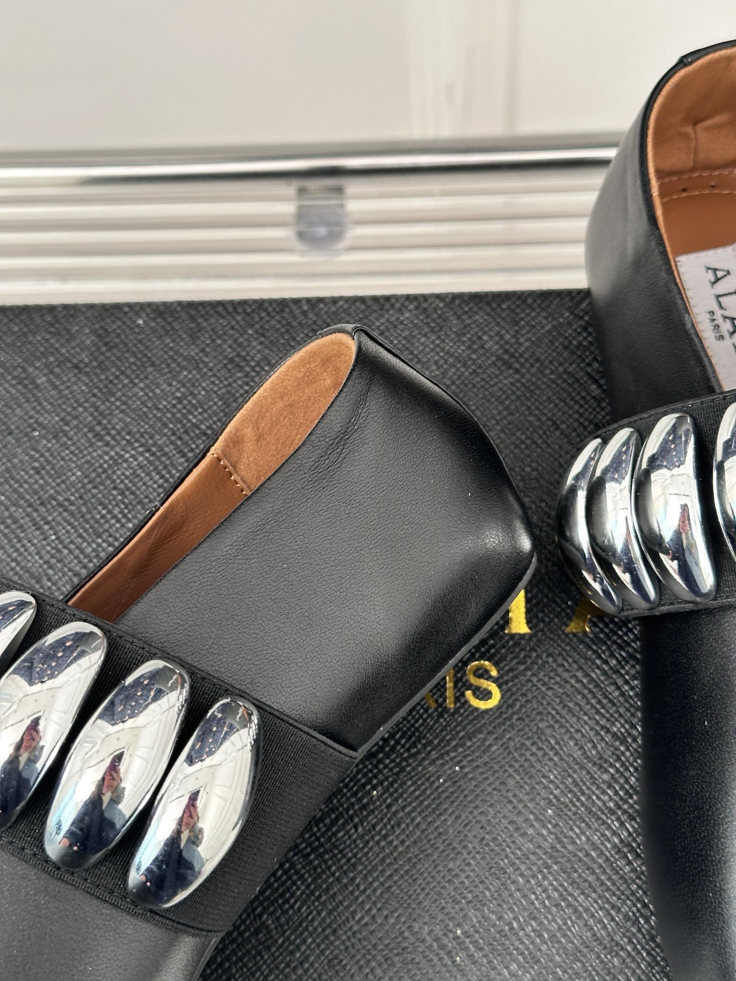 Alaia Ballet Flats in Black Leather with Metalic Pebbles