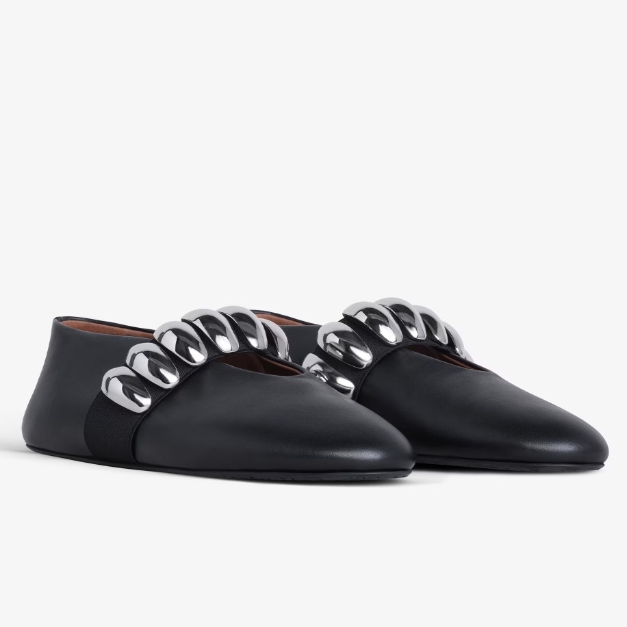You’ve never met a pair of ballet flats quite like Alaïa’s pair – that is to say, they’re anything but ordinary. They’ve been crafted from supple leather and are crossed with an elasticated band adorned with sculptural silver-tone embellishments. Supremely comfortable and understated, they’re ideal for daytime events.