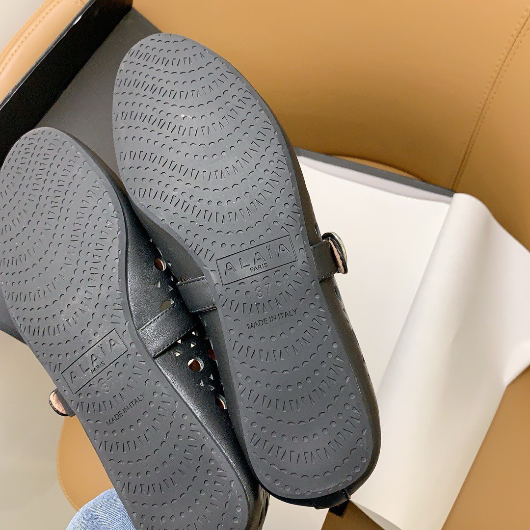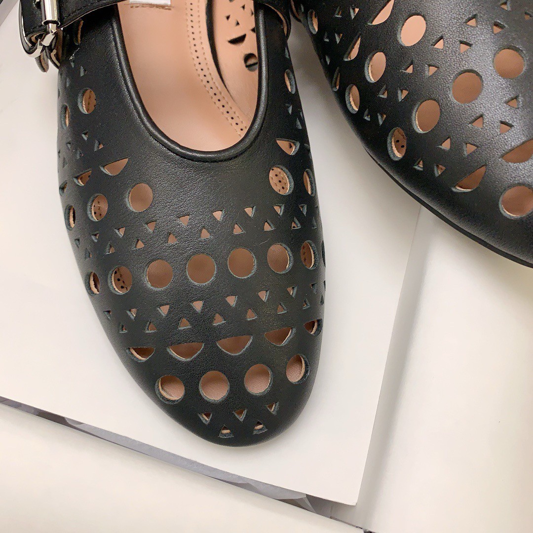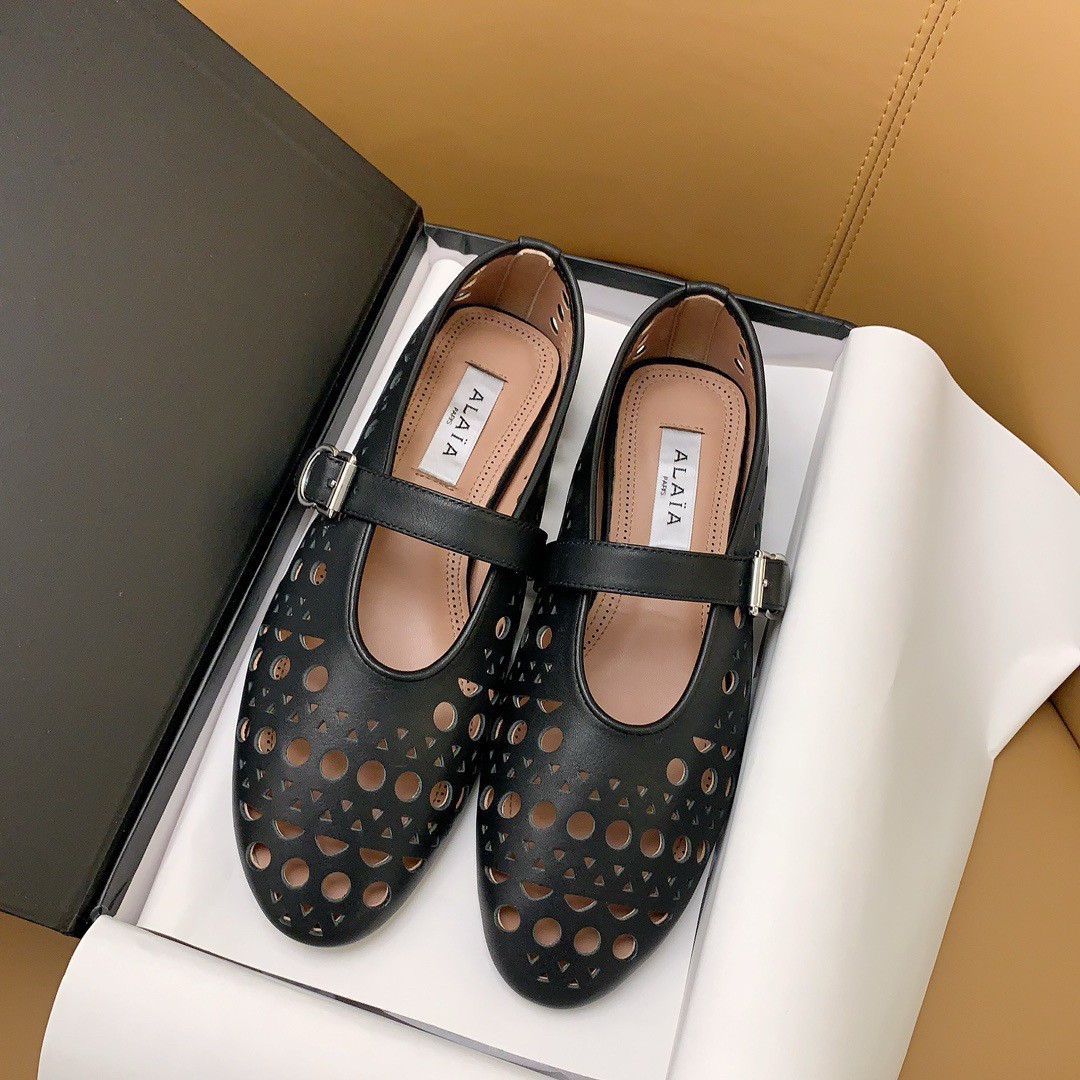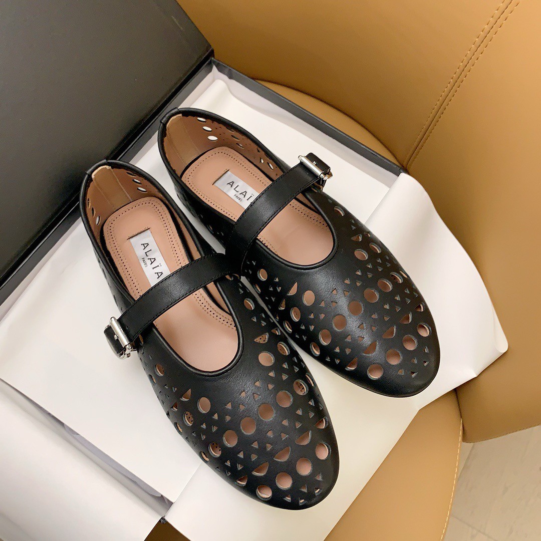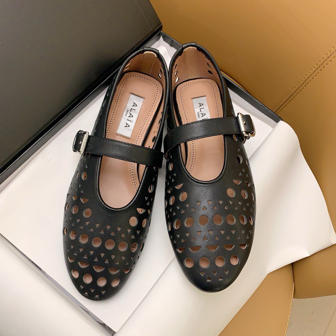 Alaïa’s ballet flats are perforated with the signature Vienne motif and have a round toe and buckle-fastening front. Team yours with one of the house’s cropped tops and tiered mini skirts.