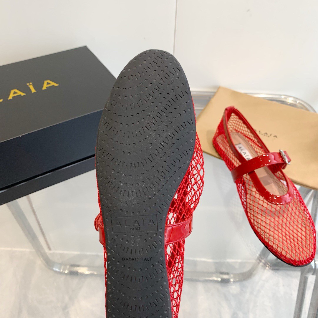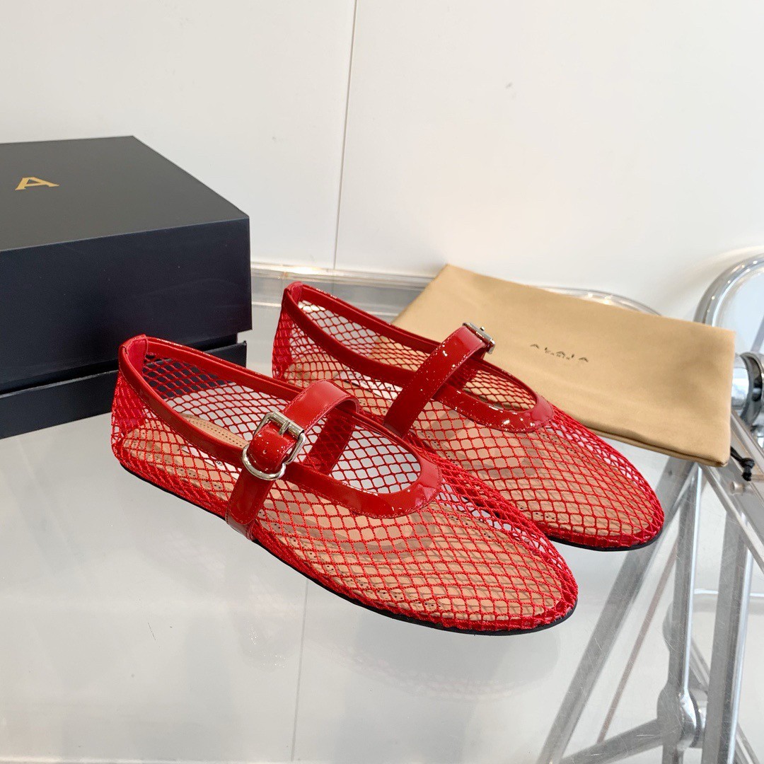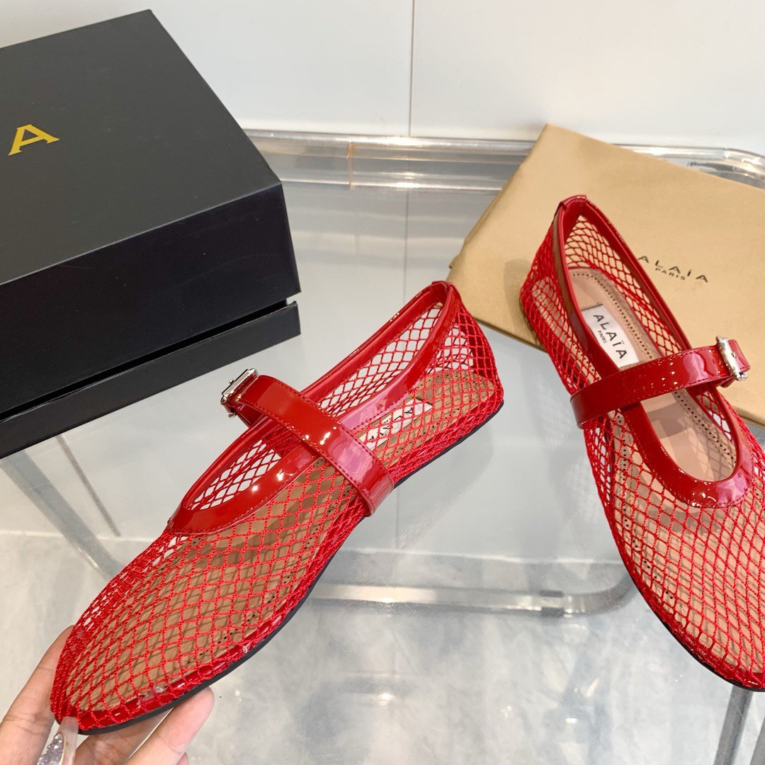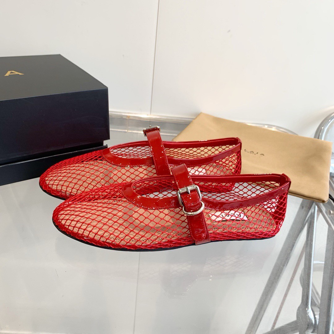 Alaïa gives the humble ballet flats a modern update. This pair has been crafted from mesh reinforced with glossy patent-leather straps. They have classic round toes.