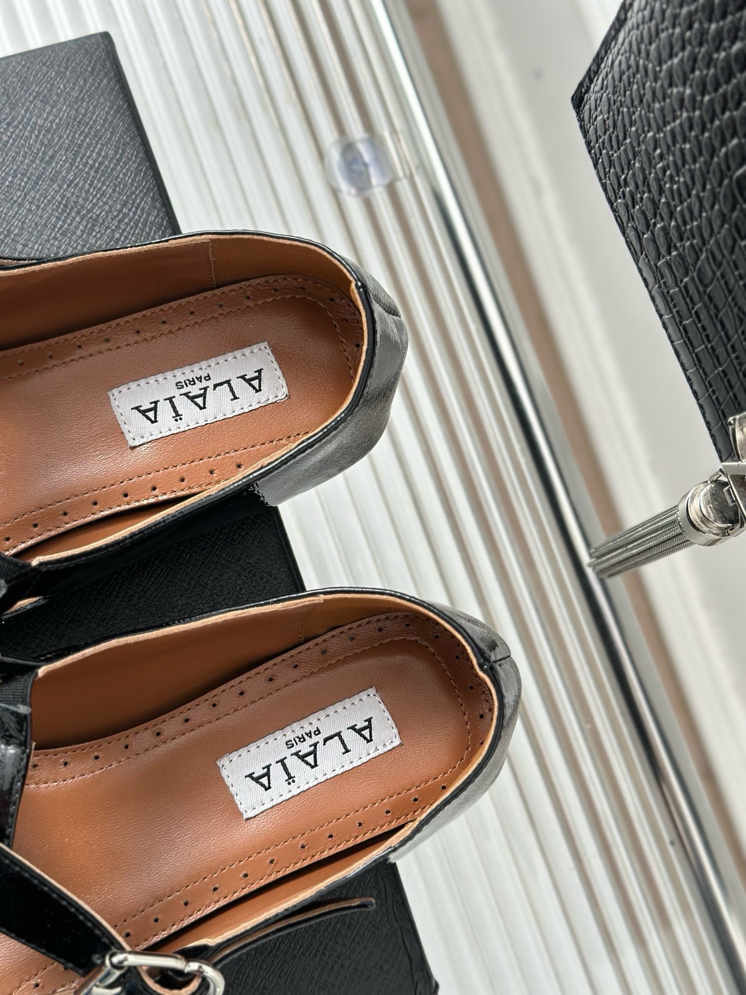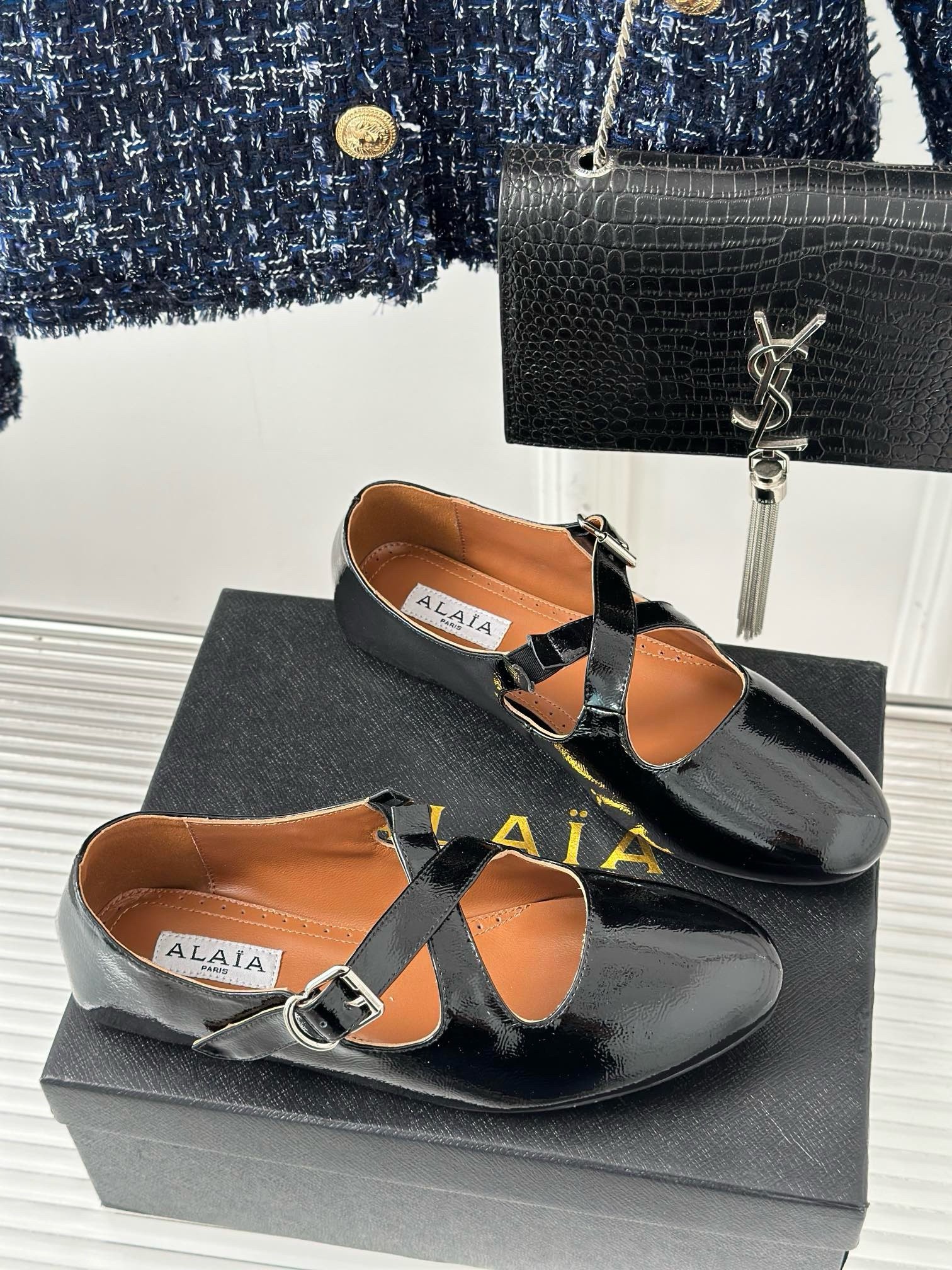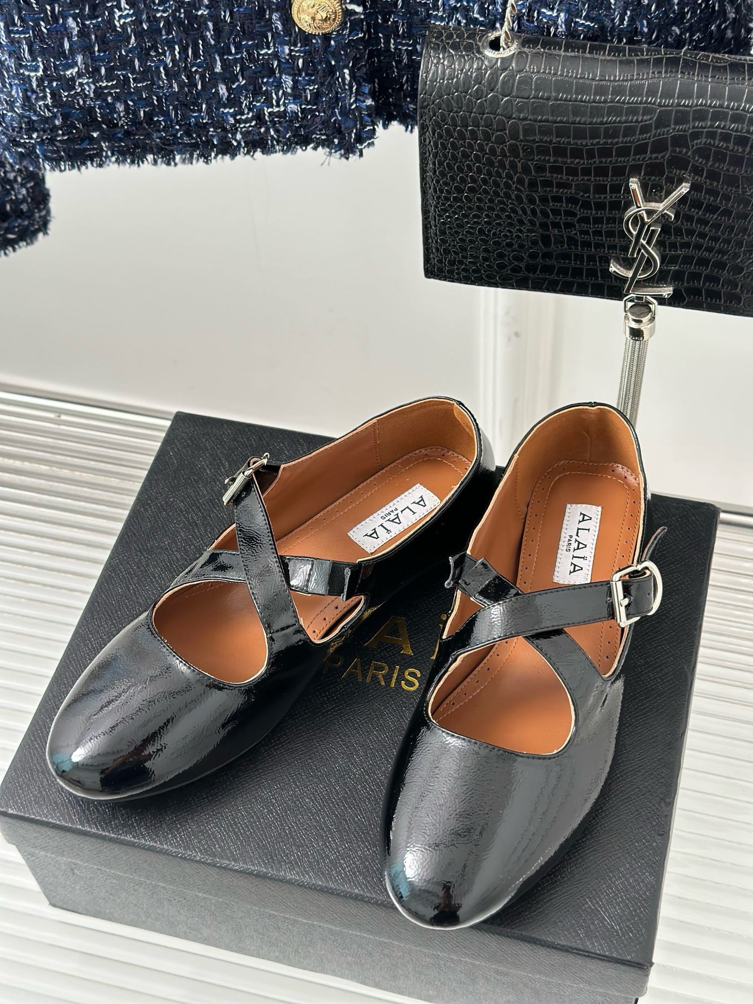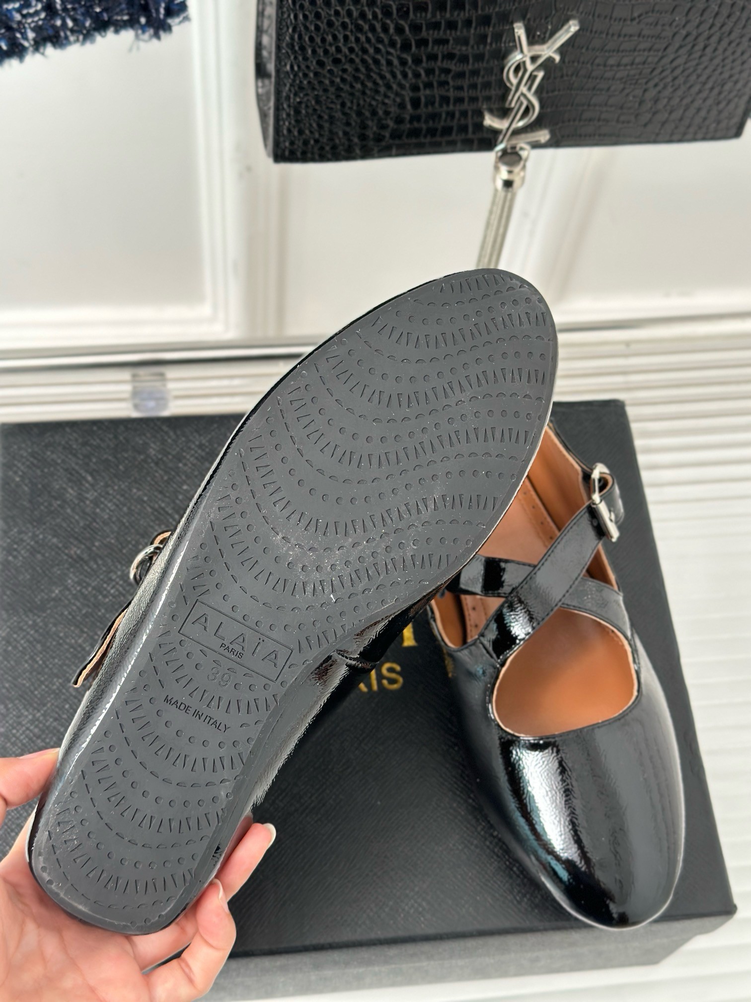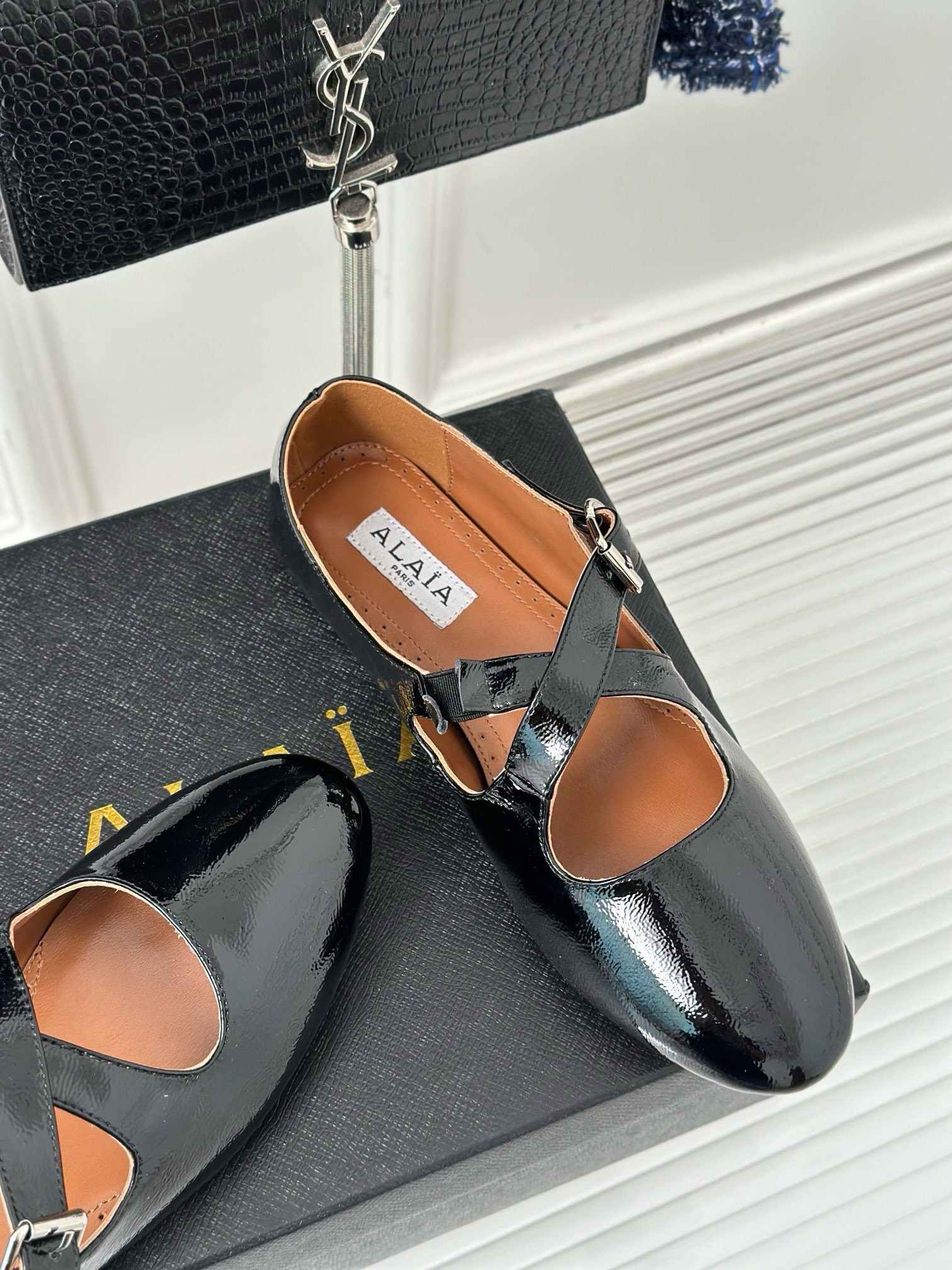 Alaia Criss Cross Ballet Flats in Black Leather