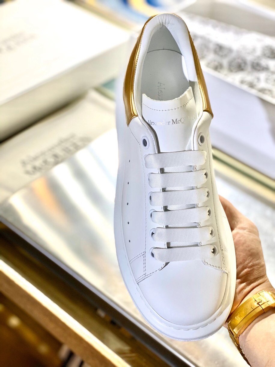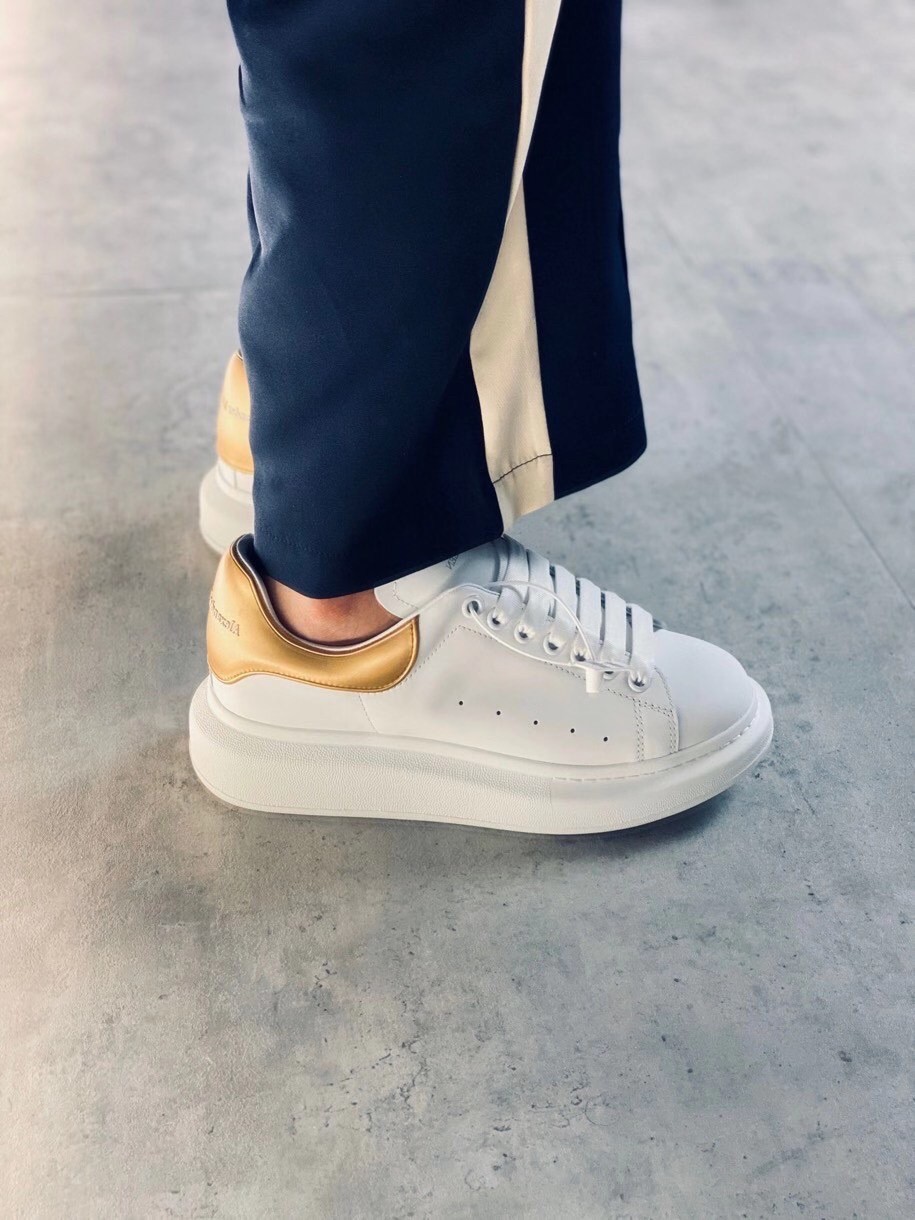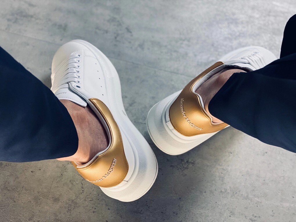 Offering elevation in a cool, contemporary way, Alexander McQueen’s Show trainers are set on by exaggerated soles – showcasing a unique take on athleisure. Expertly crafted in the smoothest leather, this low-top style is punctuated with contrasting gold panels to the heel and subtly stamped with the label’s iconography.