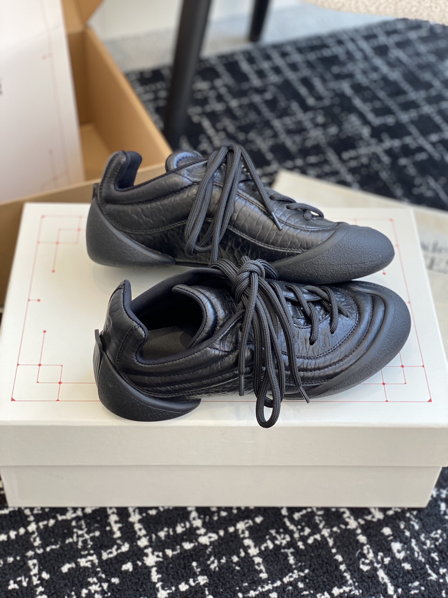 Alexander McQueen has a flair for creating sought-after sneakers. This Flexion pair is made from calf leather that’s quilted in dream-like waves. They fasten with doubled-up laces and have split soles inspired by anatomy – a constant reference point for the house.
