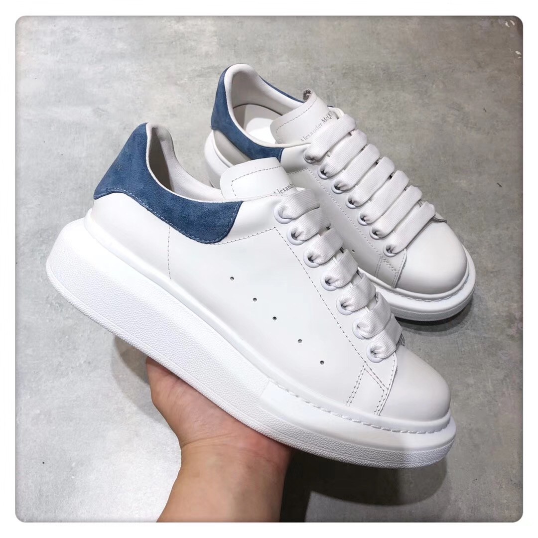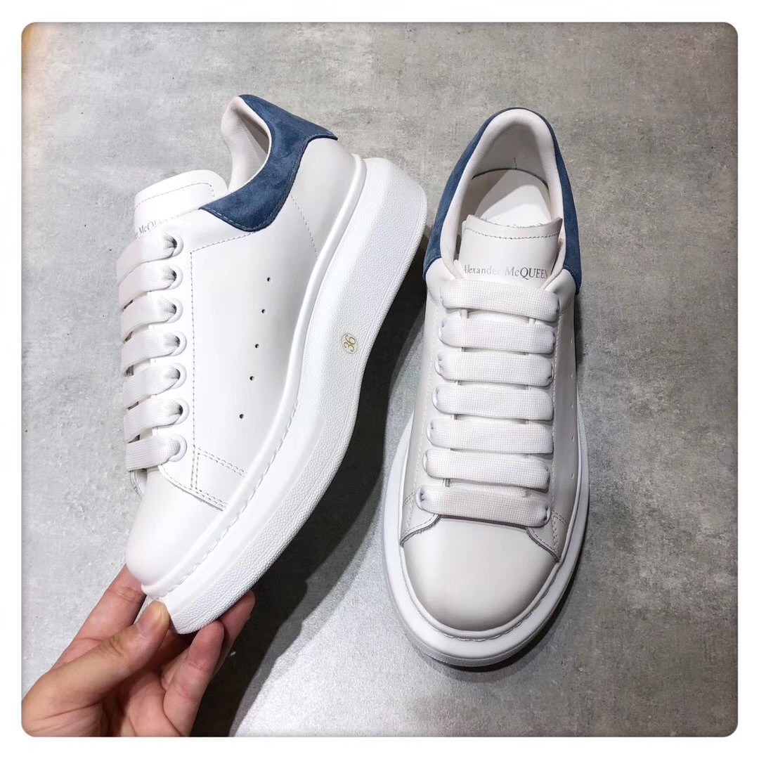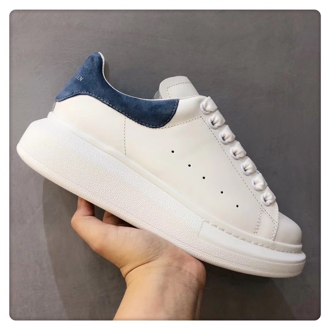 Alexander McQueen updates the sneakerhead trend with a monochrome blue and white rendition. This style is made from a flatform white sole and upper, contrasting against a blue suede heel counter and signature to the tongue. Pair yours with dresses and pants all season long.