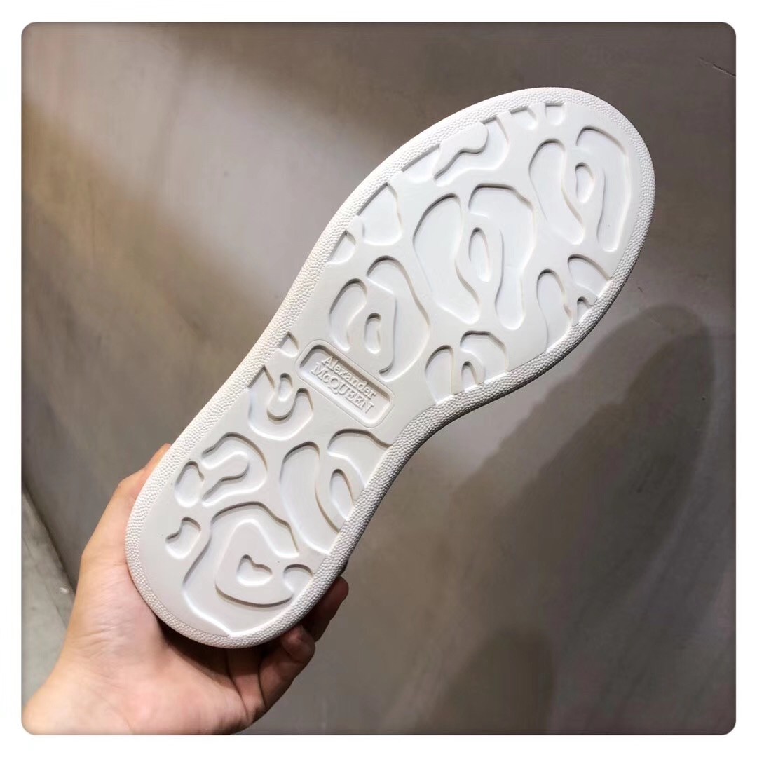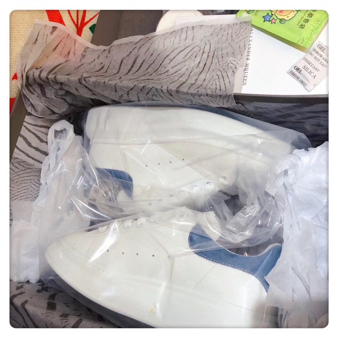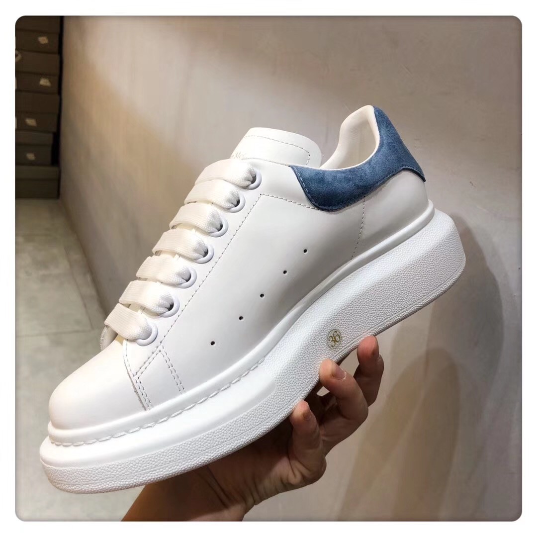 Alexander McQueen updates the sneakerhead trend with a monochrome blue and white rendition. This style is made from a flatform white sole and upper, contrasting against a blue suede heel counter and signature to the tongue. Pair yours with dresses and pants all season long.