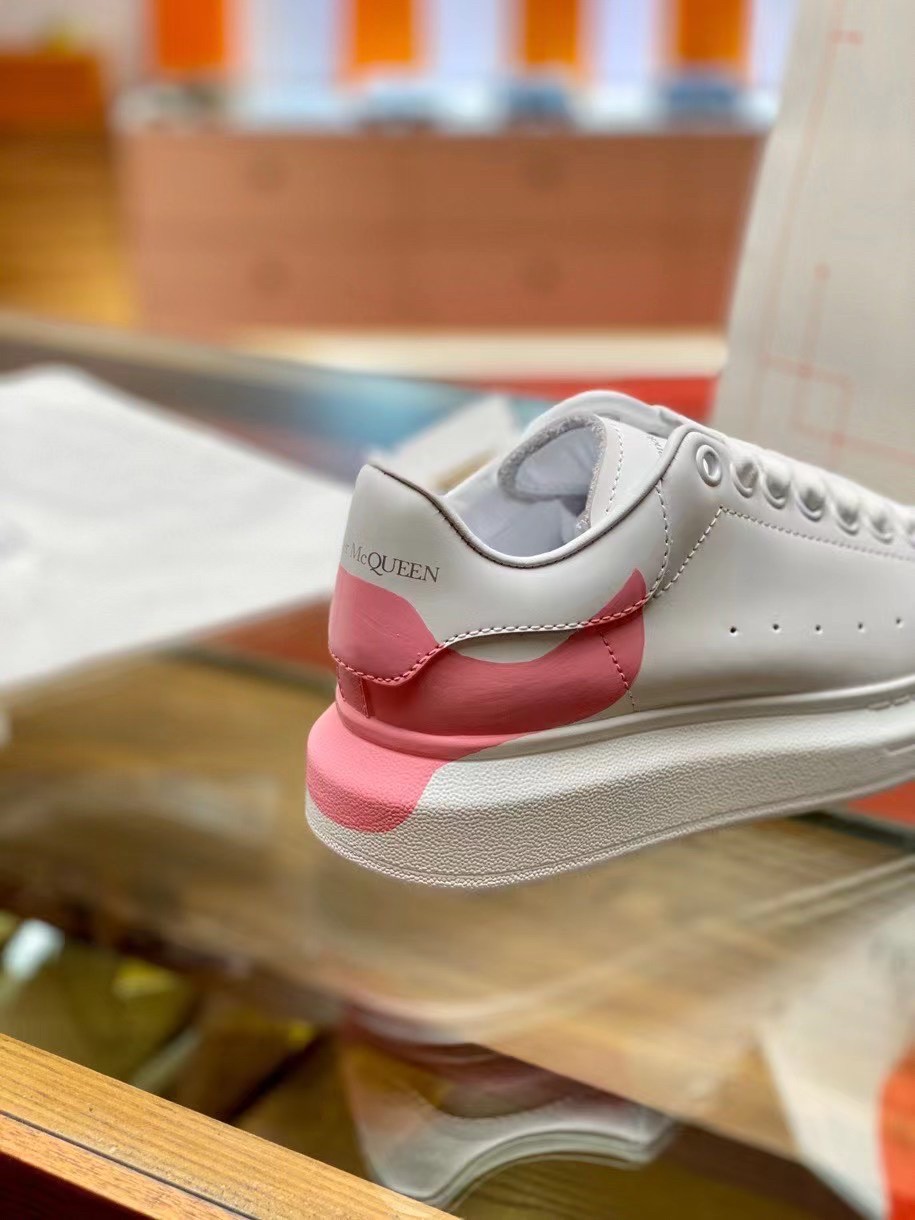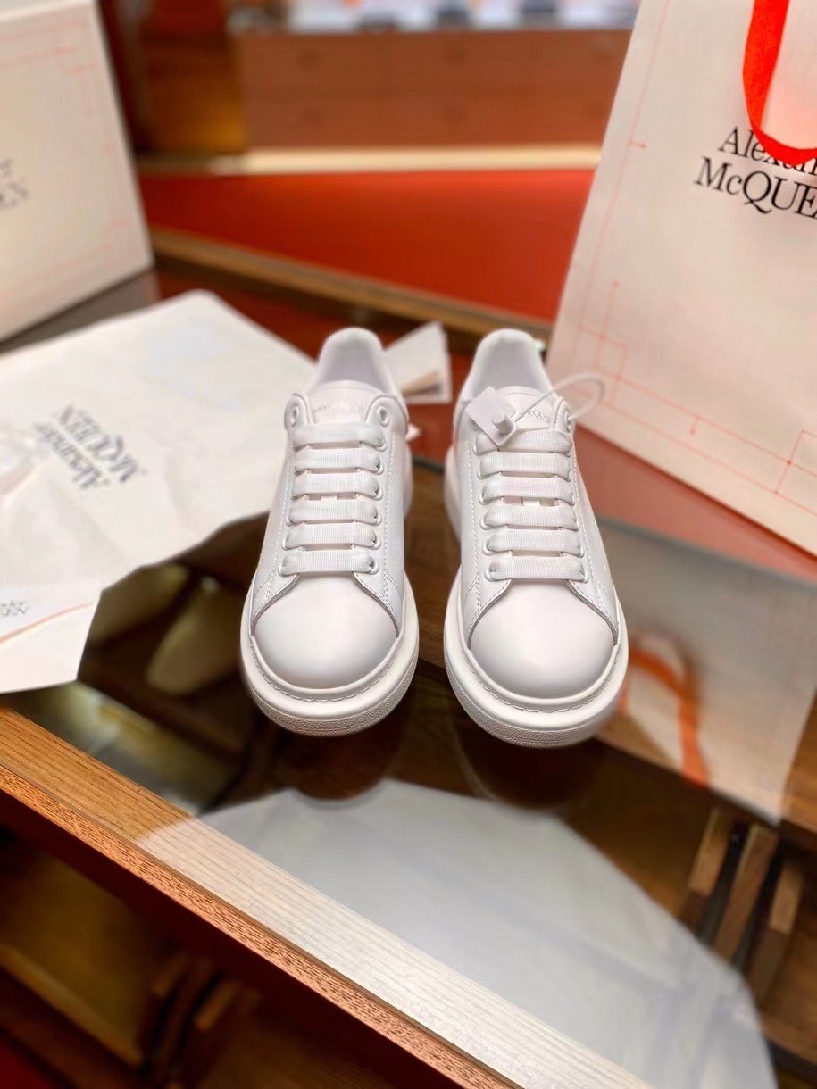 Retaining the classic silhouette of Alexander McQueen’s Oversized Sneakers, this iteration refreshes your footwear collection with its displaced heel tab design. Pristine and streamlined, the smooth leather upper is set upon a matching platform sole for a sophisticated look.