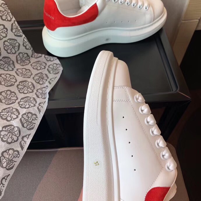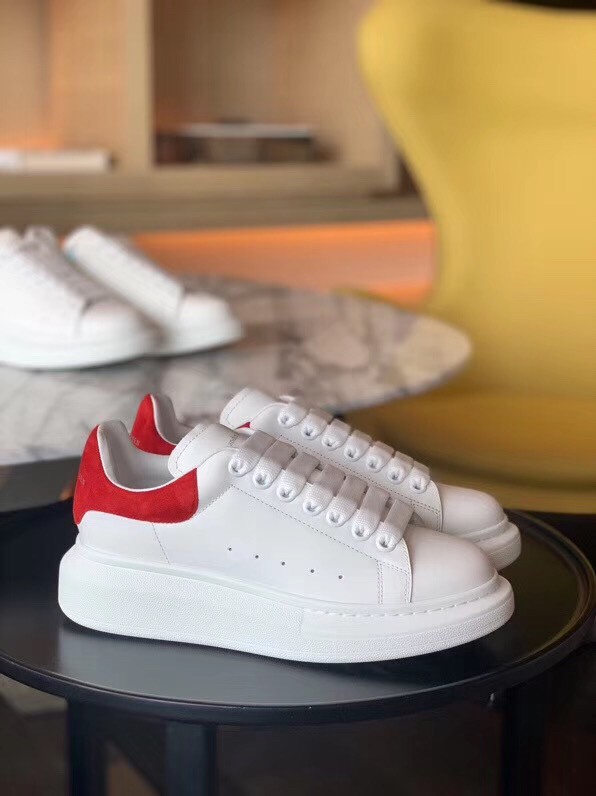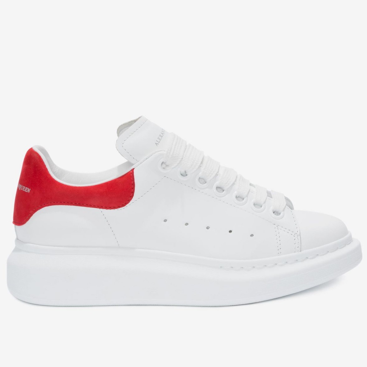 Alexander McQueen updates the sneakerhead trend with a monochrome red and white rendition. This style is made from a flatform white sole and upper, contrasting against a red suede heel counter and signature to the tongue. Pair yours with dresses and pants all season long.