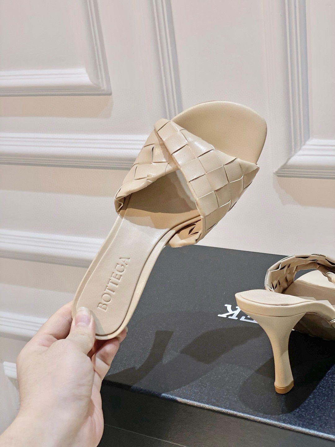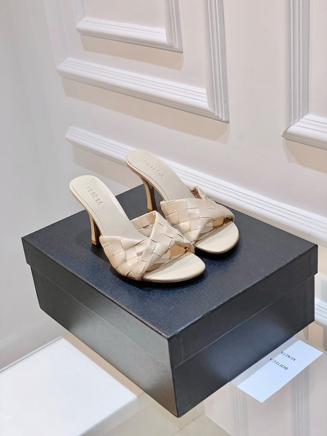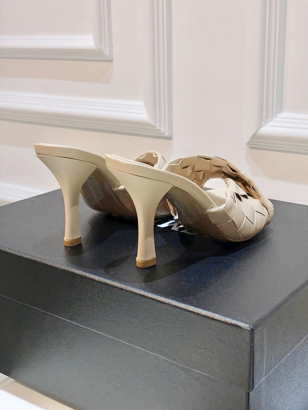 Bottega Veneta Blink Mules 80mm in Beige Intrecciato Lambskin
