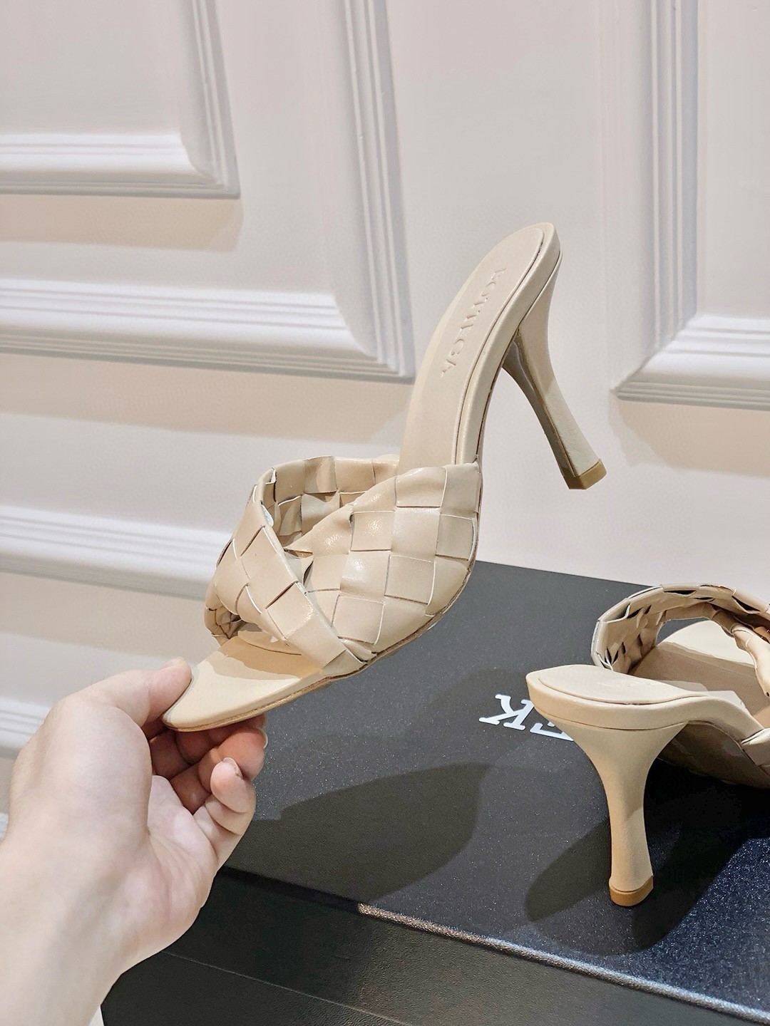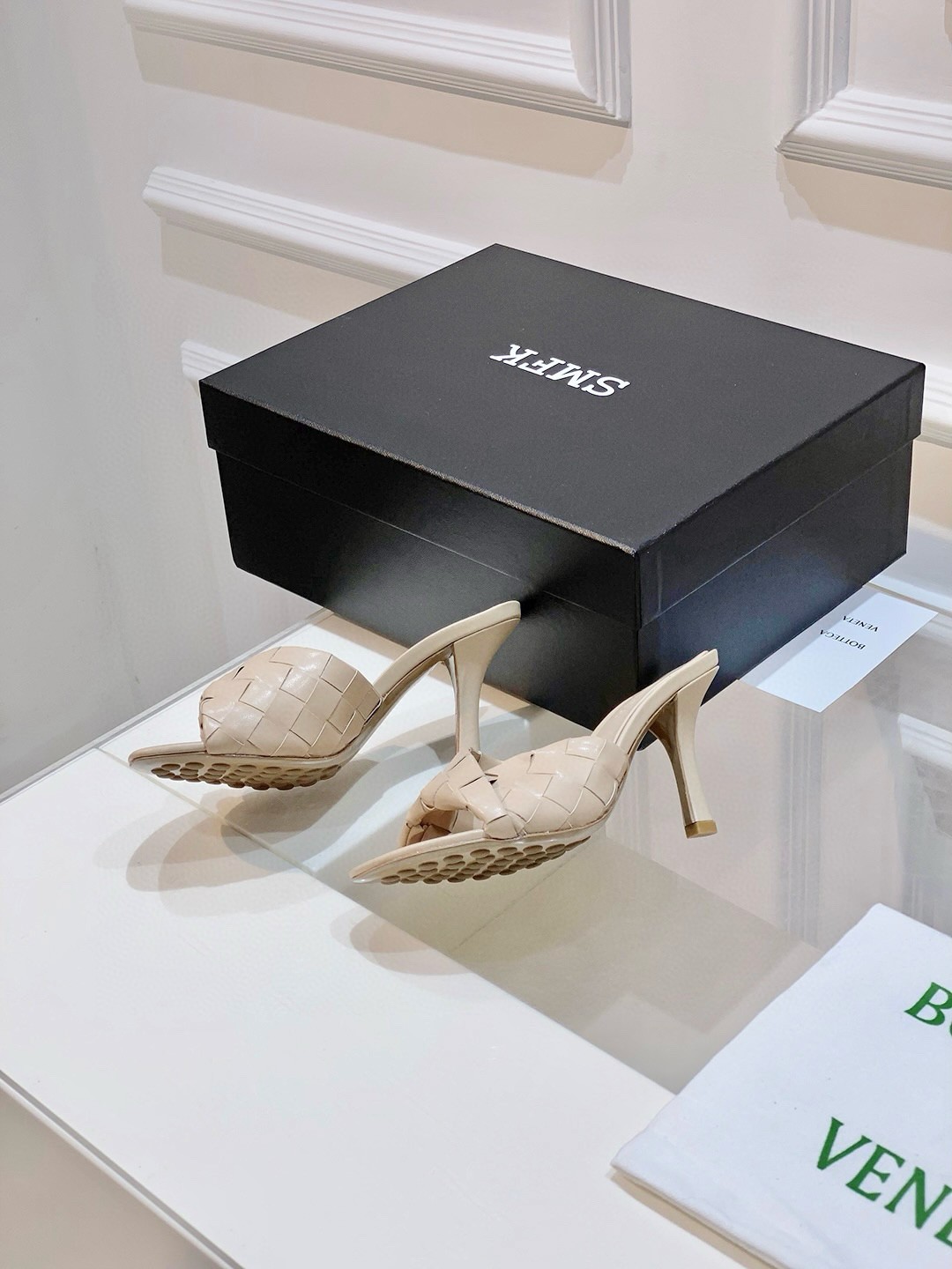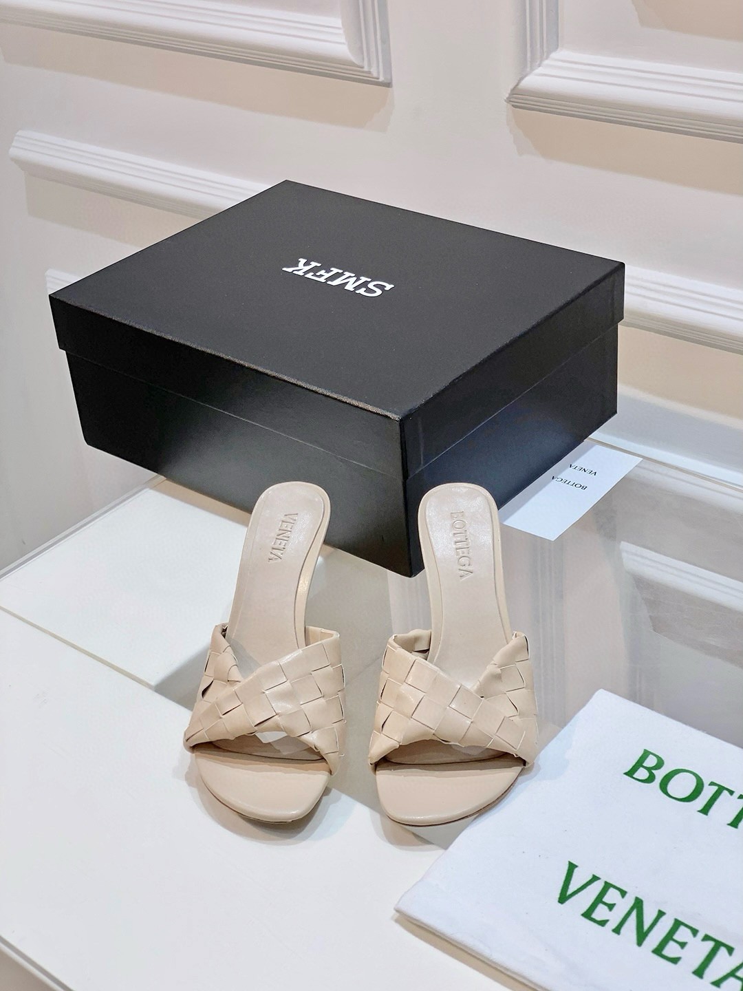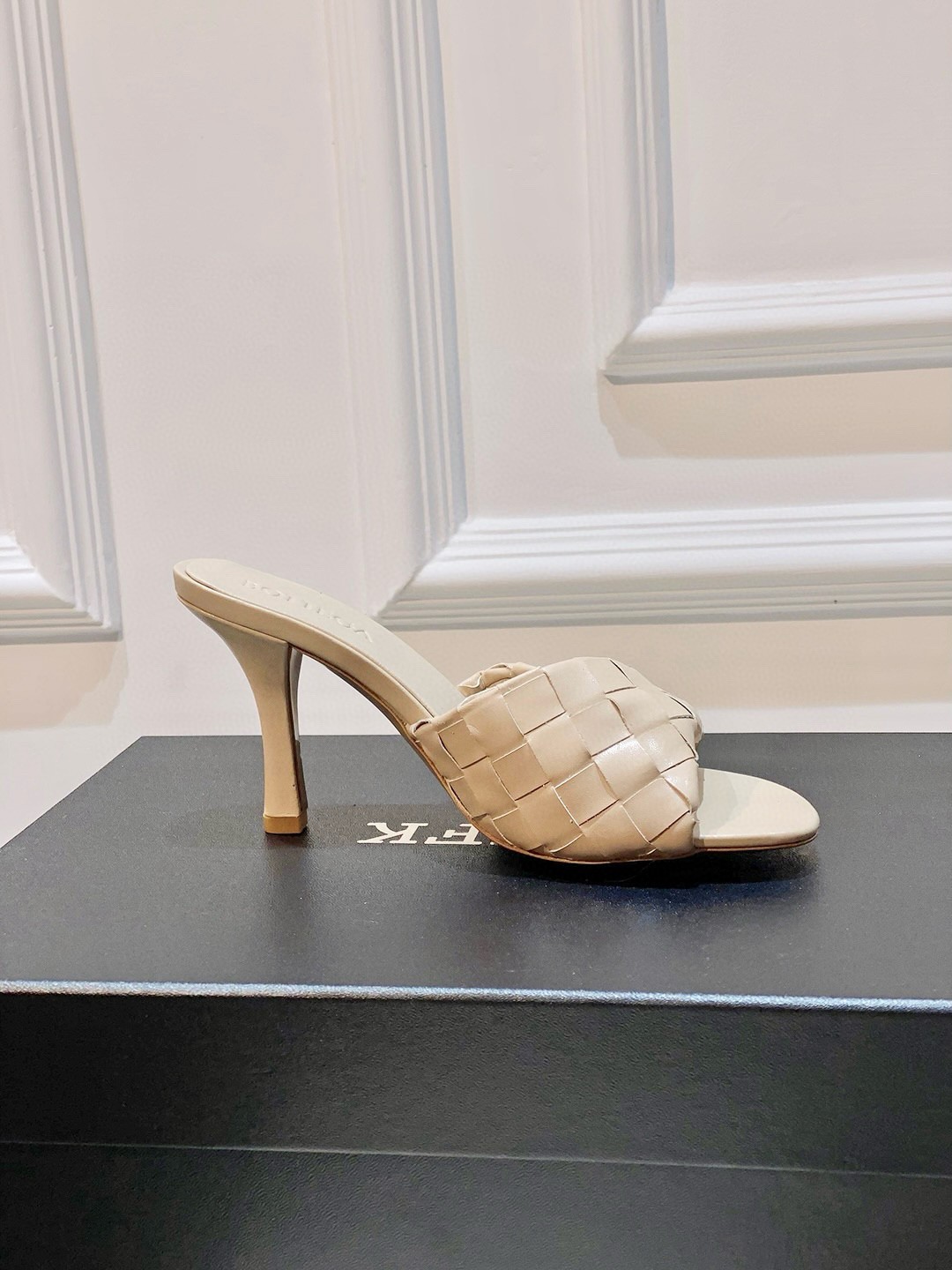 Bottega Veneta Blink Mules 80mm in Beige Intrecciato Lambskin