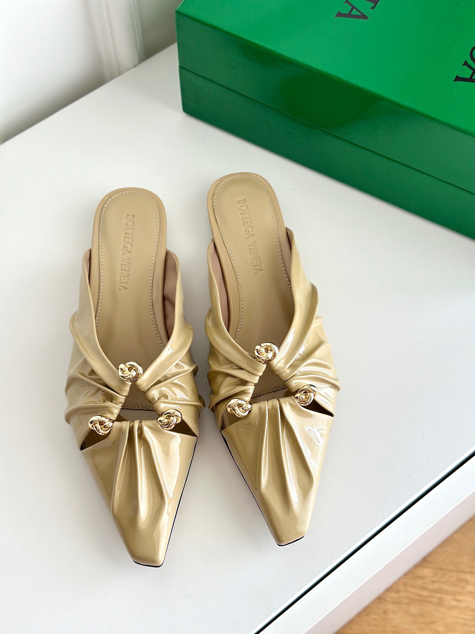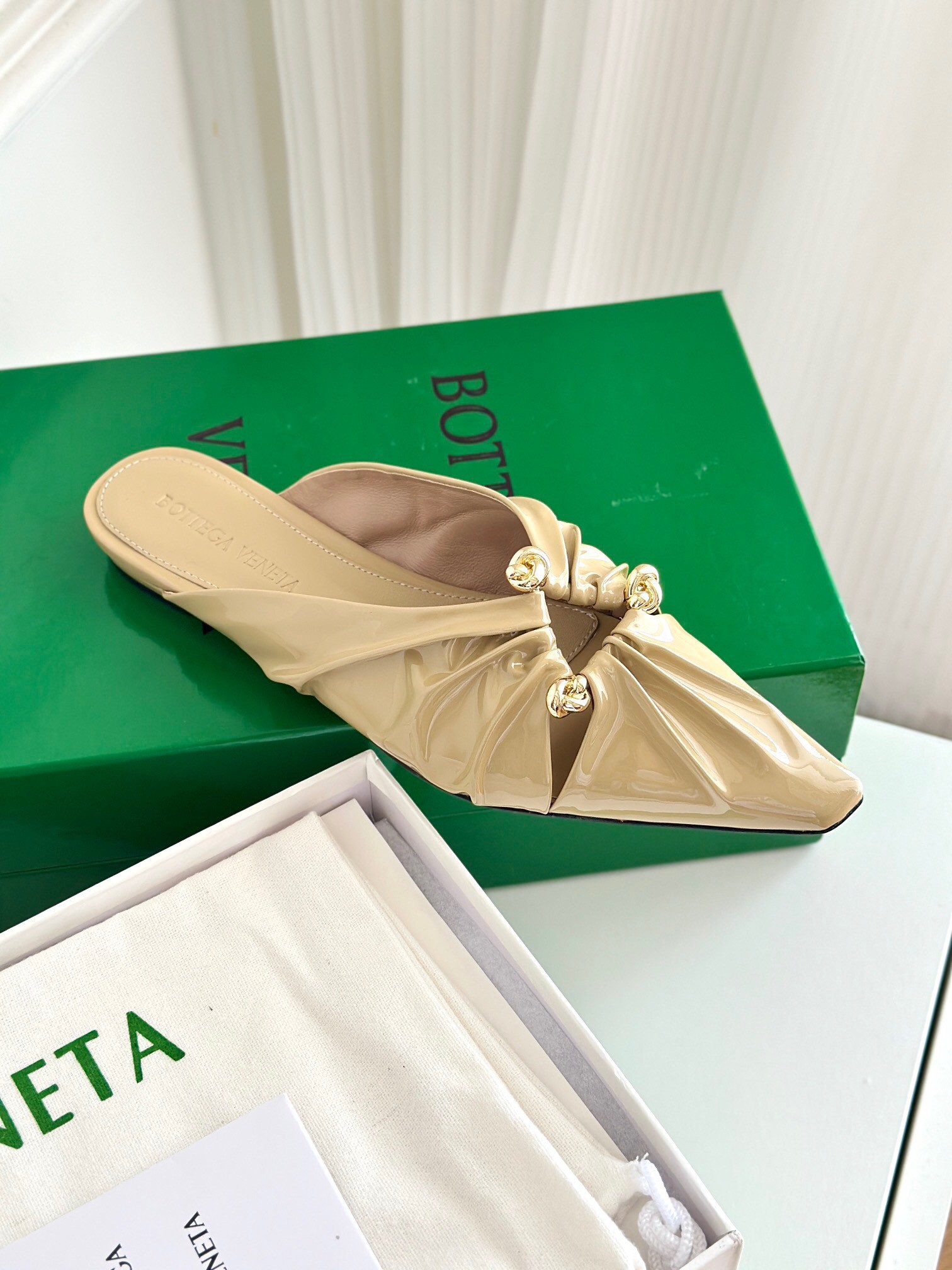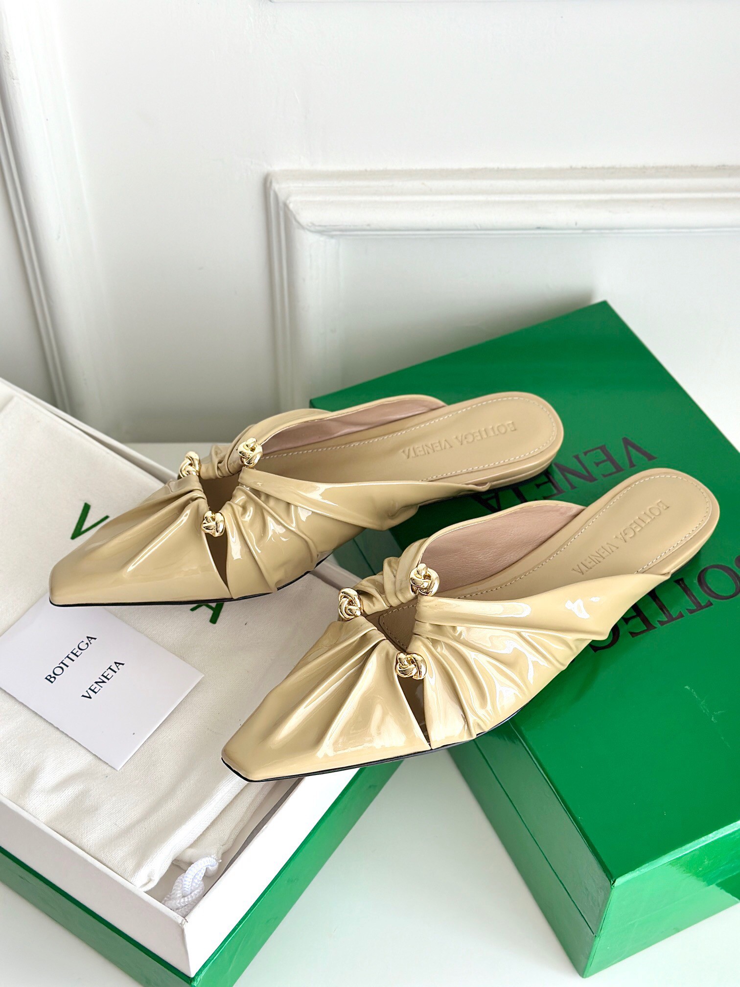 Bottega Veneta Bunnie Flat Mules In Beige Patent Leather