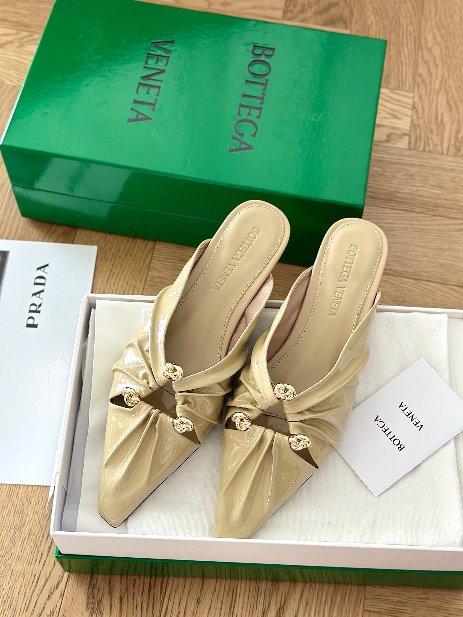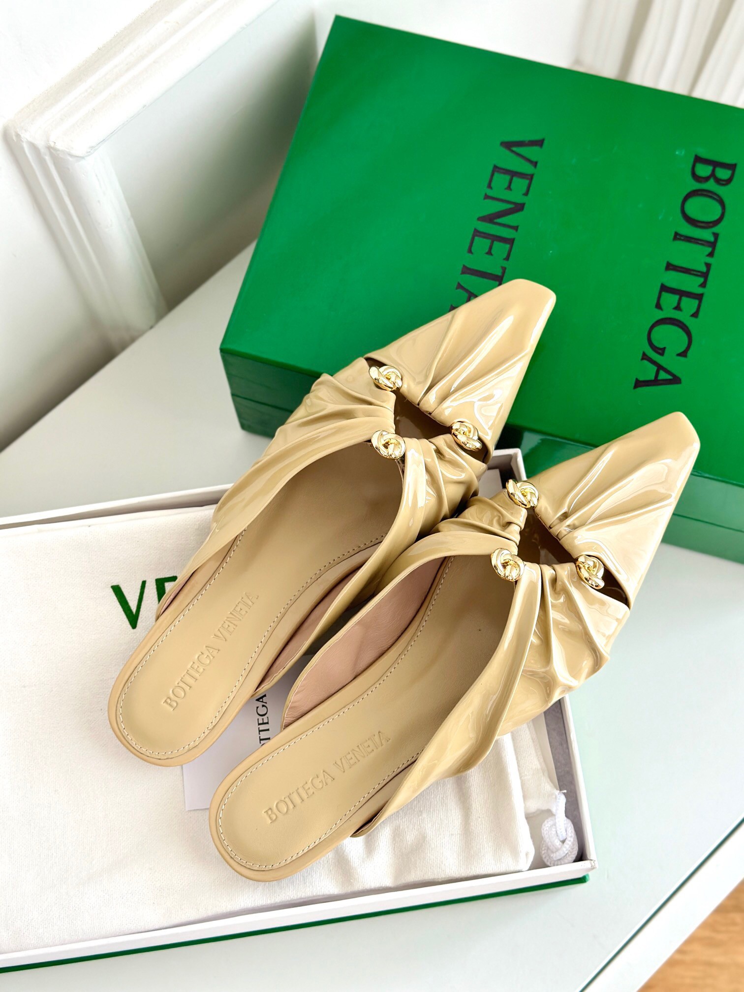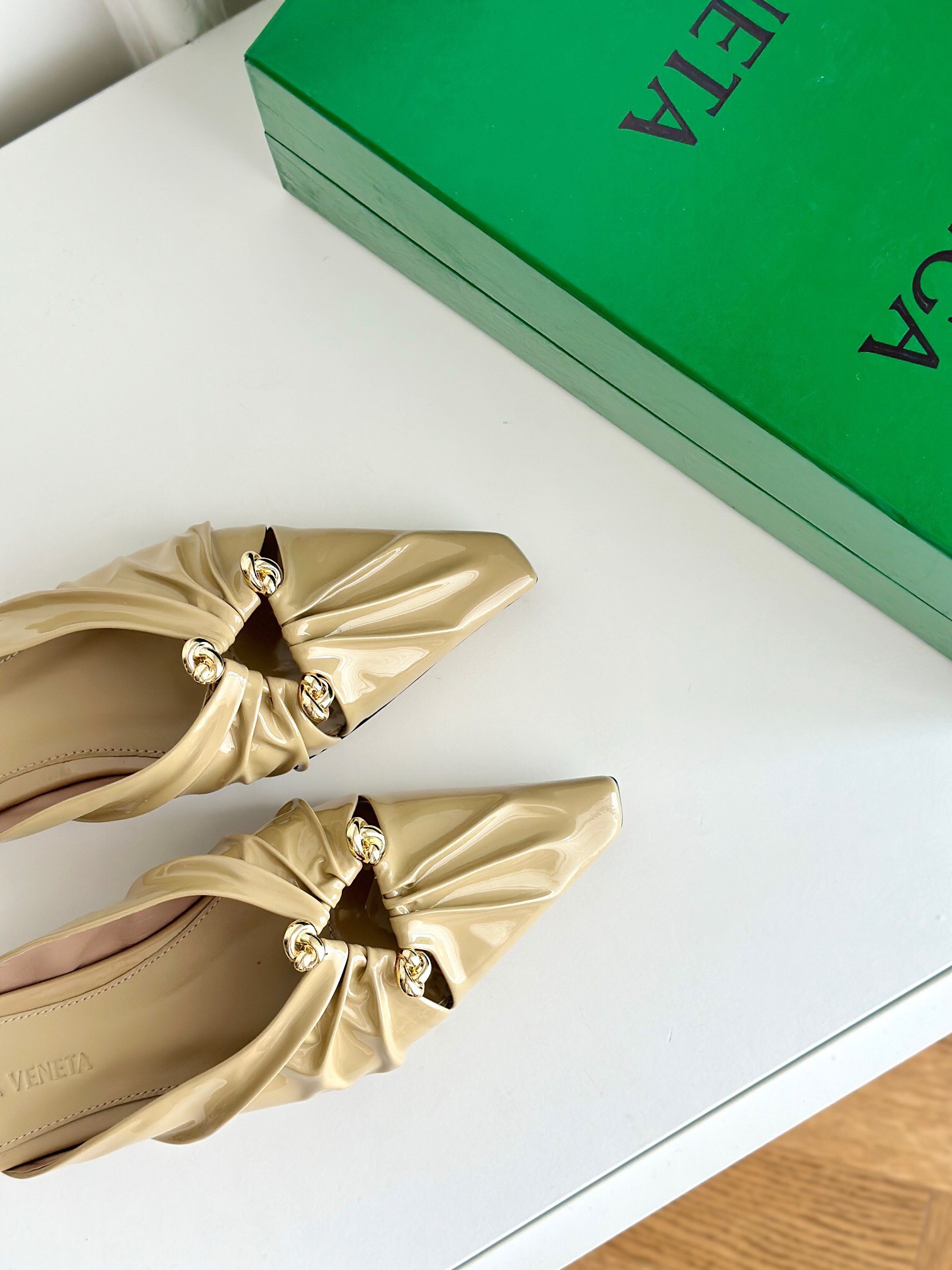 Bottega Veneta Bunnie Flat Mules In Beige Patent Leather