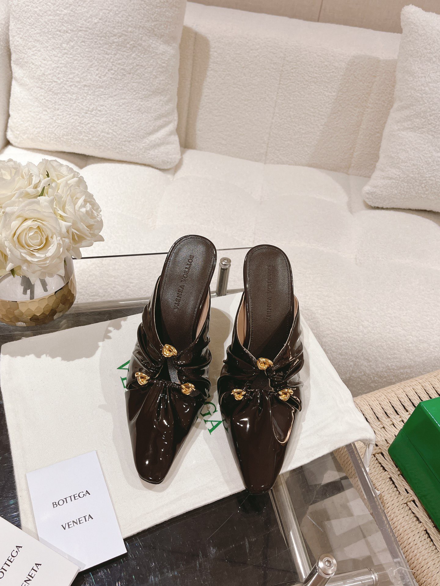 Bottega Veneta’s Bunnie mules traverse past and present, with vintage-inspired details compiled with a timeless approach. The gathered effect highlights the supple quality of the Italian House’s fine patent leather, while a trio of triangle shapes are effortlessly in step with the cut-outs found across international runways.