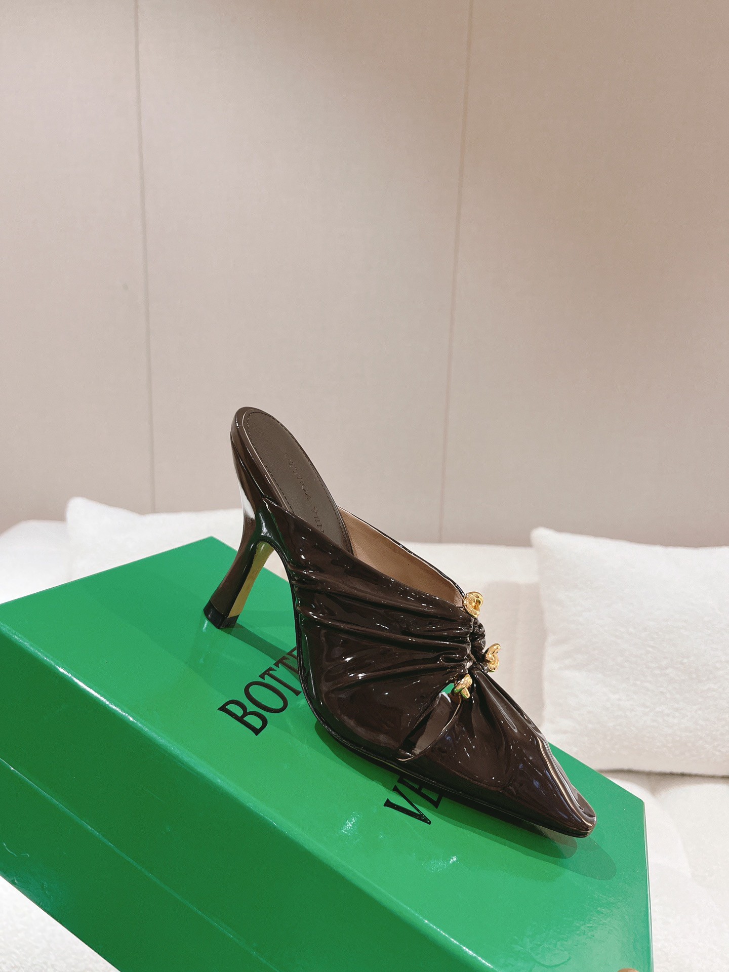 Bottega Veneta Bunnie Mules 90mm In Fondant Patent Leather