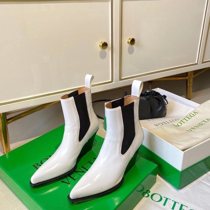 Bottega Veneta BV Lean Chelsea Boots In White Calfskin