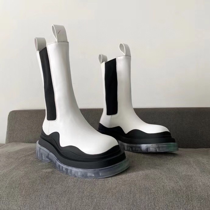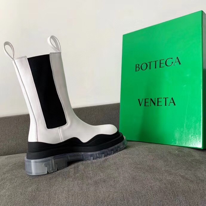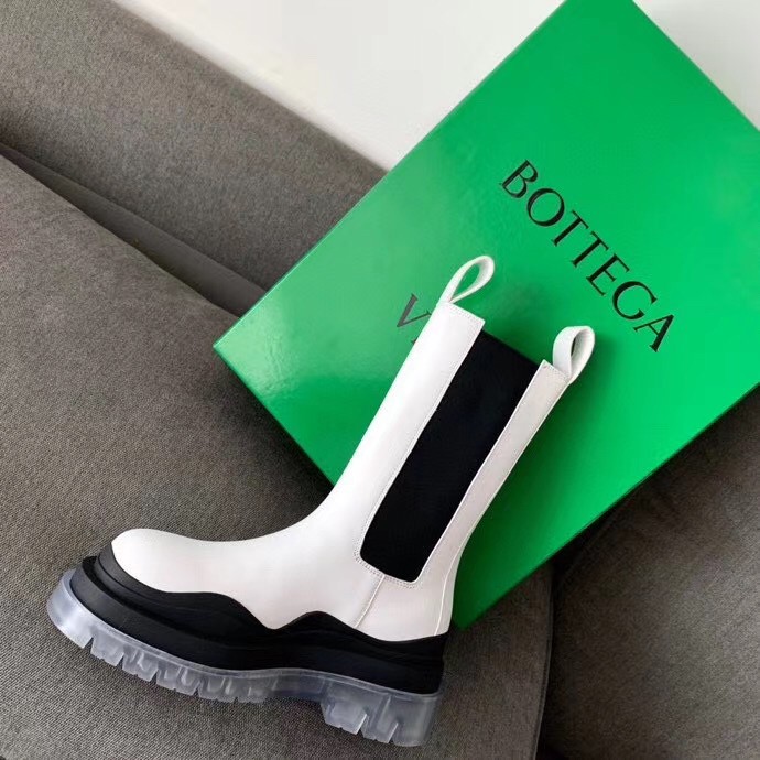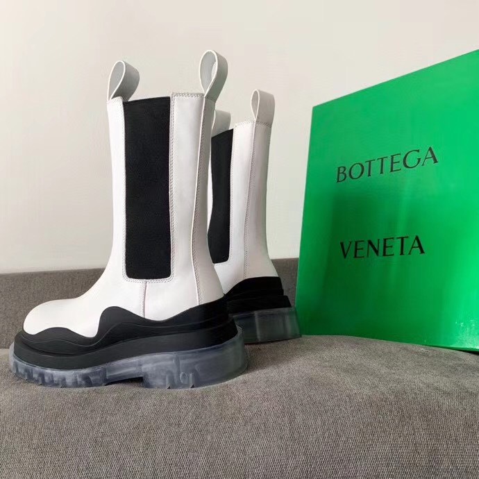 Bottega Veneta BV Tire Chelsea Boots In White Calfskin
