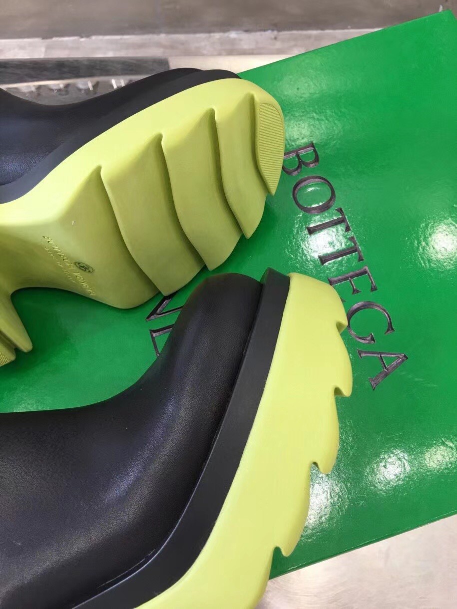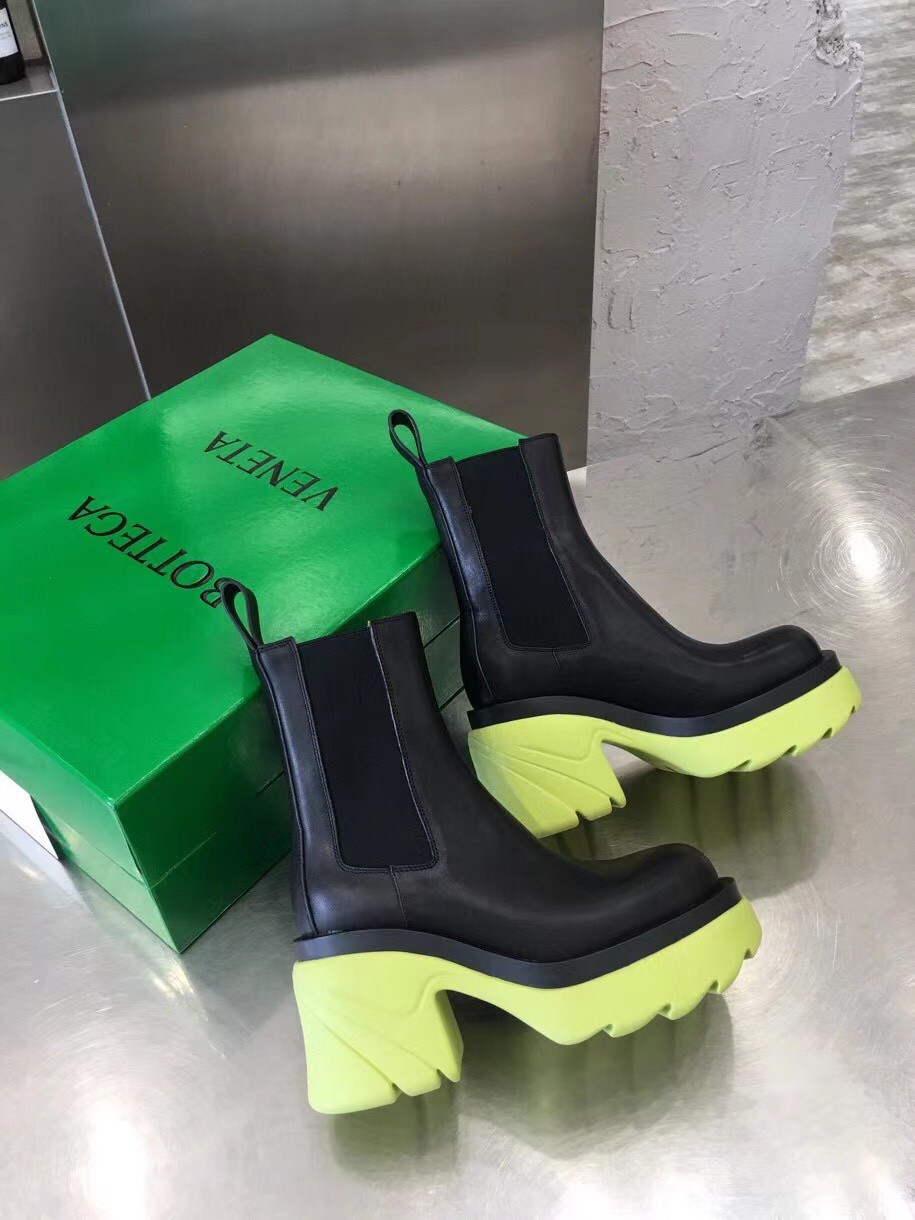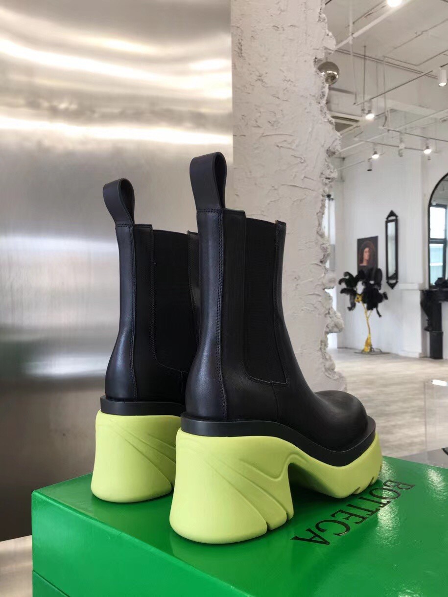 Inspired by supercars, Bottega Veneta’s black Flash boots are characterised by the yellow rubber outsoles and block heel that are chunky yet lightweight and flexible. They’re made from vegetable-tanned leather with a round toe, elasticated side gussets and a heel pull.