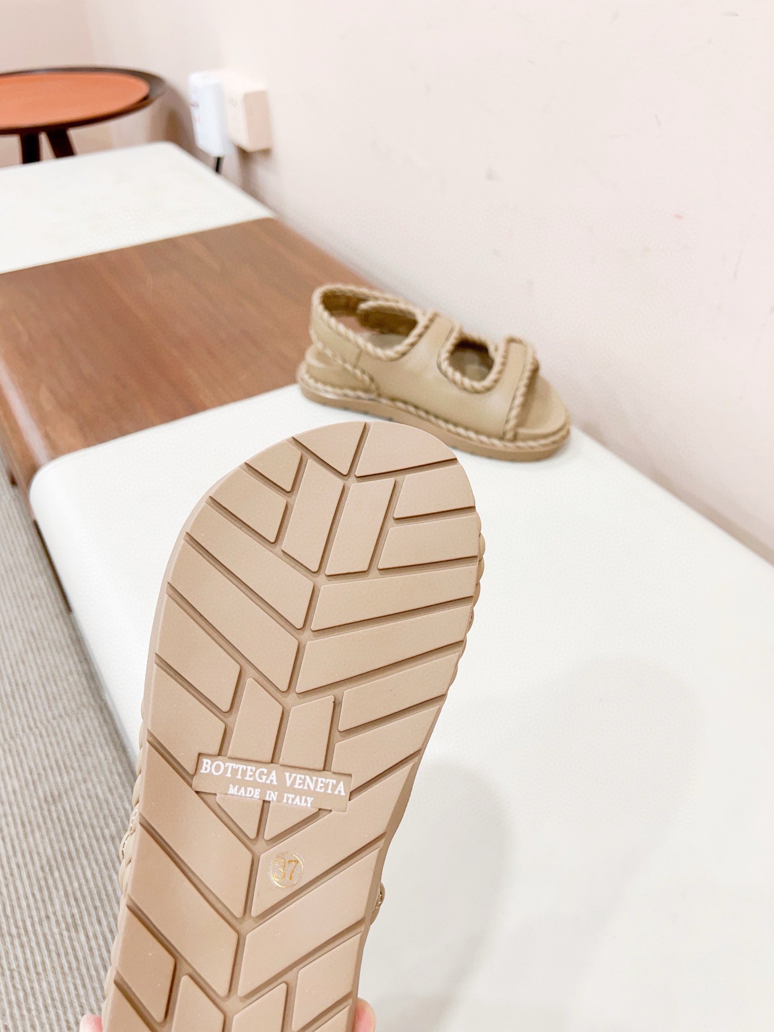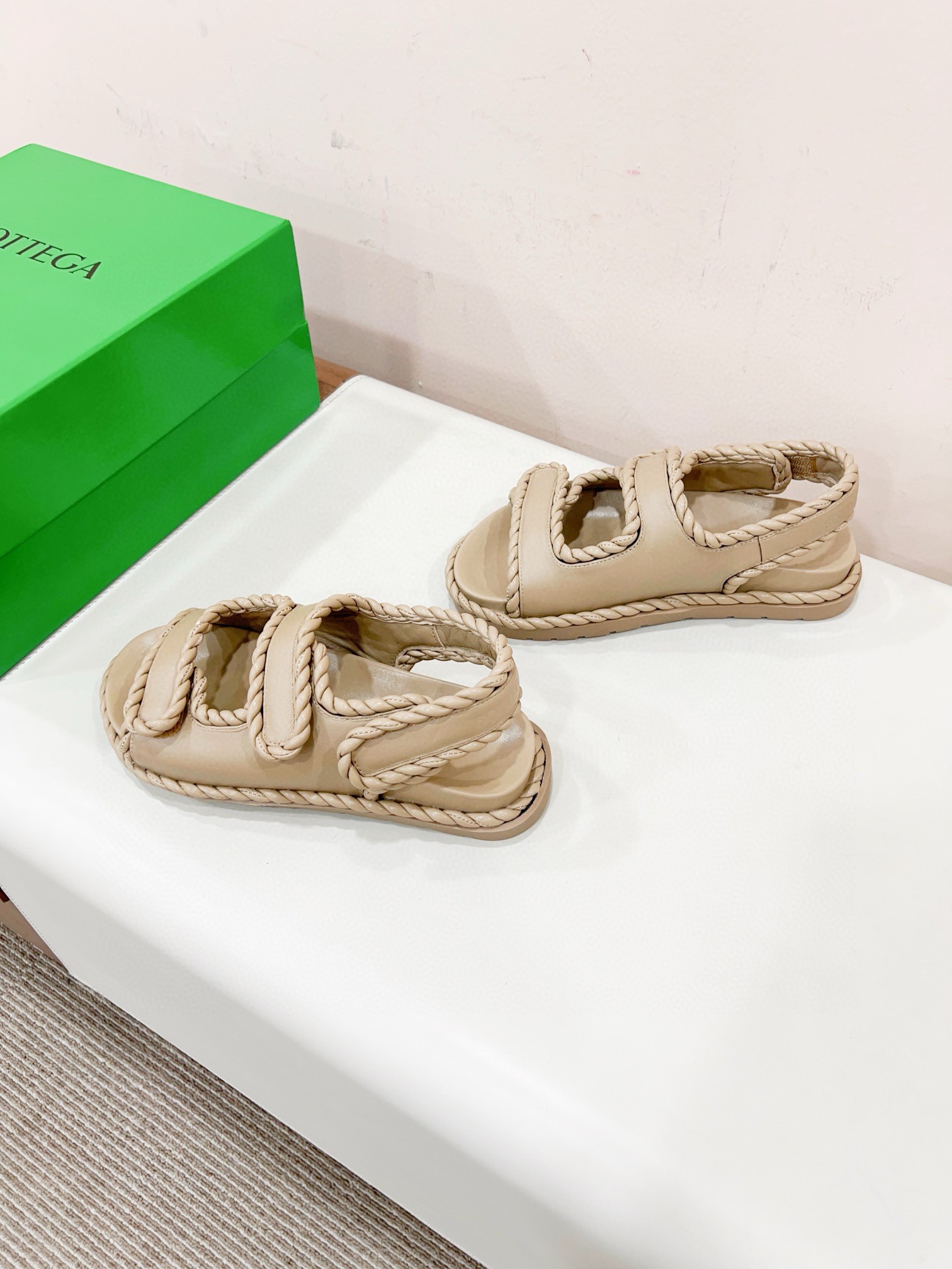 Bottega Veneta Jack Flat Slingback Sandals in Beige Lambskin