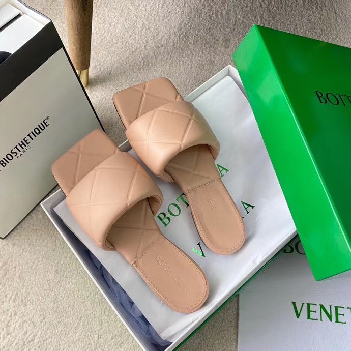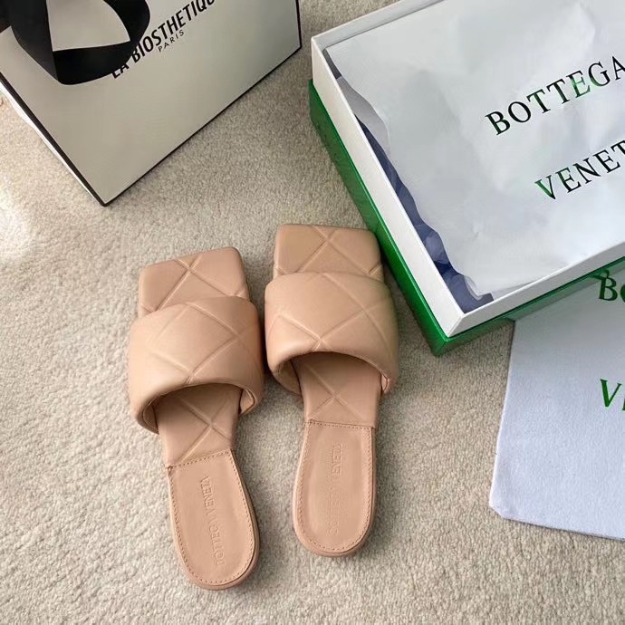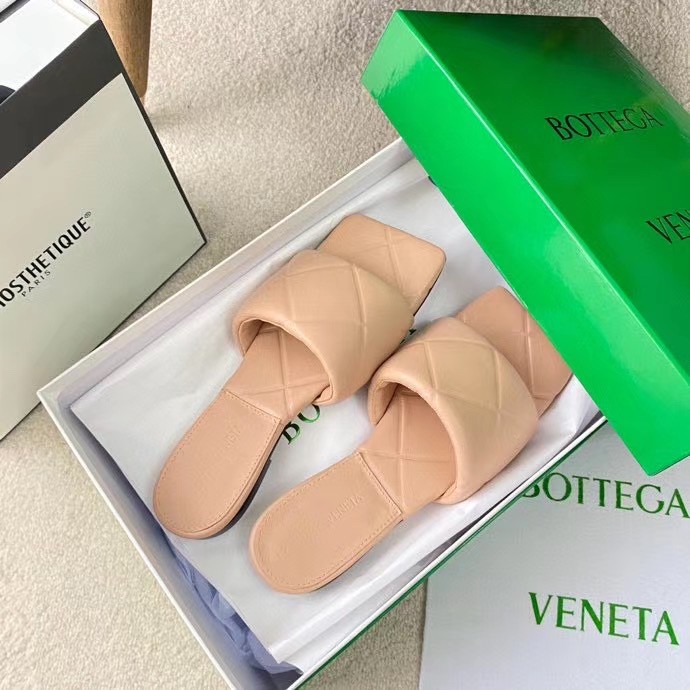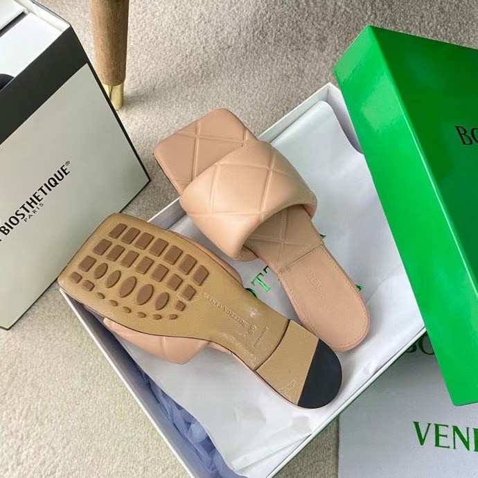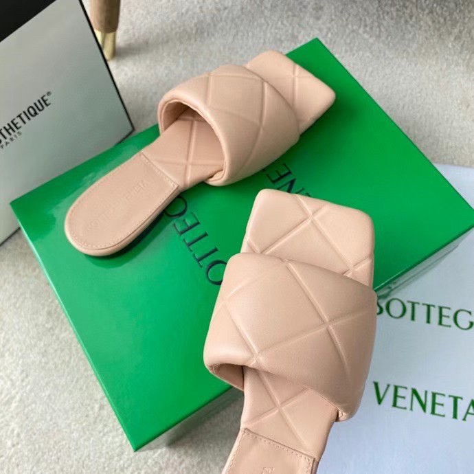 Bottega Veneta Rubber Lido Slides In Peachy Lambskin