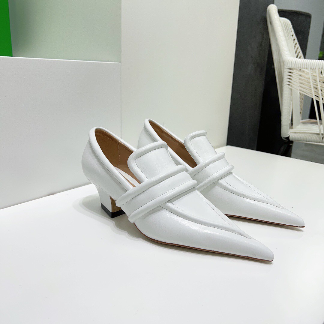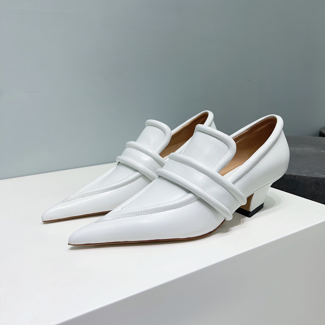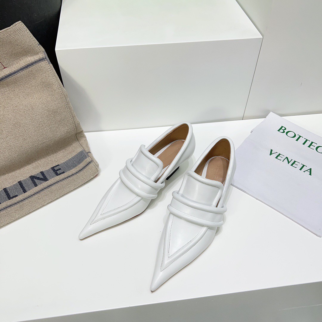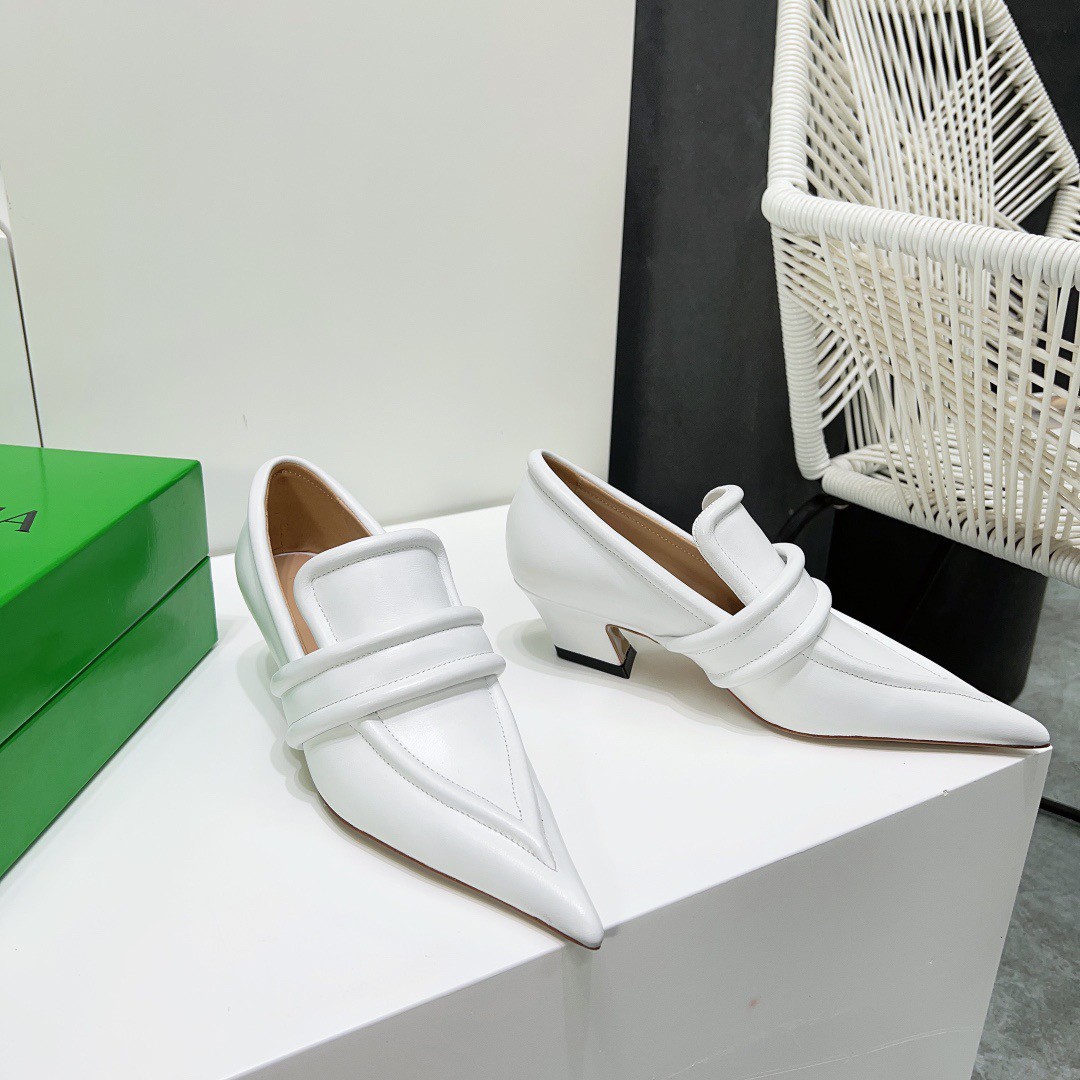 The Spada loafer pumps from Bottega Veneta are an elevated office staple. Crafted from smooth leather, the slip-on design has an elongated pointed-toe silhouette and is set atop a 45mm curved heel.