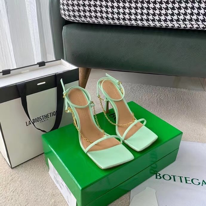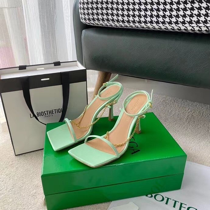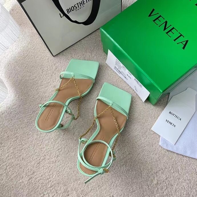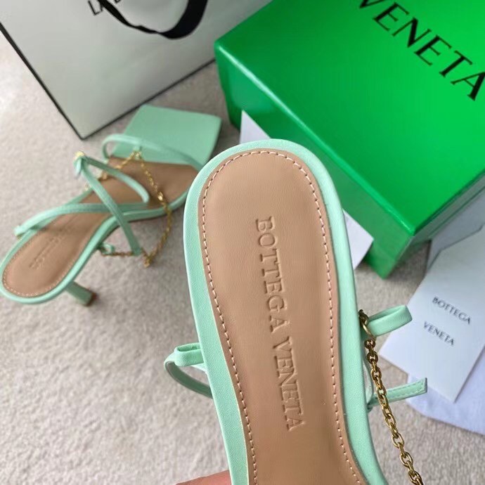 Bottega Veneta Stretch Chain Sandals In Pistachio Lambskin