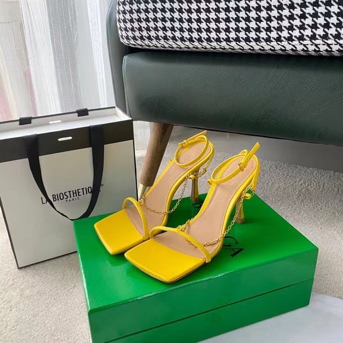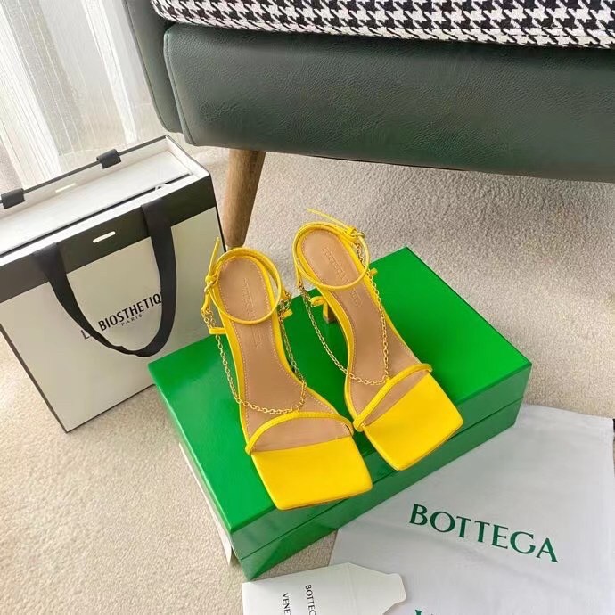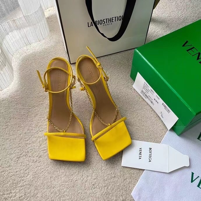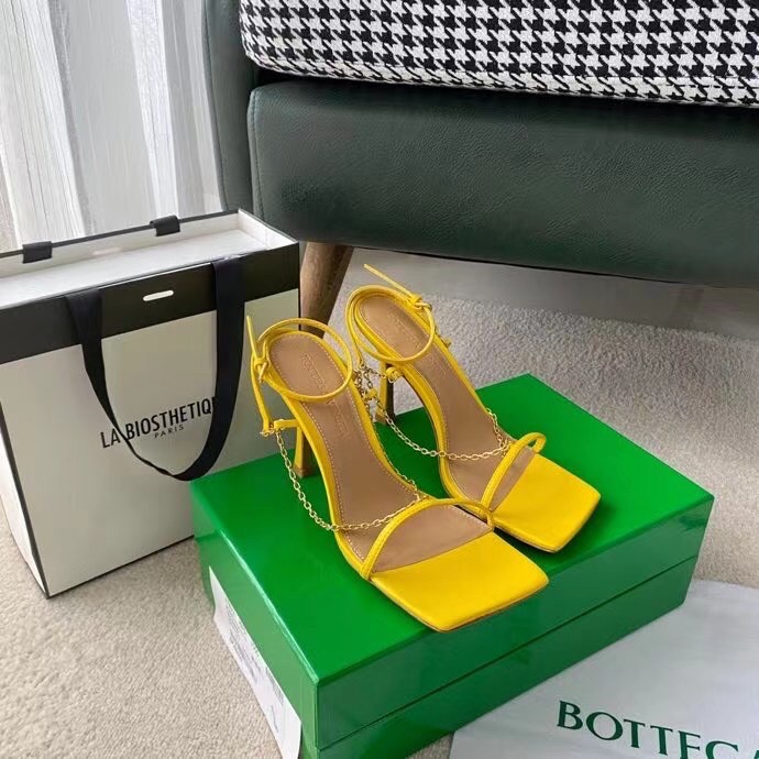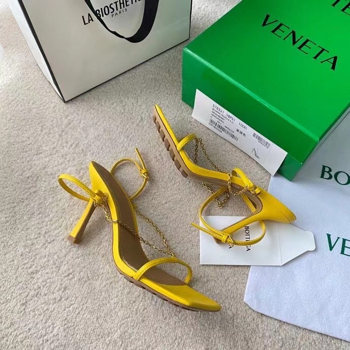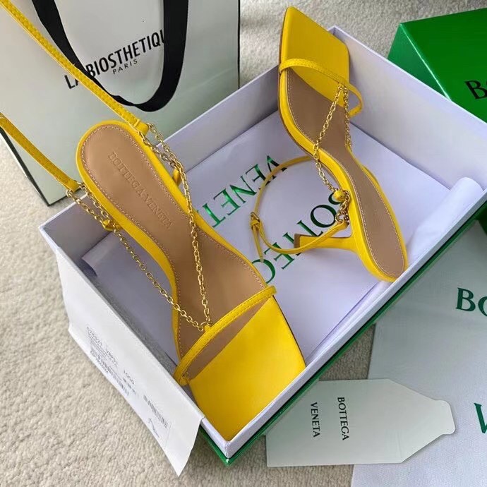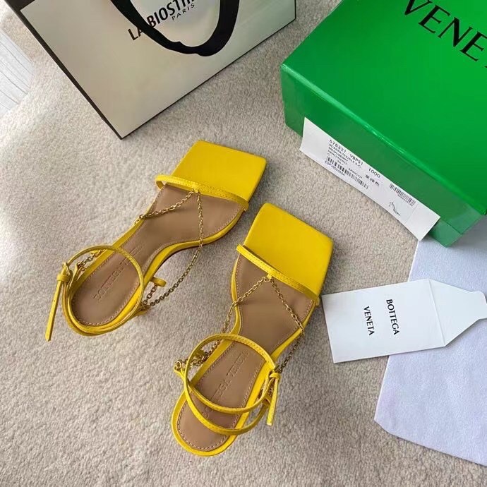 Bottega Veneta Stretch Chain Sandals In Yellow Lambskin