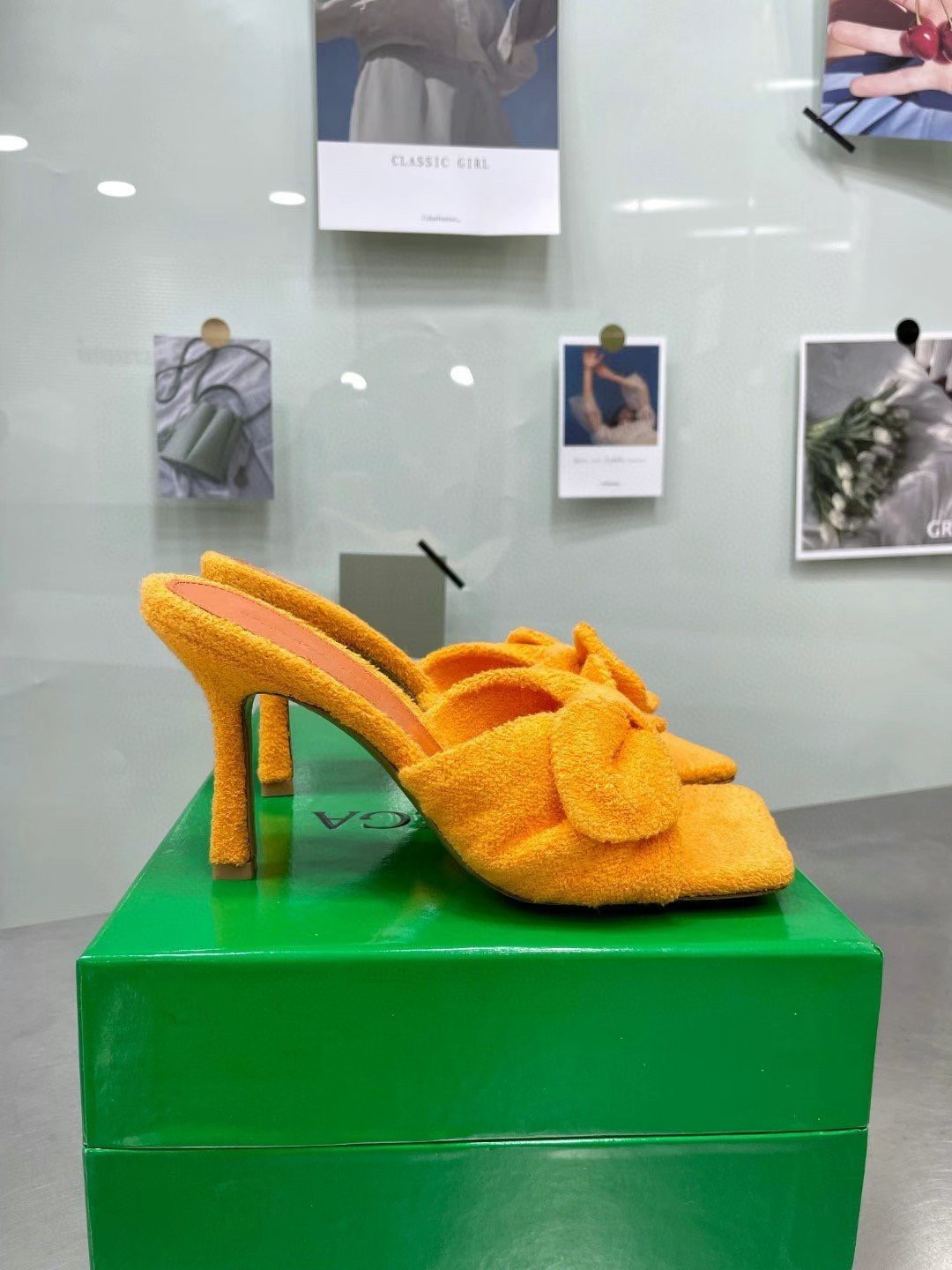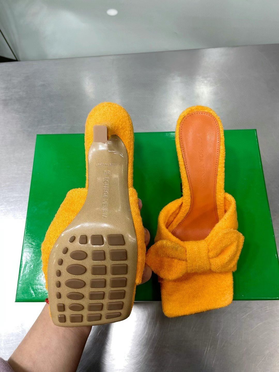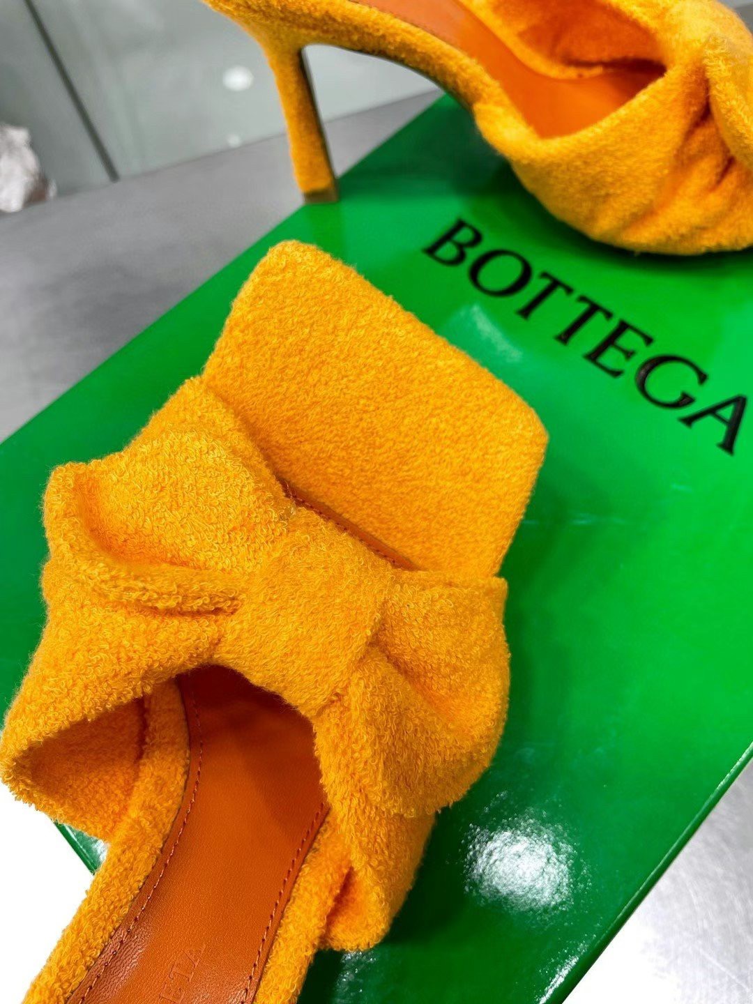 Bottega Veneta takes a fun approach to summer footwear with the Stretch sandals. They are made from terry cloth and accented with bows featuring distinct squared toes.