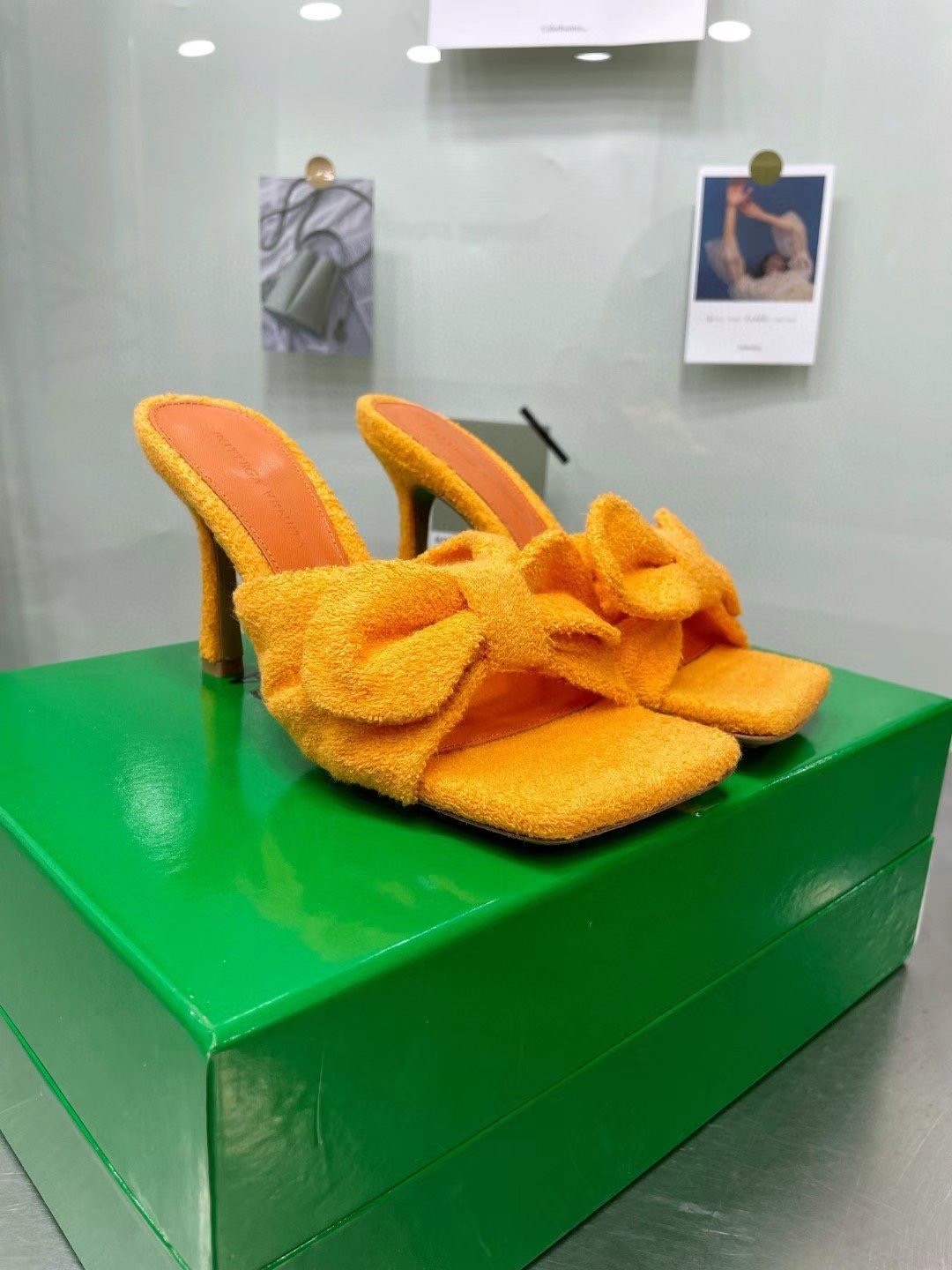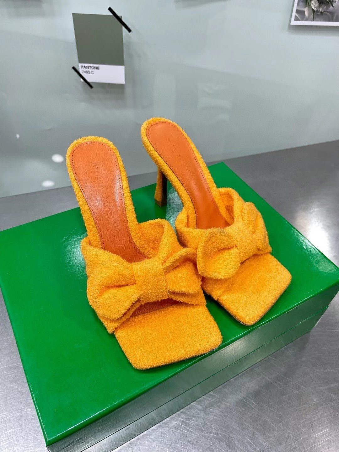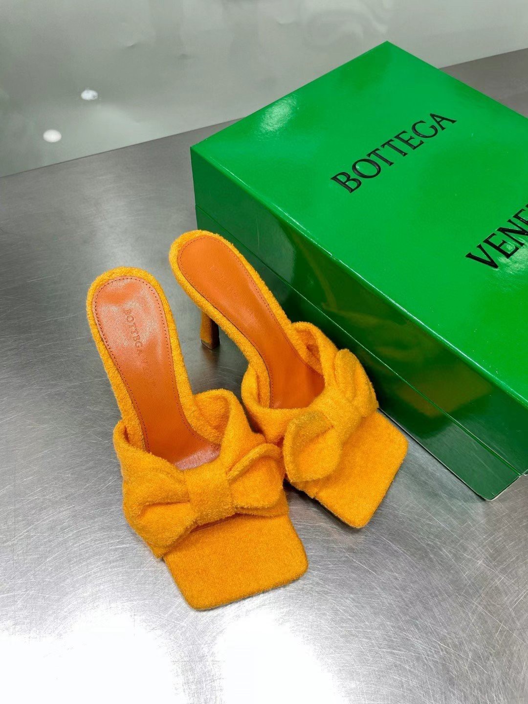 Bottega Veneta takes a fun approach to summer footwear with the Stretch sandals. They are made from terry cloth and accented with bows featuring distinct squared toes.