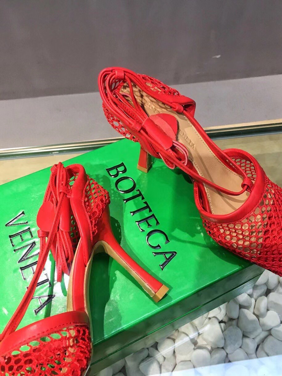 Bottega Veneta takes a unique approach to fabrication for a truly modern approach to luxury, as exemplified by the Stretch mesh sandals. Trimmed with supple leather, the design has wrap-tie ankle fastenings, tapered 90mm heels and squared toes, resulting in a directional look.