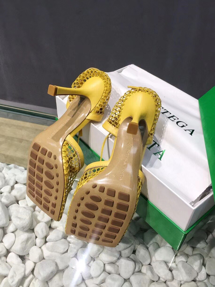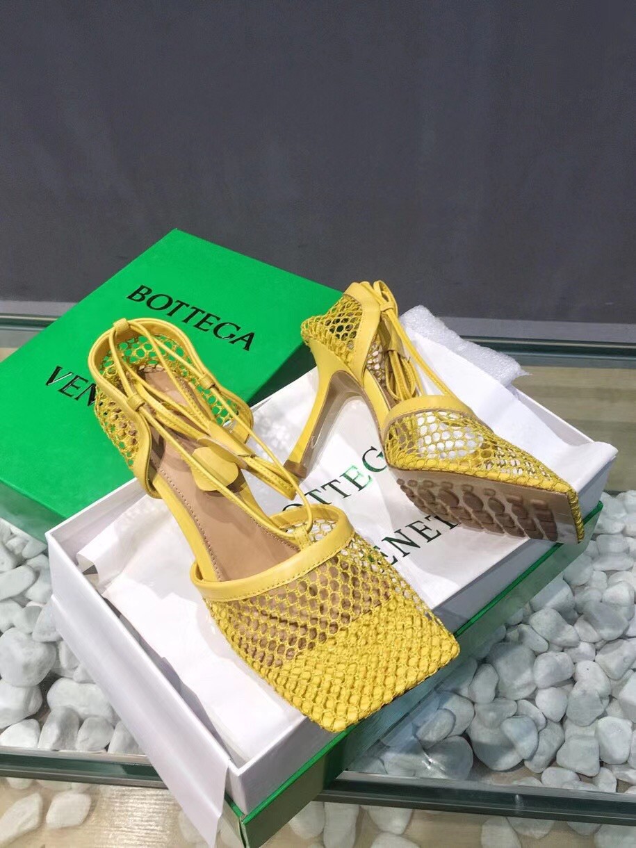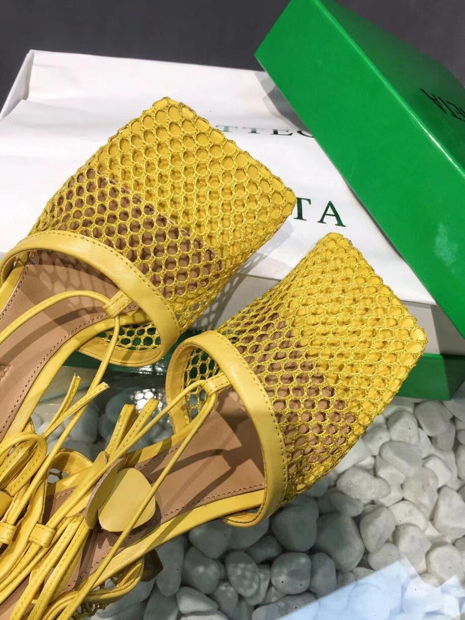 Bottega Veneta Stretch Sandals In Yellow Mesh