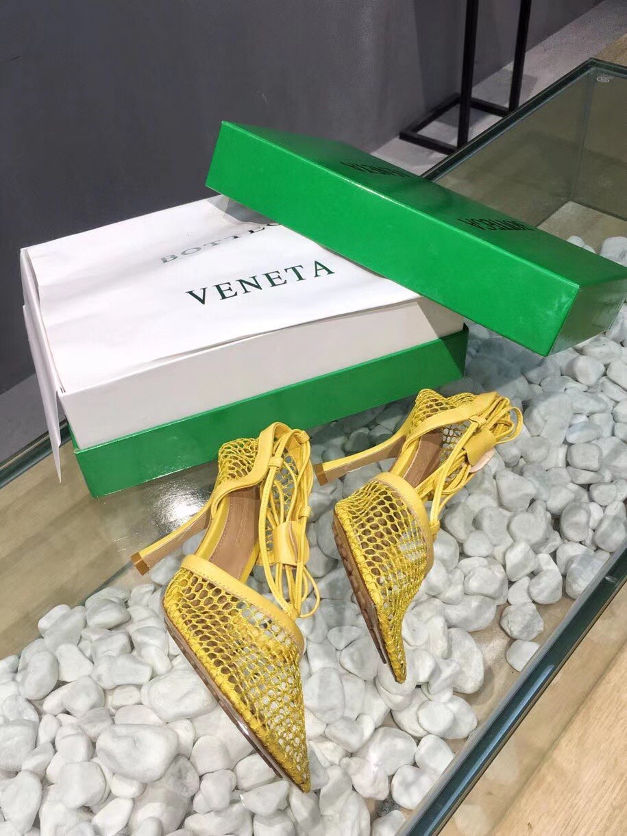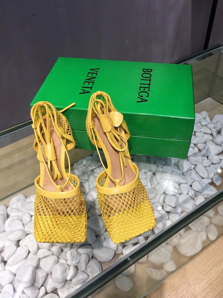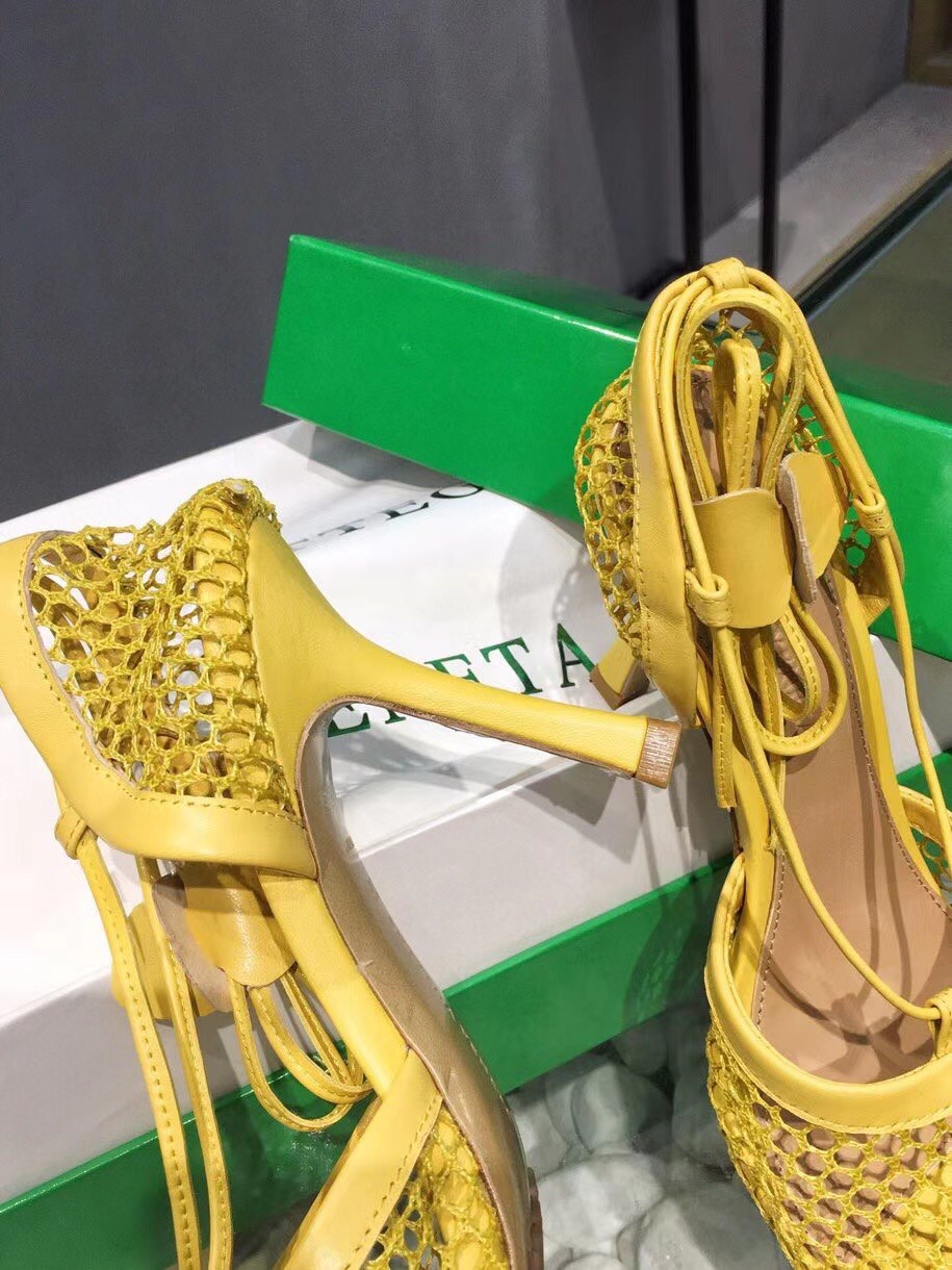 Bottega Veneta Stretch Sandals In Yellow Mesh