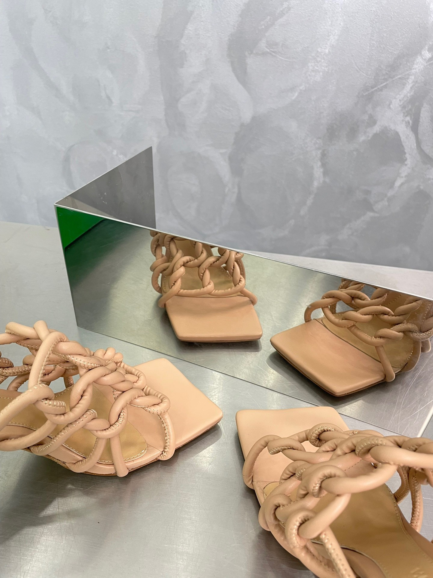 Bottega Veneta is known for its signature intrecciato technique but plays with weaving in a different way for these ‘Stretch’ mules. Designed with square toes, they’ve been made from tubes of leather and twisted by hand to achieve the wide, lattice straps.