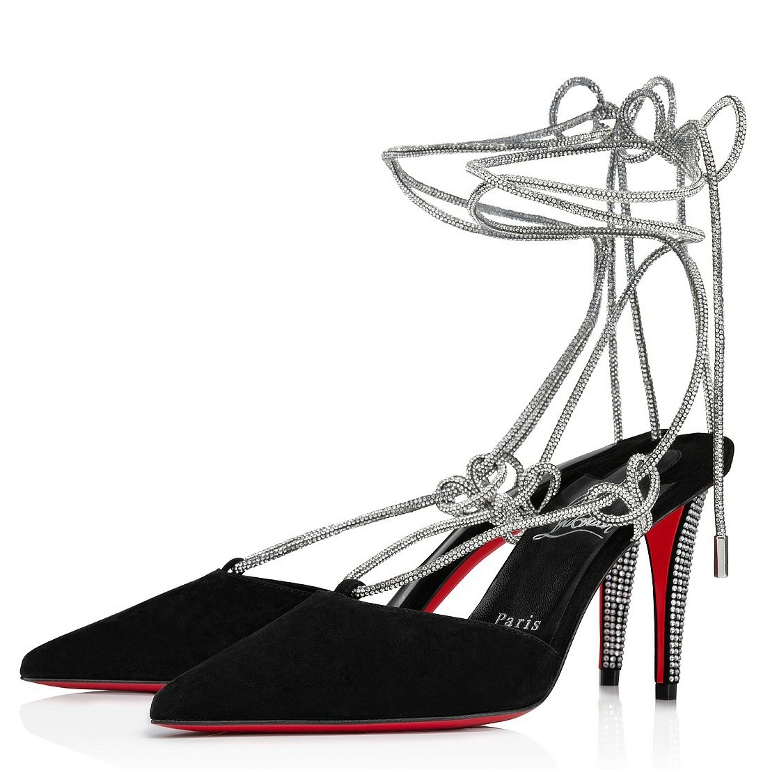 Christian Louboutin Astrid Lace Strass 85mm Strappy Pumps