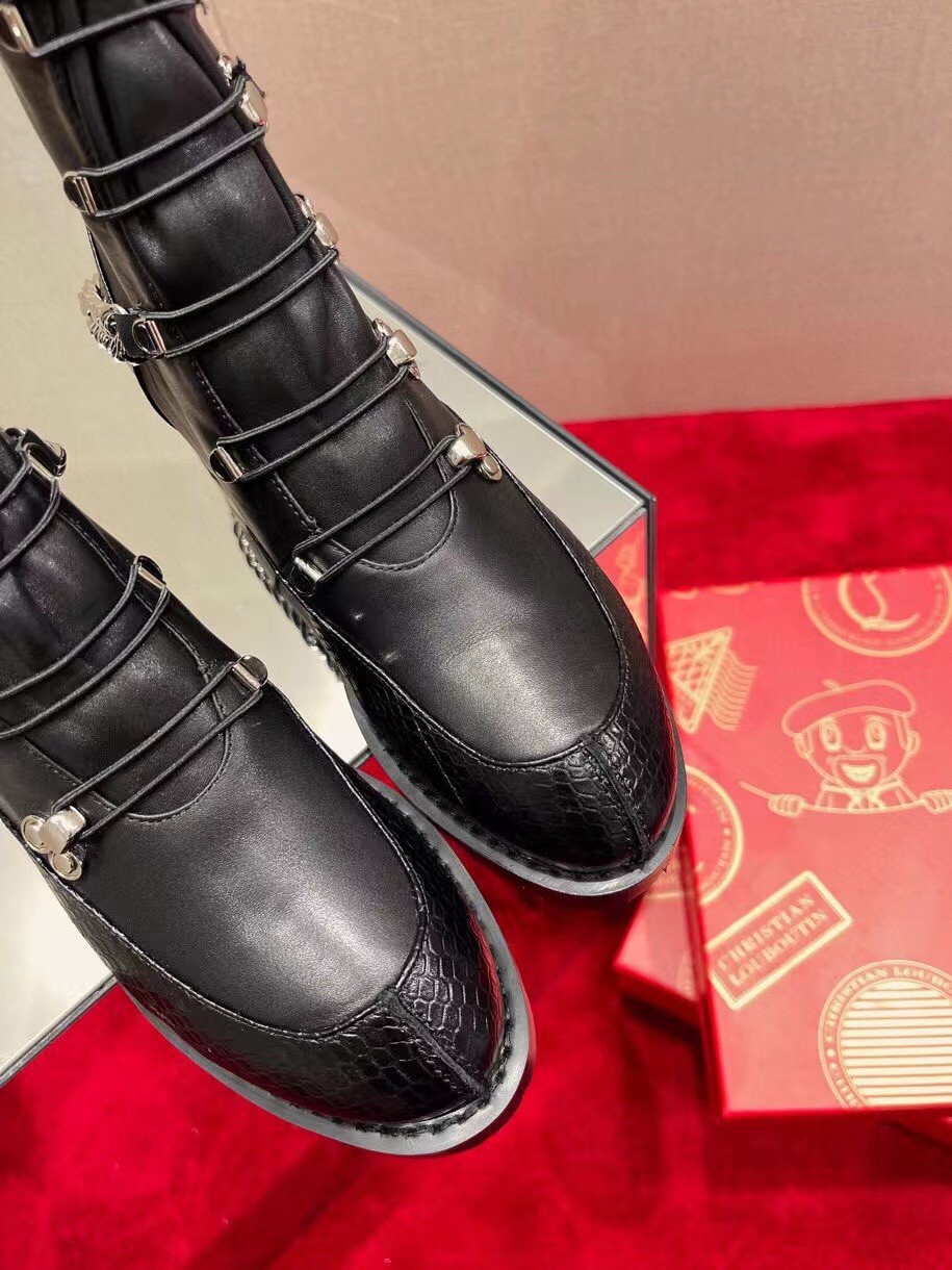 Christian Louboutin Black Horse Guarda Flat Ankle Boots