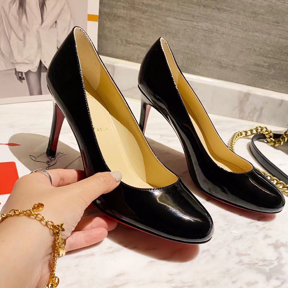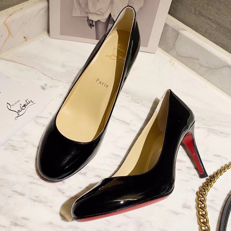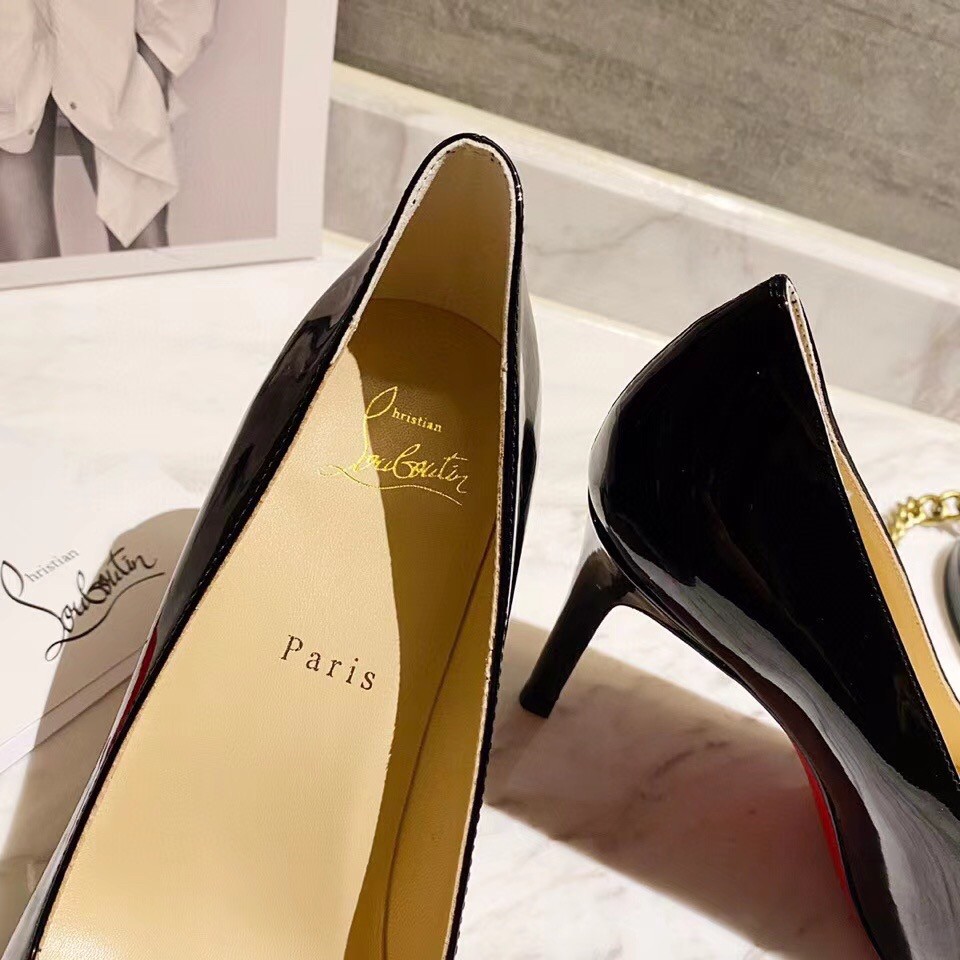 An iconic model, the Fifille pump seduces with its timelessness. In glossy black patent leather, it is mounted on a 85mm stiletto. Its décolleté and curved topline hug the foot with finesse and each step reveals the signature of the Louboutin House.