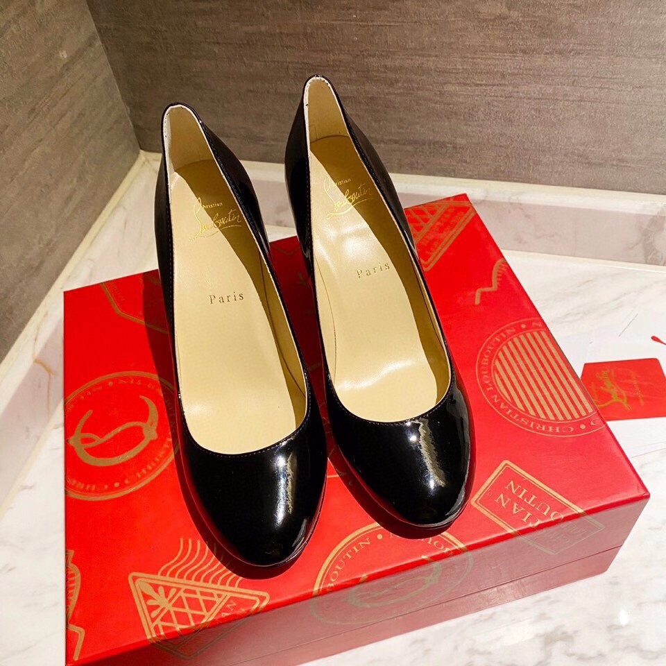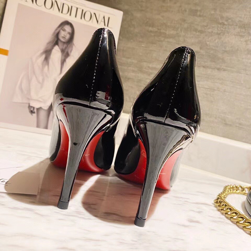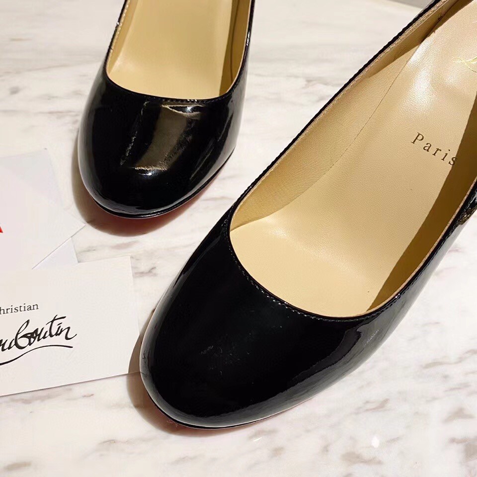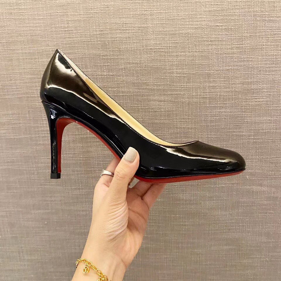 An iconic model, the Fifille pump seduces with its timelessness. In glossy black patent leather, it is mounted on a 85mm stiletto. Its décolleté and curved topline hug the foot with finesse and each step reveals the signature of the Louboutin House.