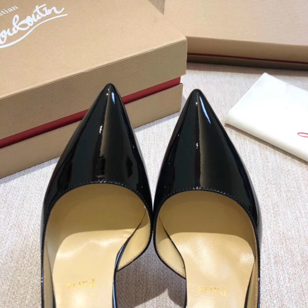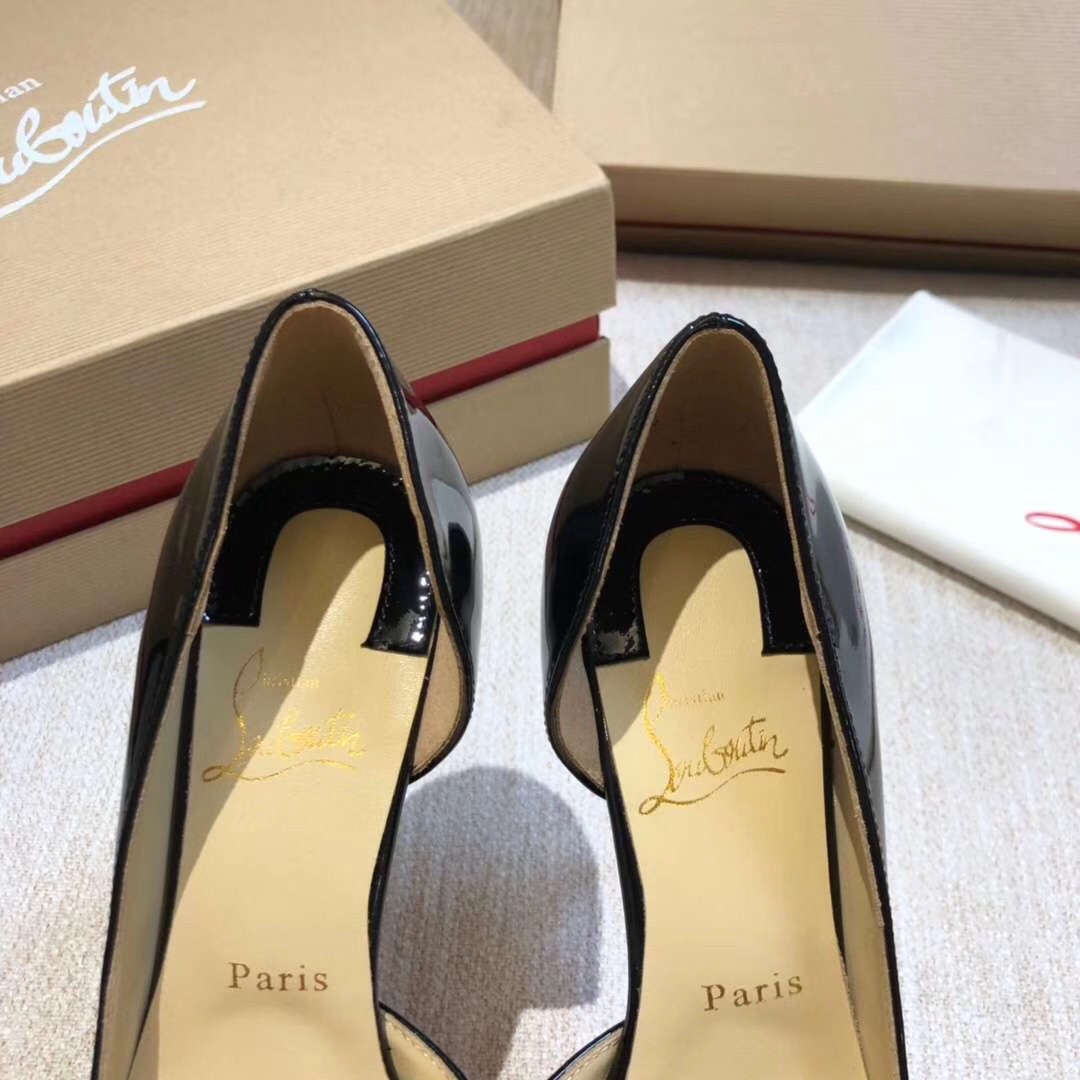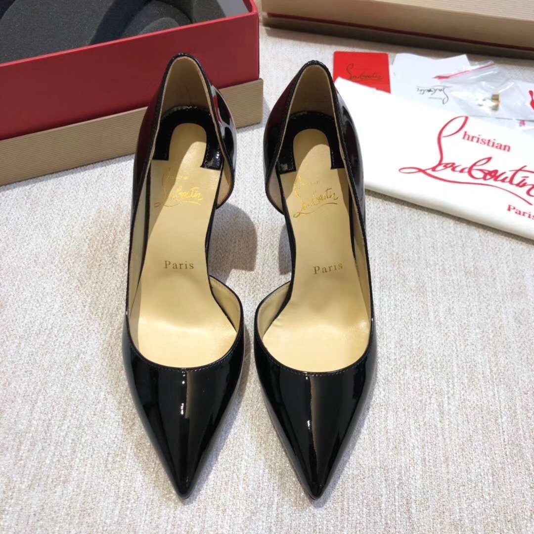Christian Louboutin’s half d’Orsay Iriza pump in classic glossy patent leather is a timeless classic. Featuring a sensational cutout vamp and 70mm of heel for an exquisite silhouette of the pointy-toe pump. Expertly placed curves, revealing the foot’s natural arch ensure every confident step.