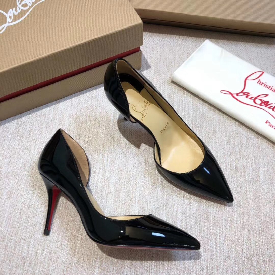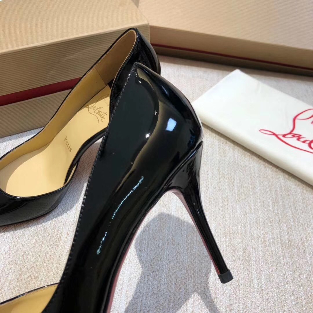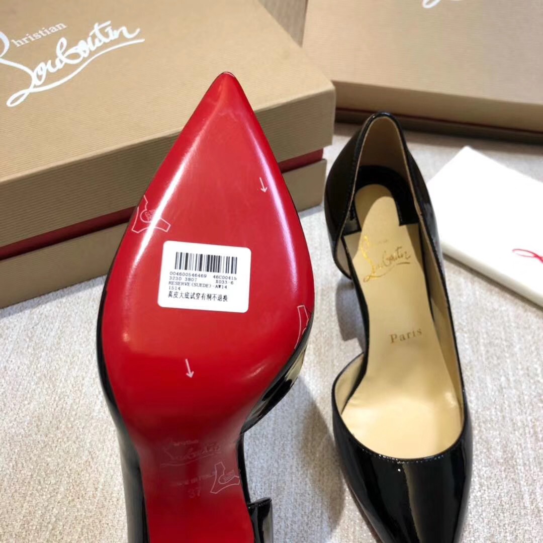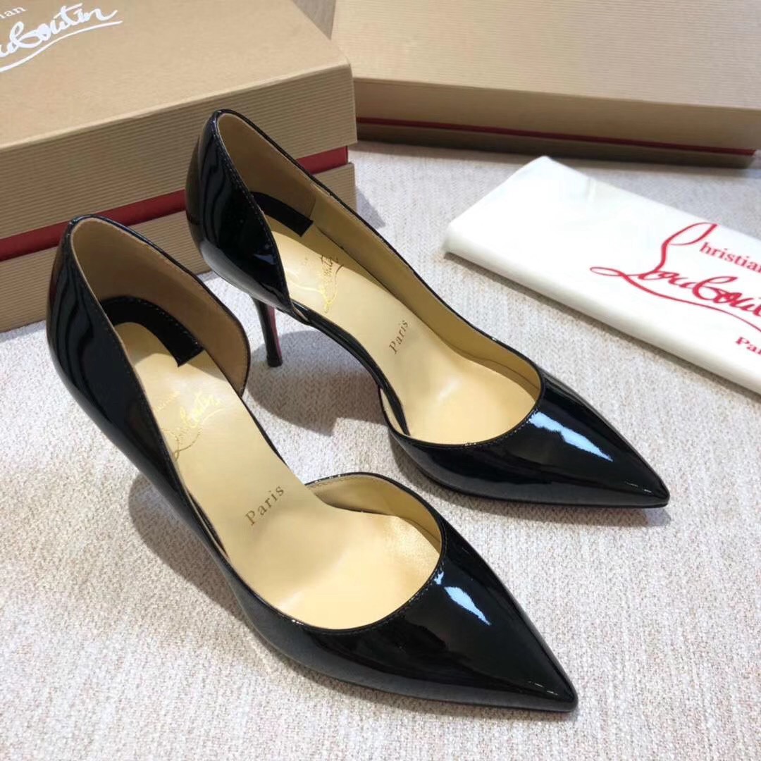 Christian Louboutin’s half d’Orsay Iriza pump in classic glossy patent leather is a timeless classic. Featuring a sensational cutout vamp and 70mm of heel for an exquisite silhouette of the pointy-toe pump. Expertly placed curves, revealing the foot’s natural arch ensure every confident step.