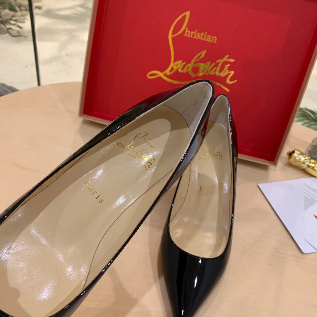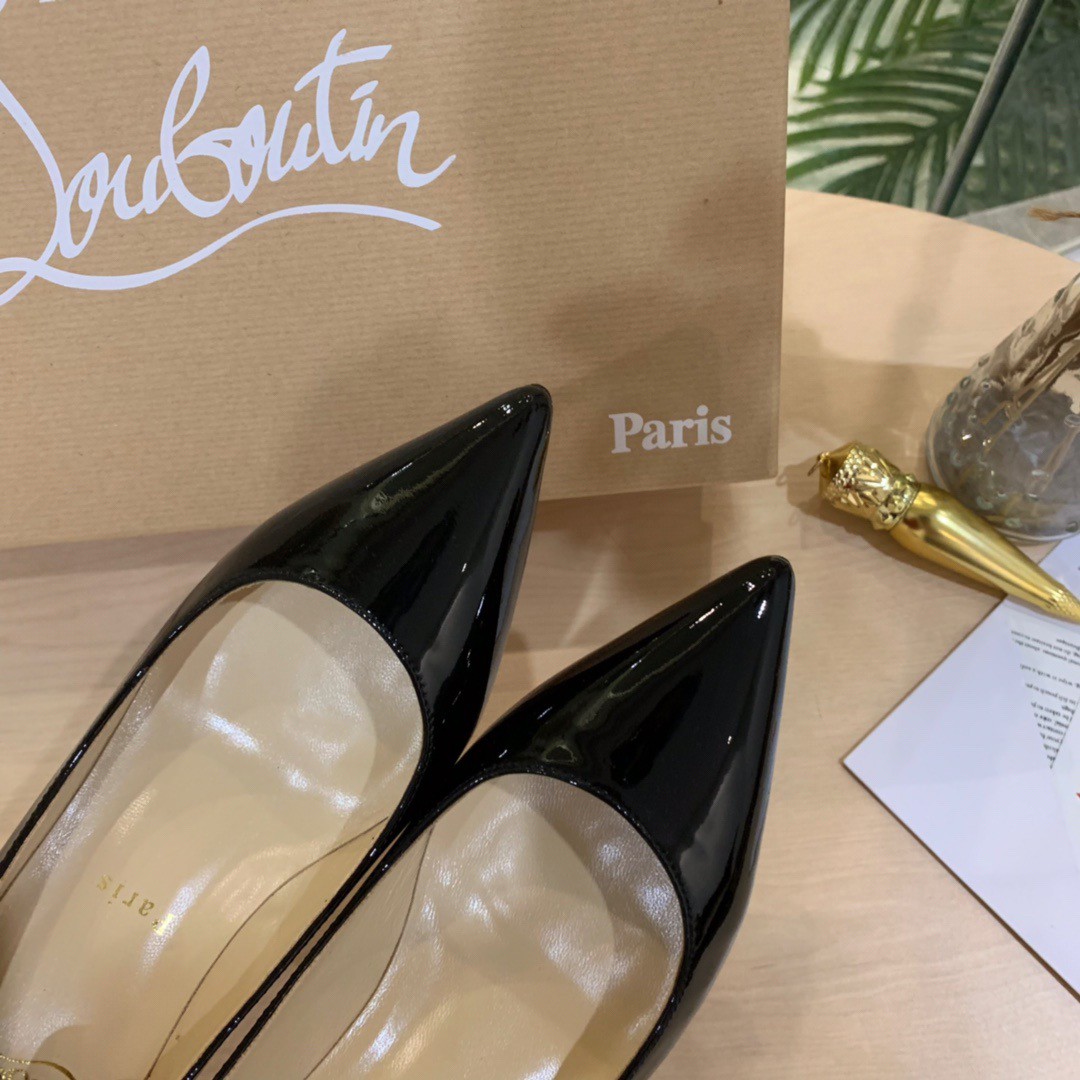 If you need one pump that can do it all, go with the classic low-cut pointy-toe Kate crafted in glossy patent leather. Set on a 70mm sharp stiletto, this is one of Christian Louboutin’s most prized styles. The « DECOLLETE 554 » style is now « KATE ». Discover this signature style, Christian Louboutin’s icon!