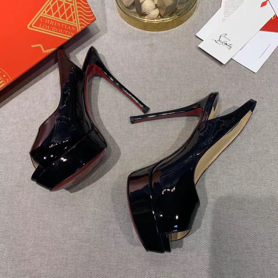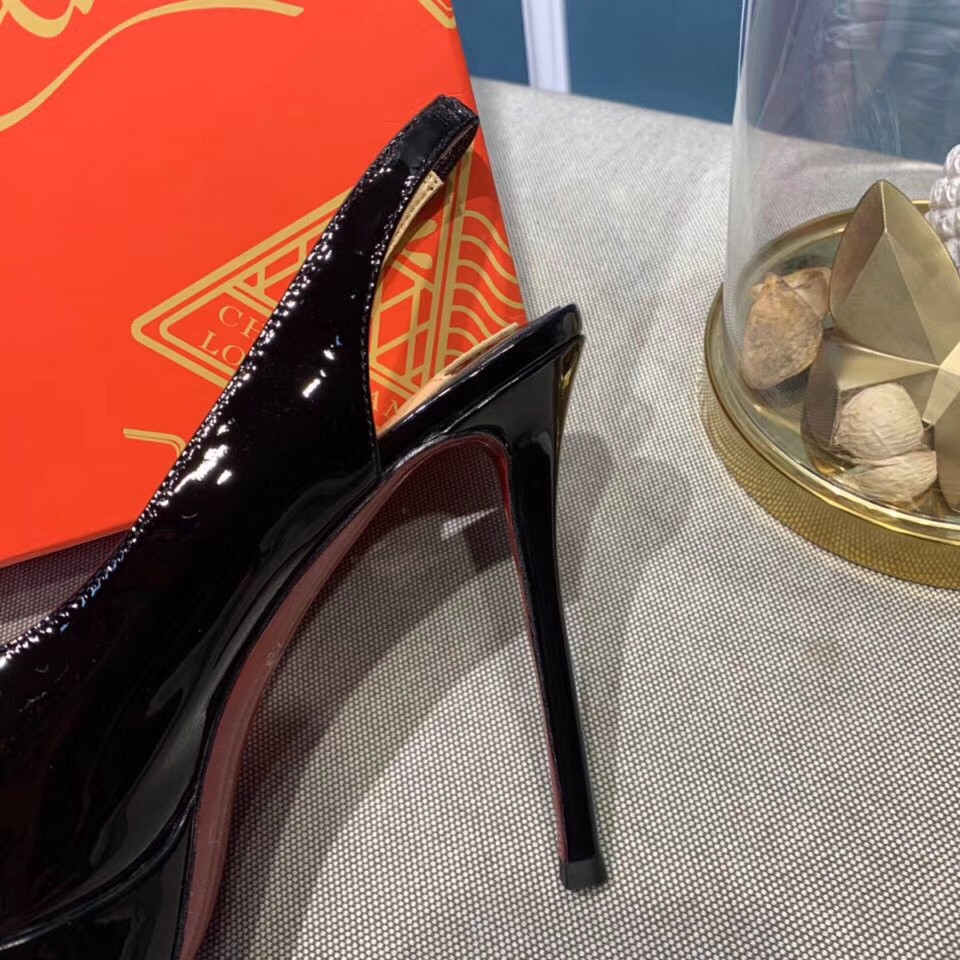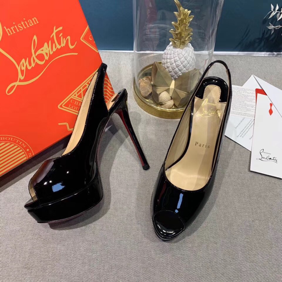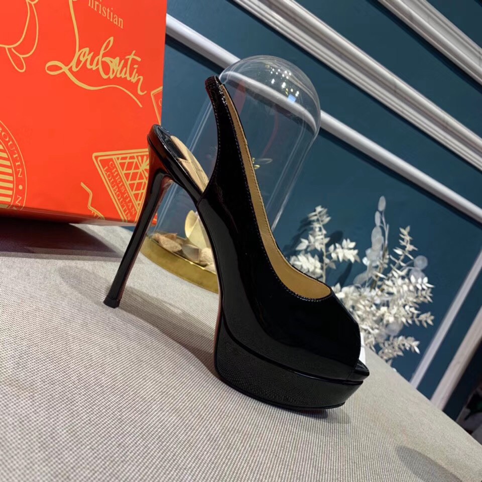 With her jaw-dropping height and luxurious shape, “Lady Peep Sling” seduces even the toughest of critics. Her substantial platform reduces the plunge of the dramatic 130mm pitch, allowing you to walk with confidence. Slip on this pair in black patent leather for a glamorous take on the pin-up look.