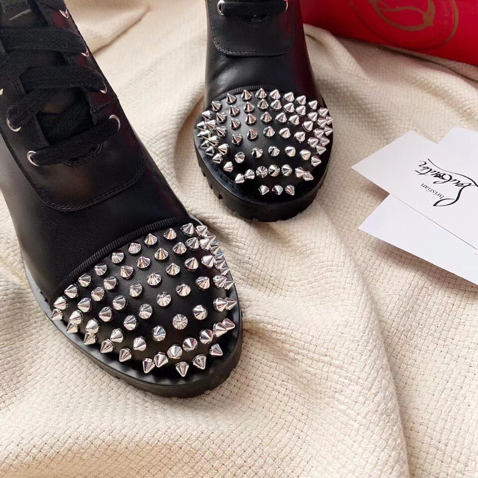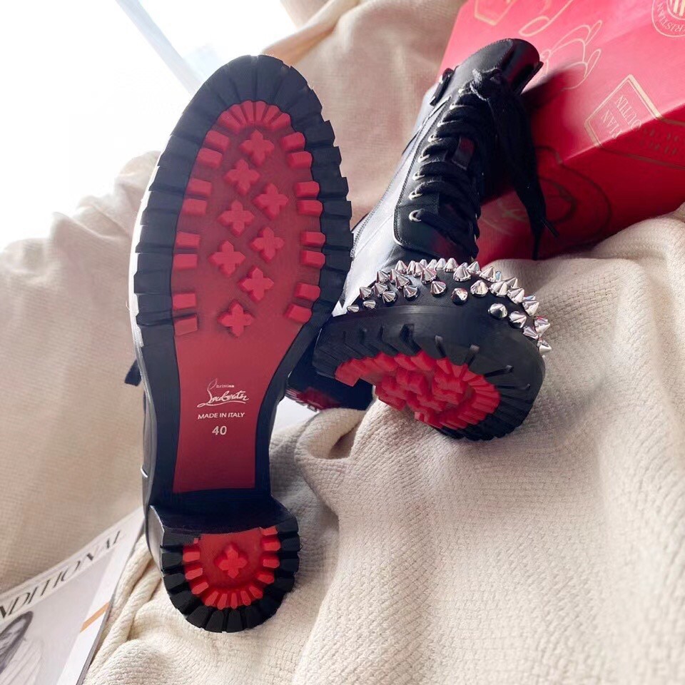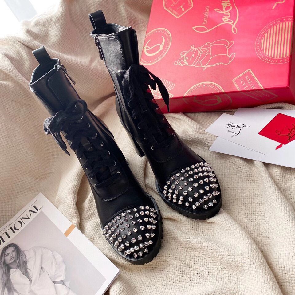 Christian Louboutin aims to match his creations with the lifestyles of the women who wear his shoes – these ‘TS Croc’ boots are inspired by Taylor Swift’s on-the-road schedule. This chunky pair has been made from black leather and punctuated with silver spikes at the round toe. They have handy side zips and you can also tug the laces a touch tighter.