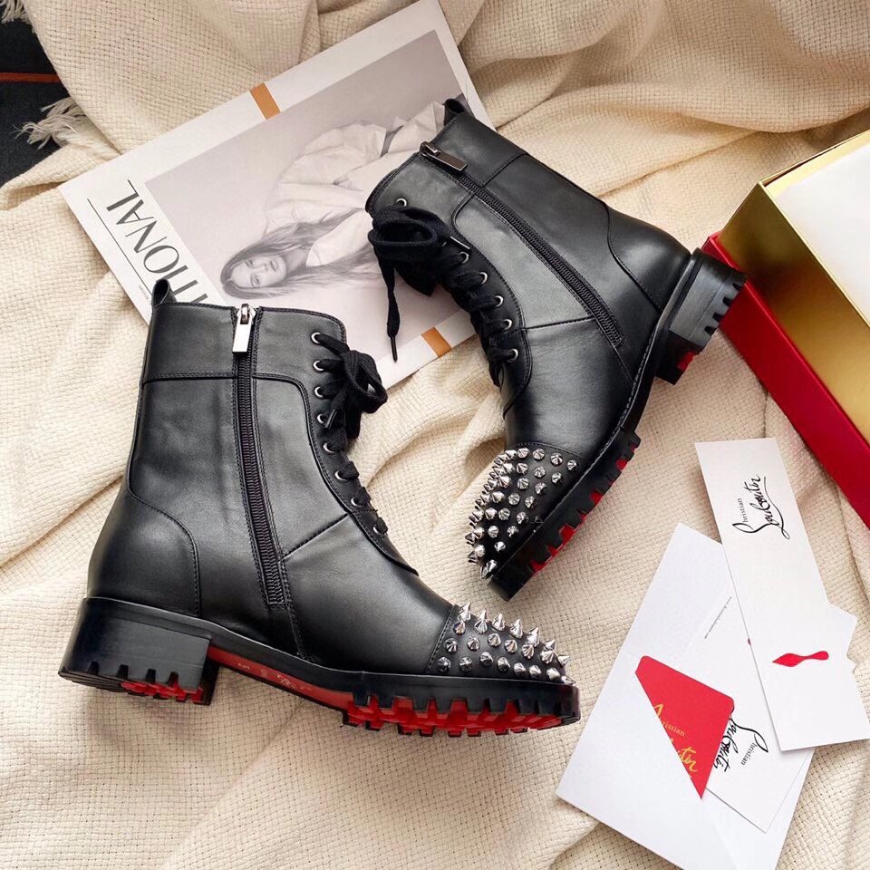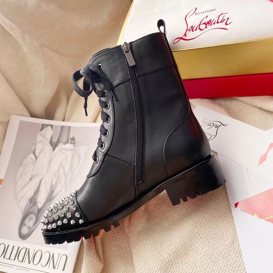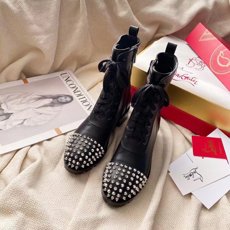 Christian Louboutin aims to match his creations with the lifestyles of the women who wear his shoes – these ‘TS Croc’ boots are inspired by Taylor Swift’s on-the-road schedule. This chunky pair has been made from black leather and punctuated with silver spikes at the round toe. They have handy side zips and you can also tug the laces a touch tighter.