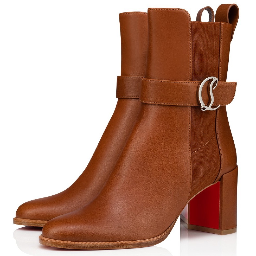 Christian Louboutin CL Chelsea Ankle Boots 70MM in Brown Leather