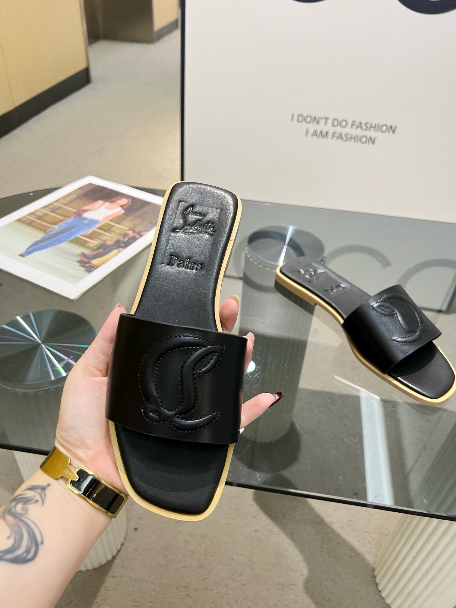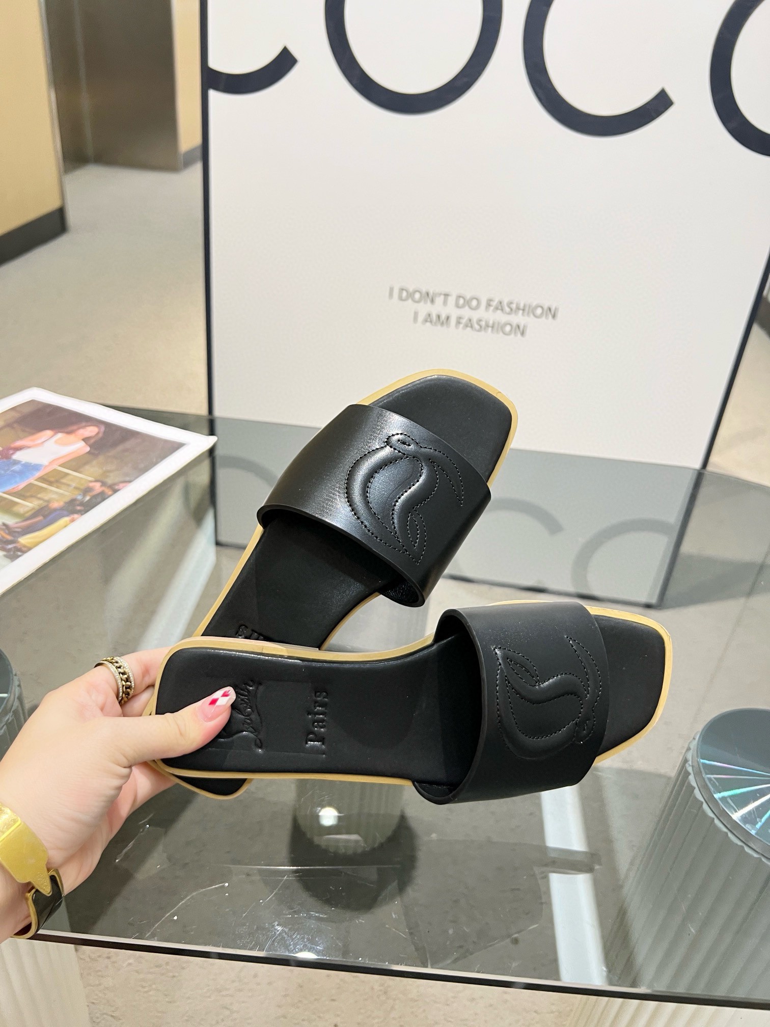 The timeless CL mule has a minimalist appeal. This elegant model is crafted in calf leather and has an embossed CL monogram on the upper, a Maison Christian Louboutin signature. Inspired by the new By My Side leather goods line, it features a padded effect on the sole.