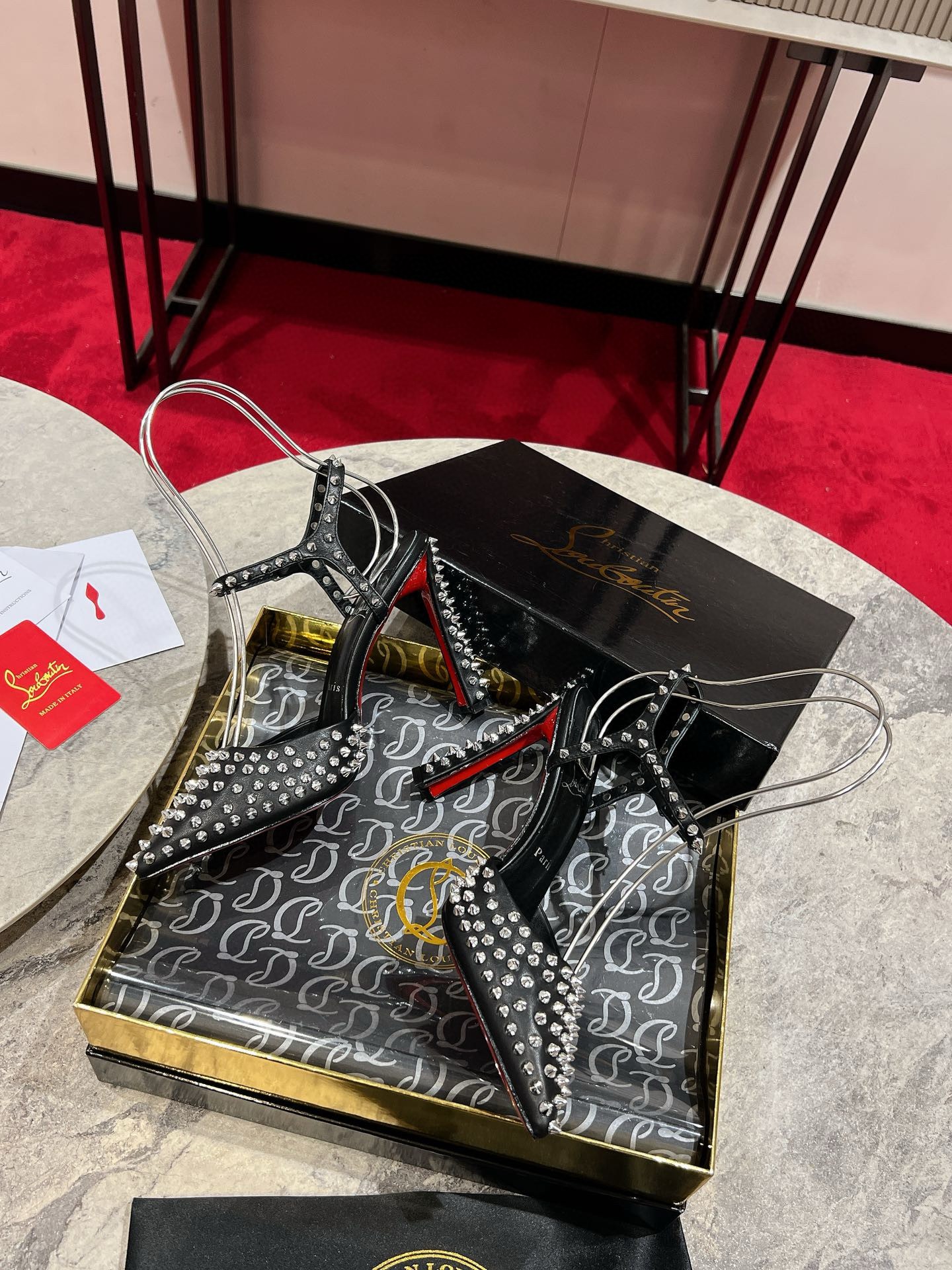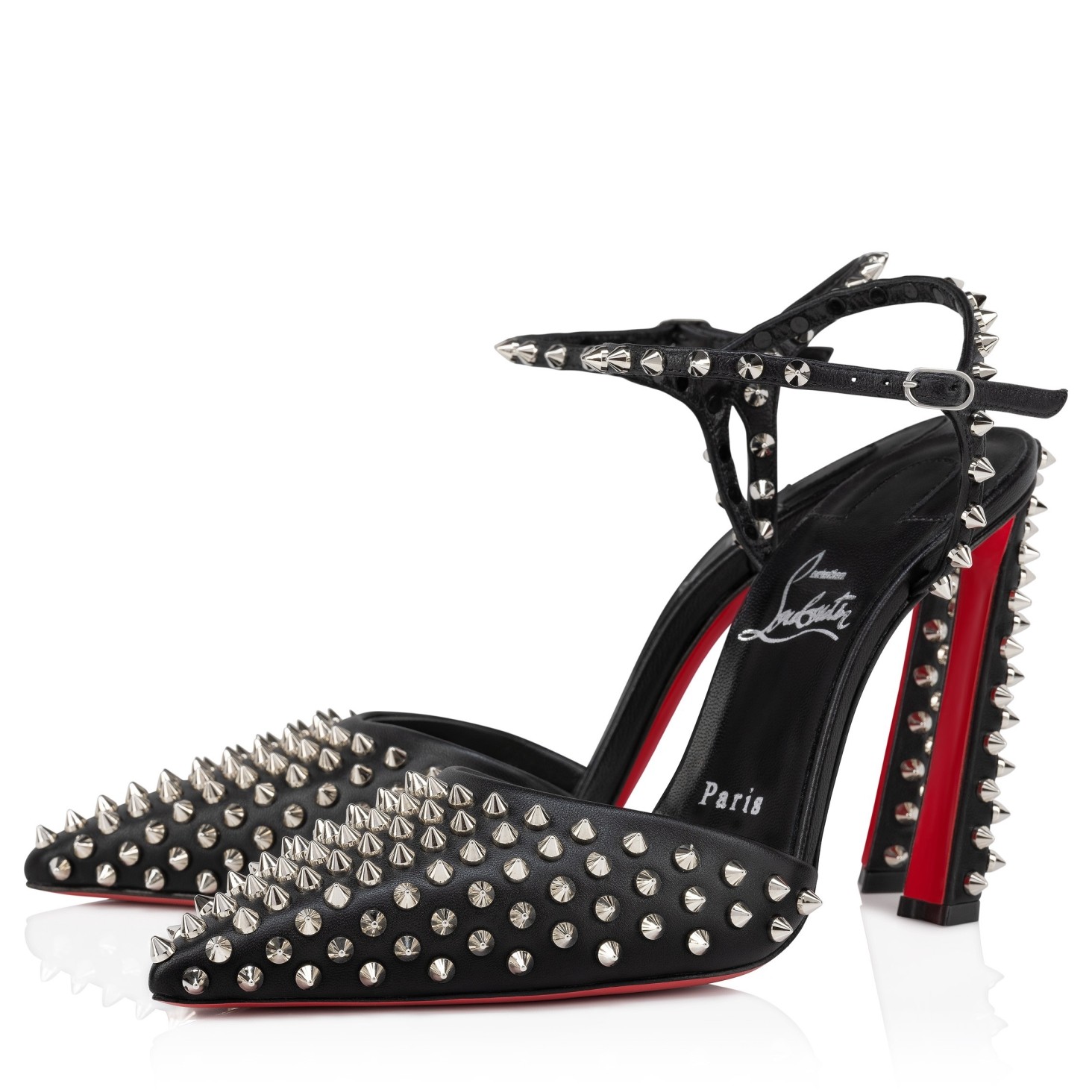 Embrace modern style with Maison Christian Louboutin’s Condora Riviera Spikes pumps. Crafted in luxurious black nappa leather, these pumps feature striking spike embellishments for an edgy twist. Complete with the iconic Loubi red sole and a 100 mm block stiletto heel, they radiate sophistication with a rebellious touch. Step confidently into any occasion with these daringly chic pumps that redefine elegance.