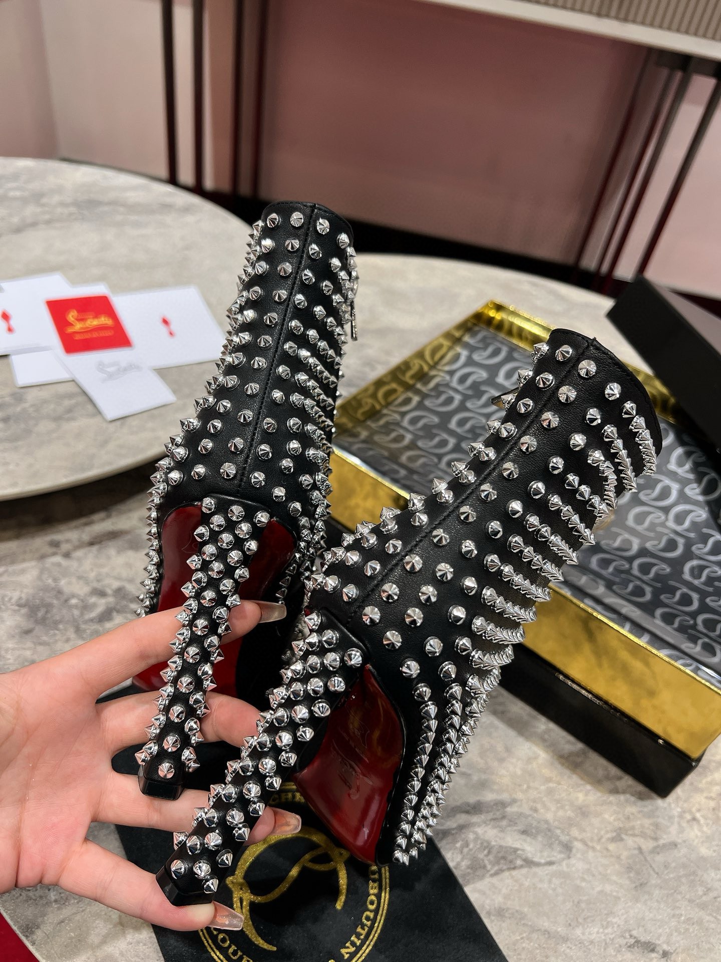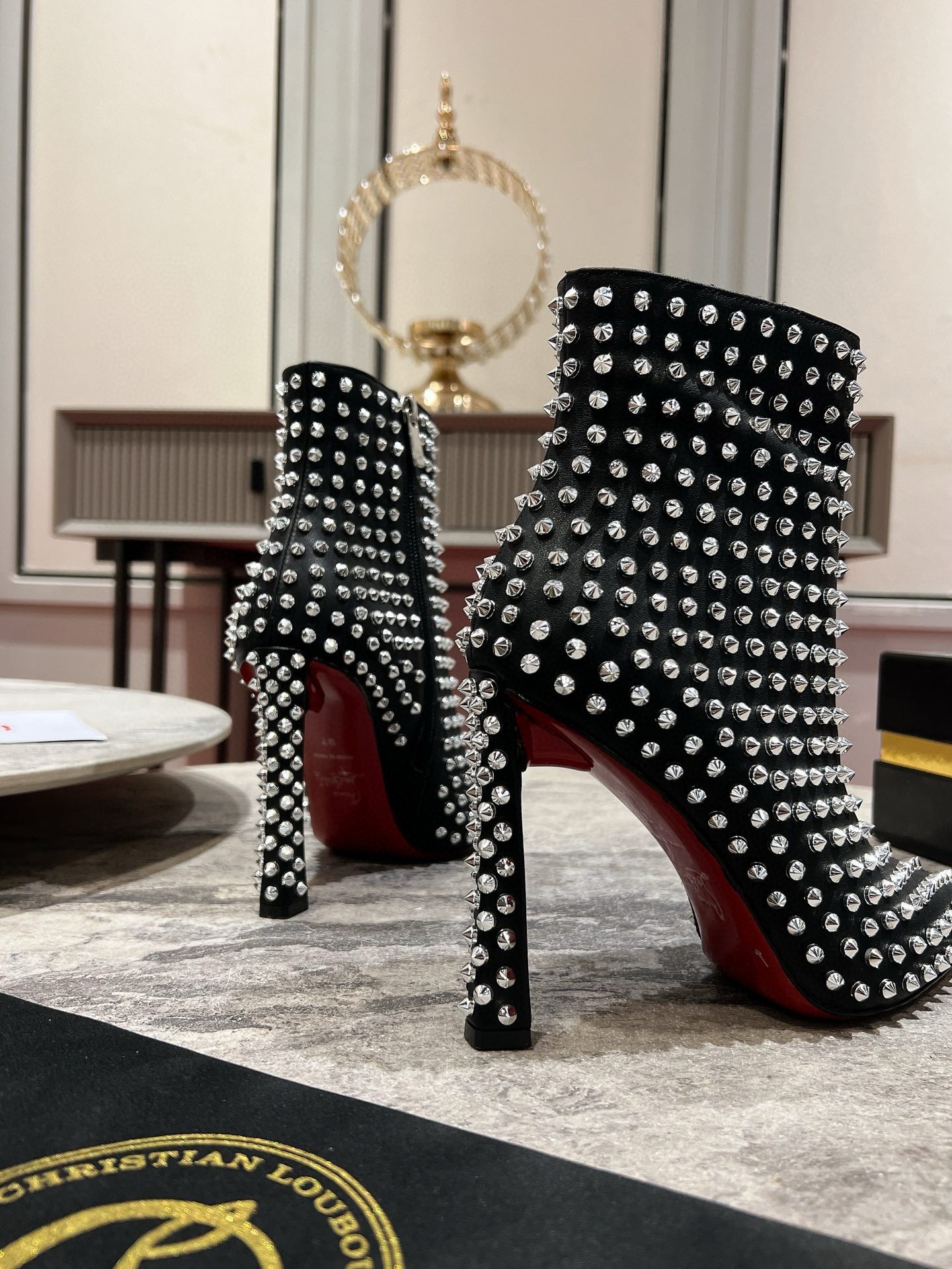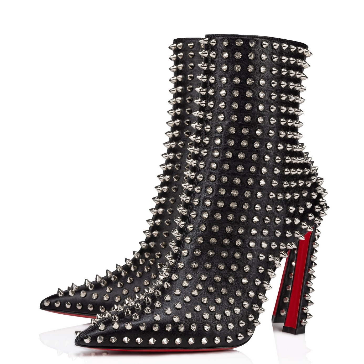 Christian Louboutin Condora Spikes 100mm Boots in Black Lambskin