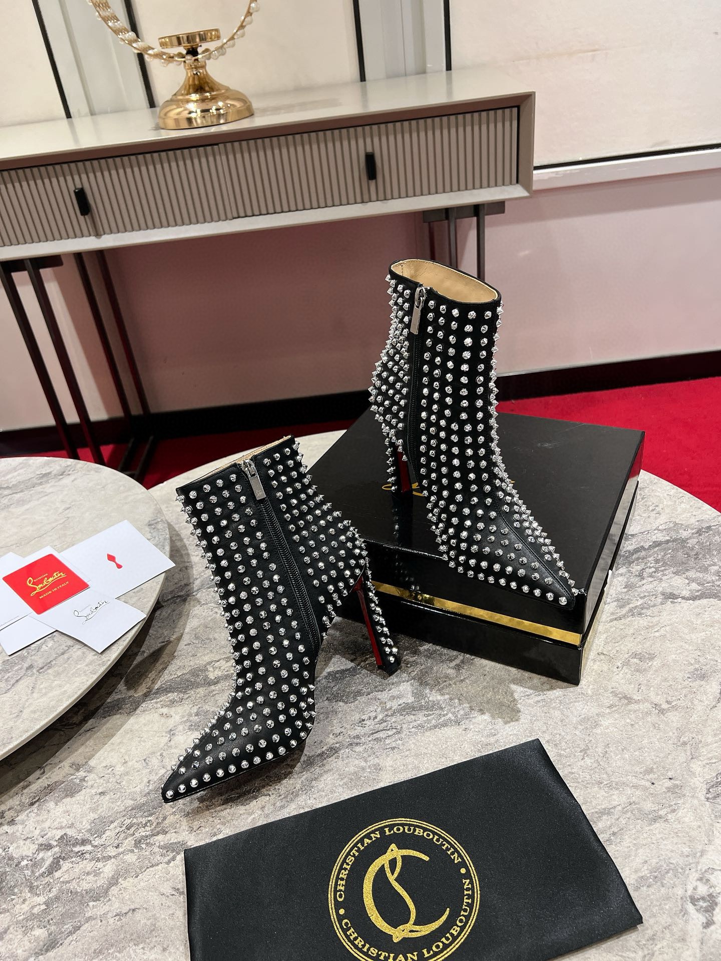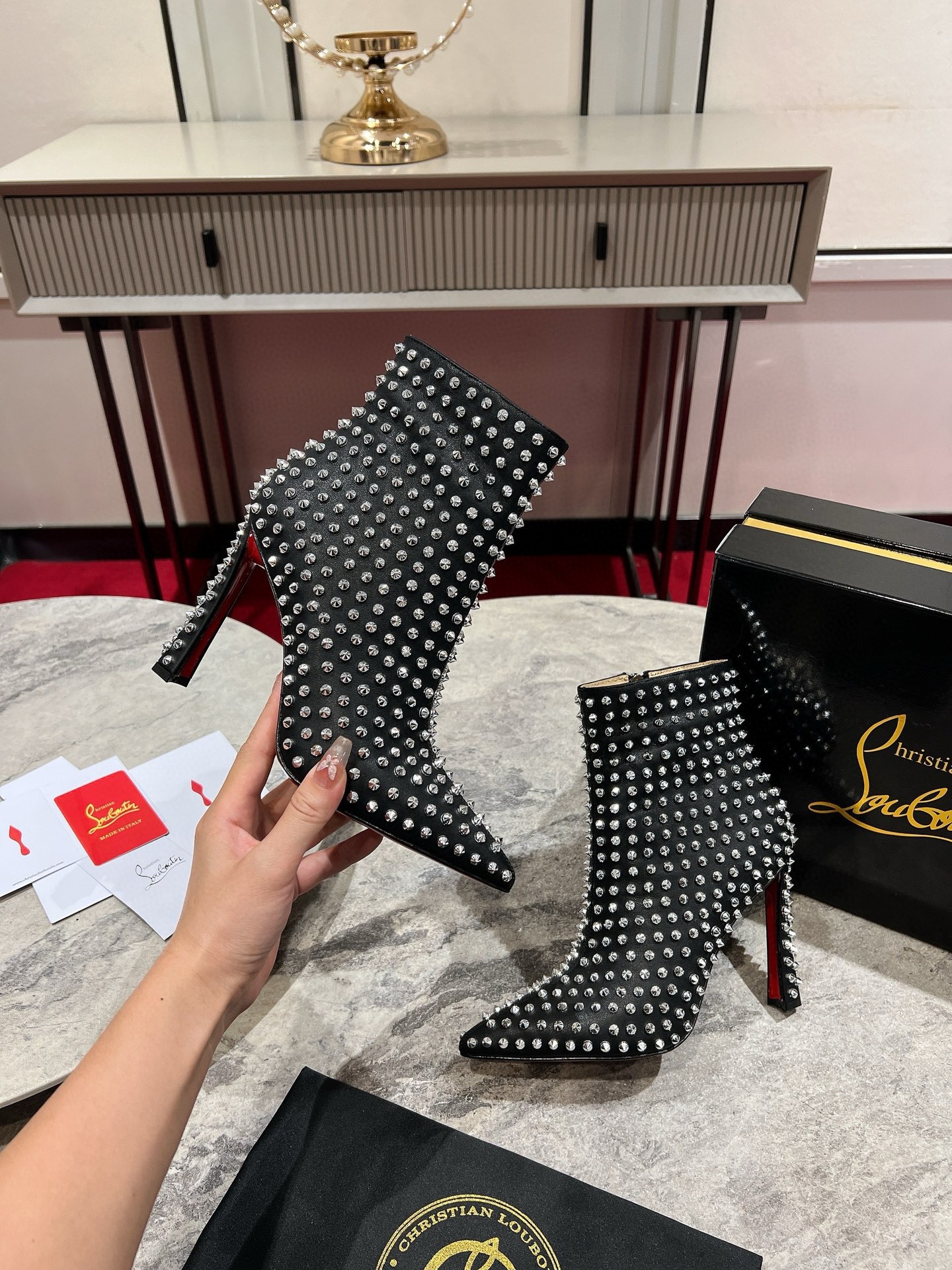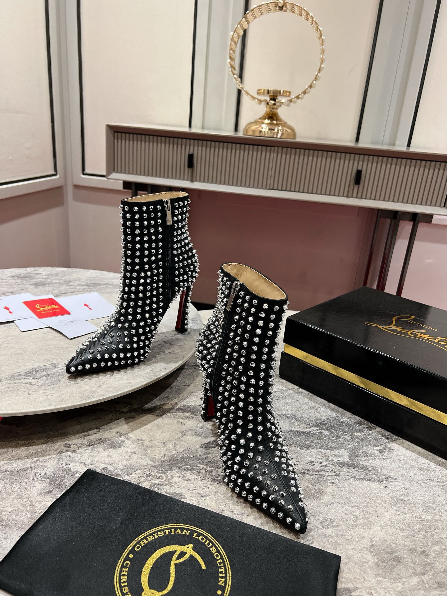 Christian Louboutin Condora Spikes 100mm Boots in Black Lambskin