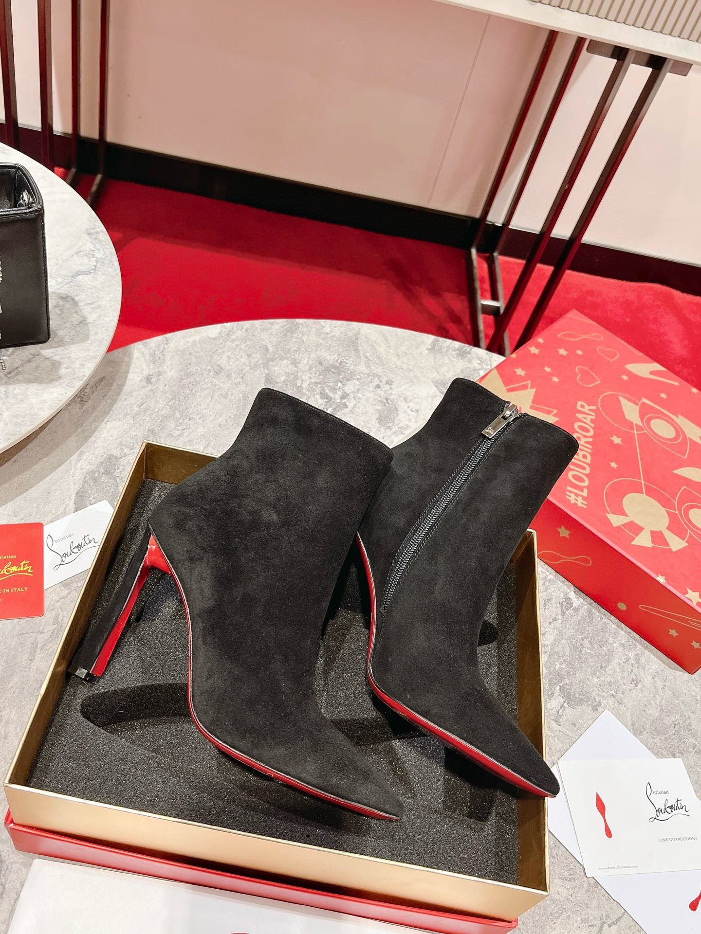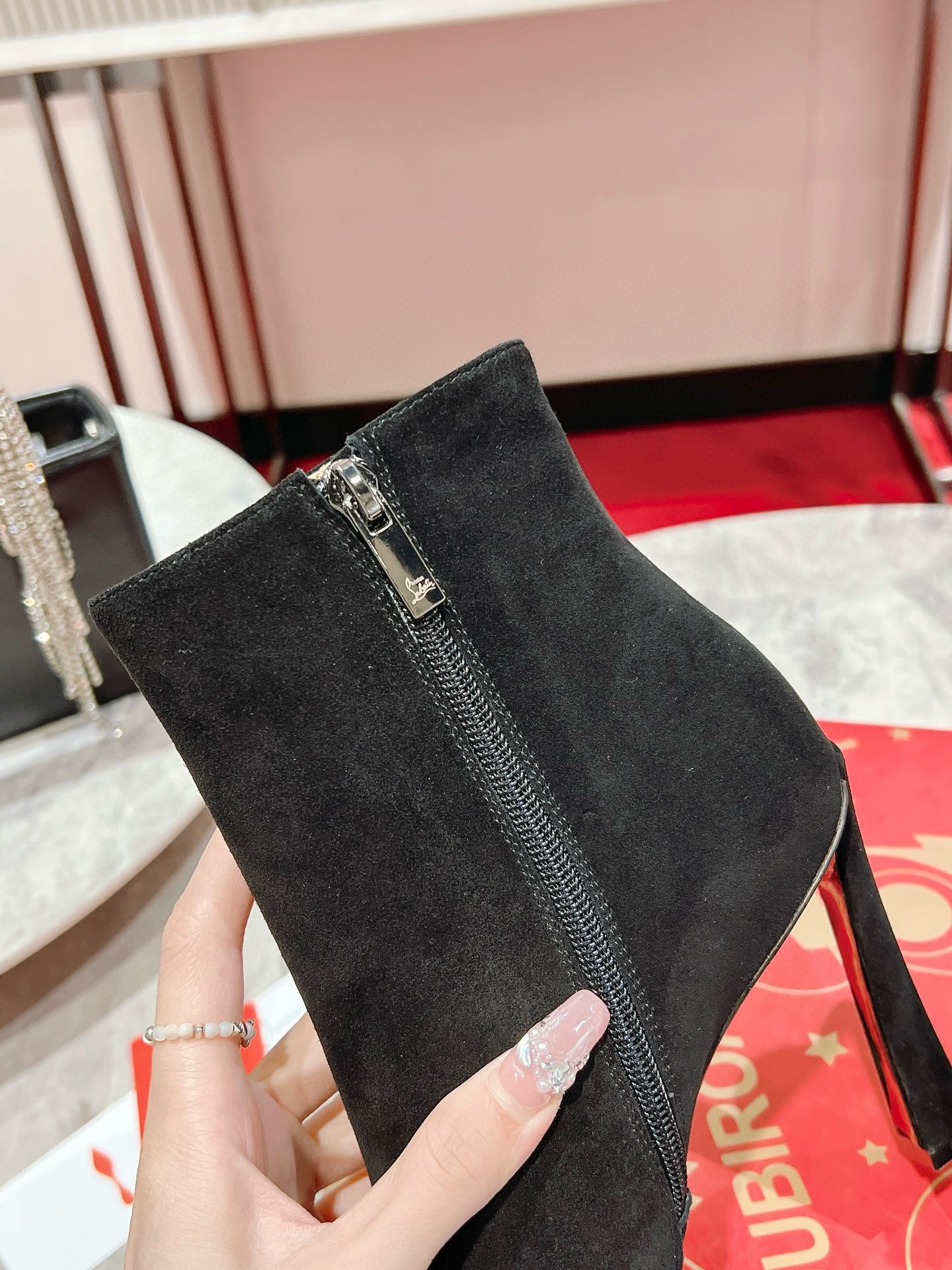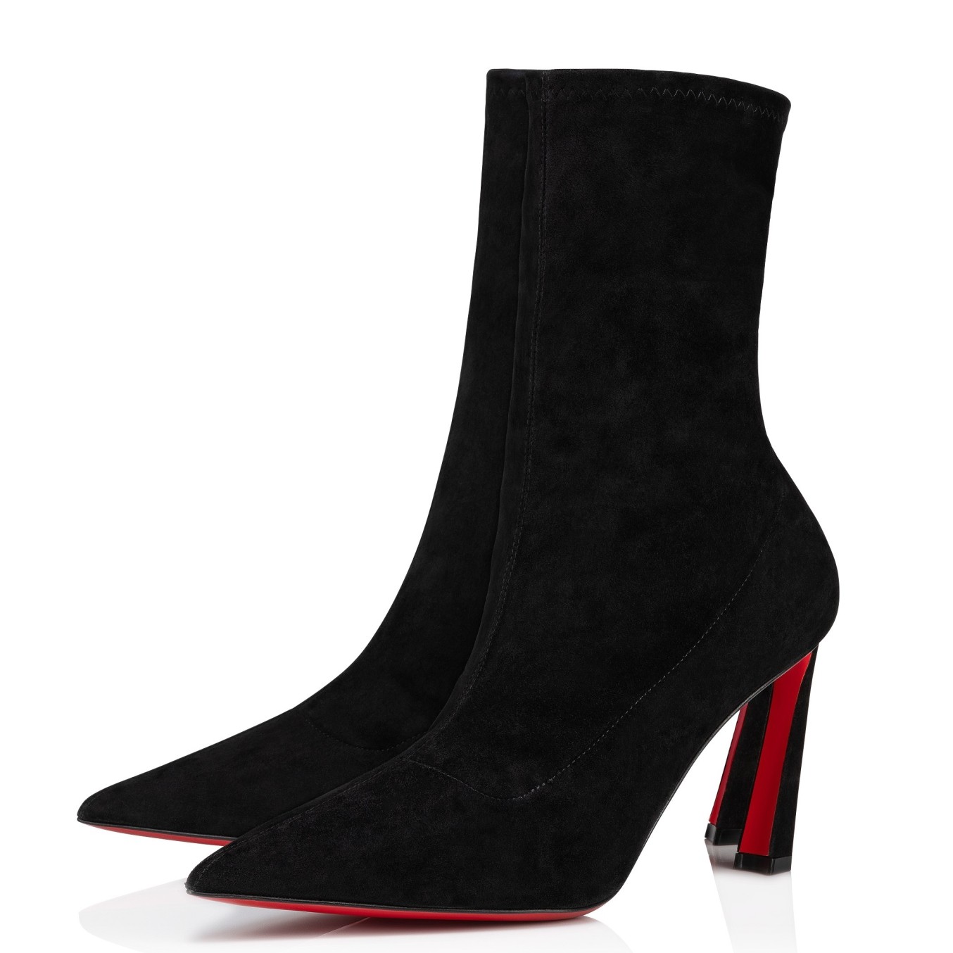 The Condora Stretch has a pointed toe like a bird’s beak. This is a sophisticated ankle boot in suede calf leather with a zip fastening. It has an 100 mm slanted heel, showcasing Maison Christian Louboutin’s innovative creativity. With its sleek lines playing with graphic elements, this model exudes timeless elegance.